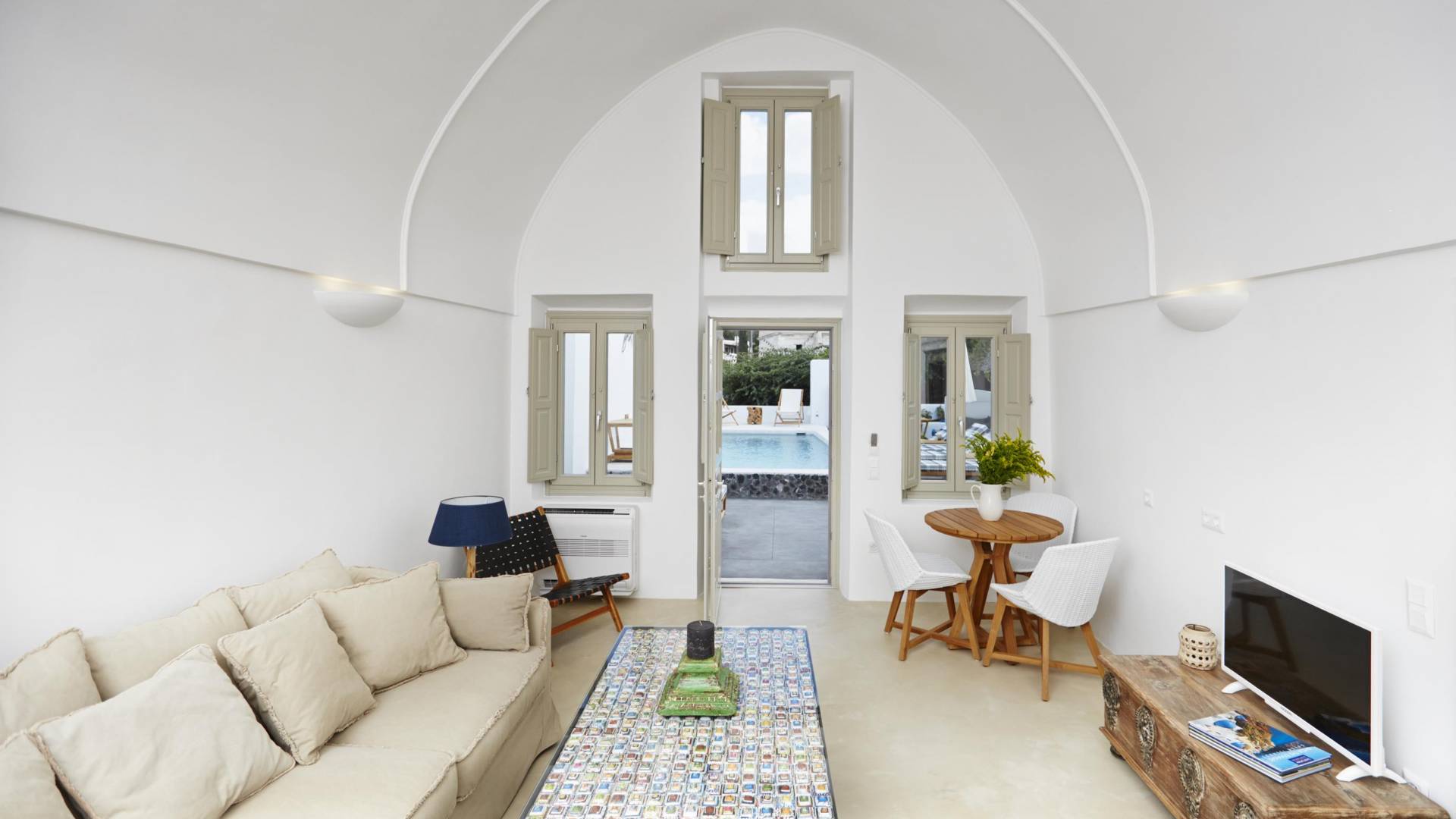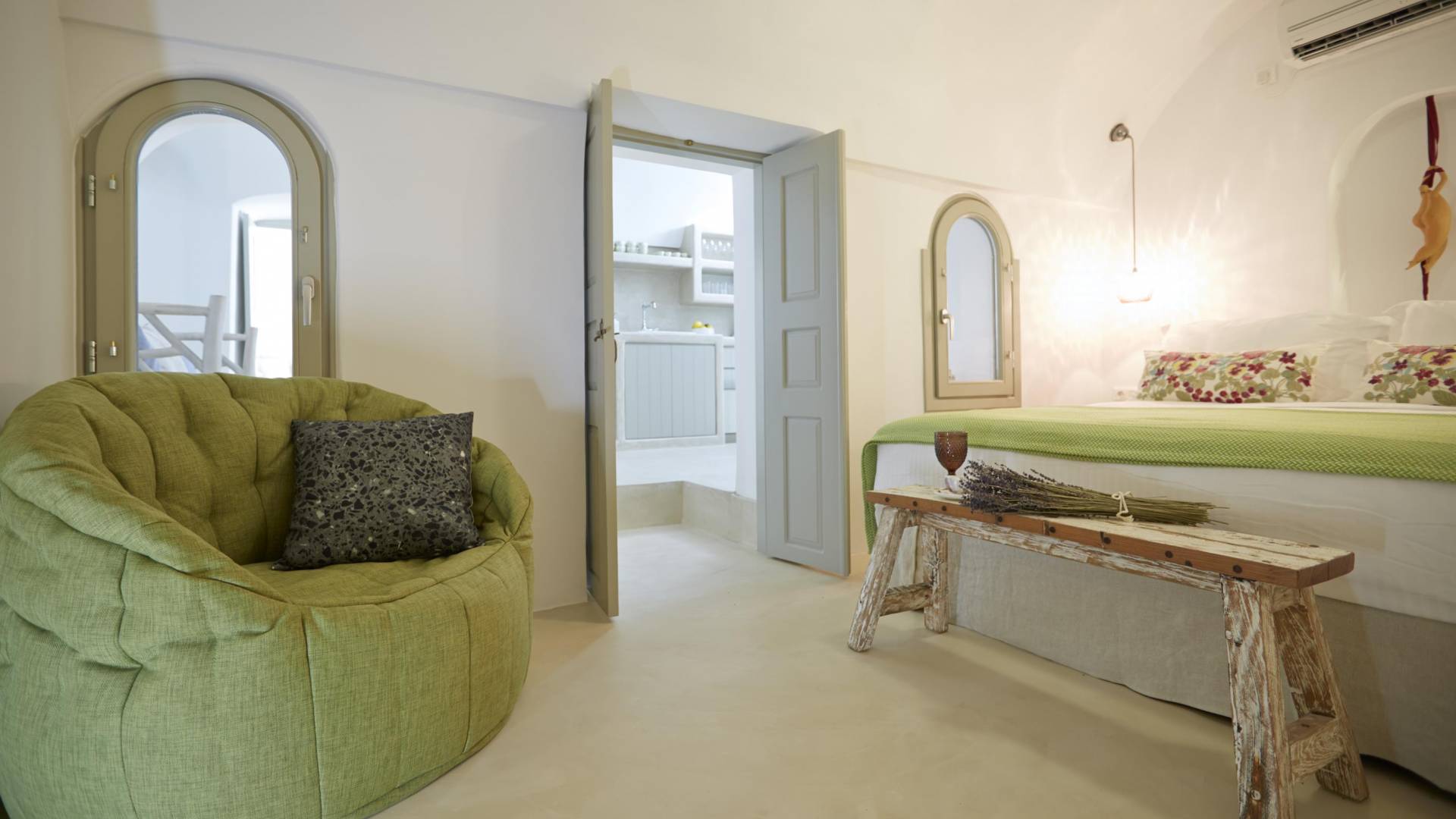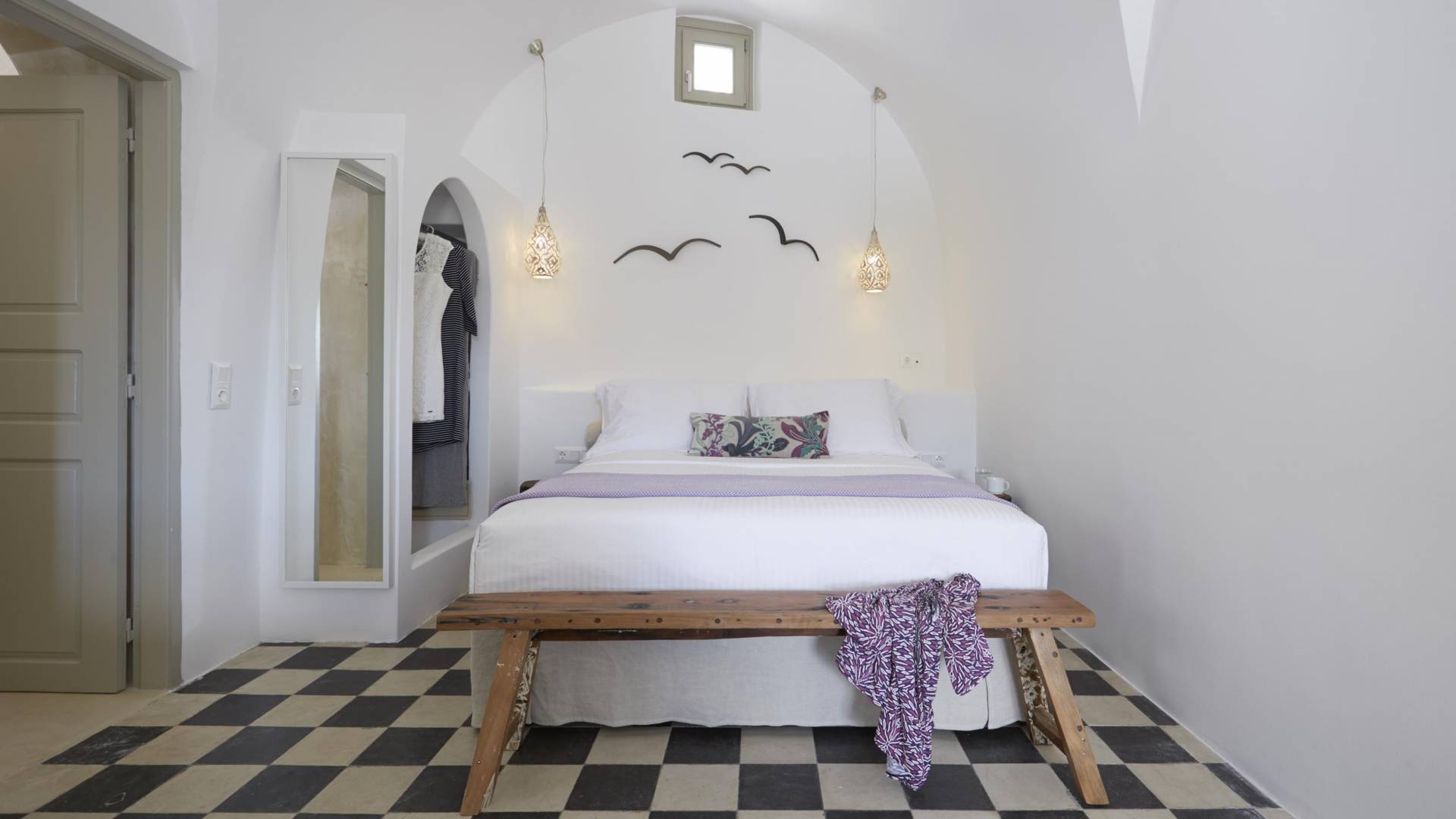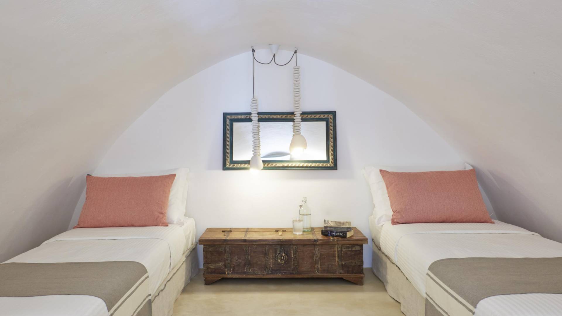 Antelmi Luxury Houses Santorini im Herzen der traditionellen Siedlung Messaria ist ein Rückzugsort für alle Sinne. Ein authentisches Santorini-Haus wurde in drei komfortable, unabhängige Häuser umgewandelt. Das erste Haus verfügt über drei Schlafzimmer und zwei Badezimmer und das zweite über ein Schlafzimmer und ein Badezimmer. Beide befinden sich im Erdgeschoss des Komplexes und verfügen auch über ausgestattete Küchen. Im ersten Stock finden Sie eine charmante Wohnung mit einem Schlafzimmer und einem Wohnzimmer mit Details wie originaler Einrichtung und Architektur, die Sie mit einem modernen Hauch von Raffinesse in eine vergangene Zeit zurückversetzen.