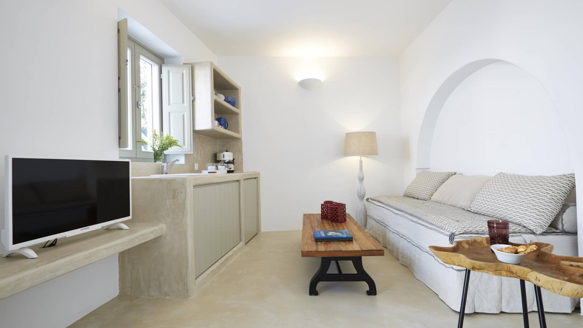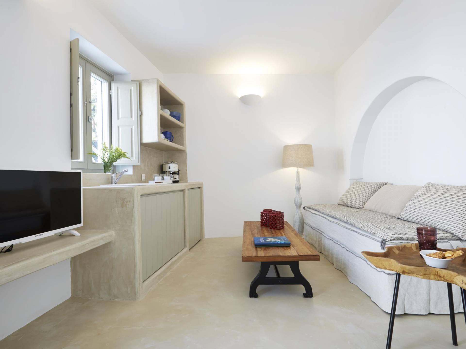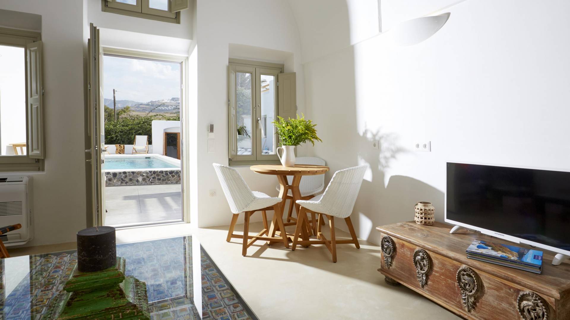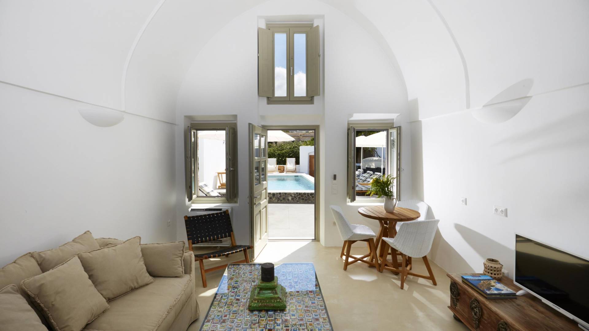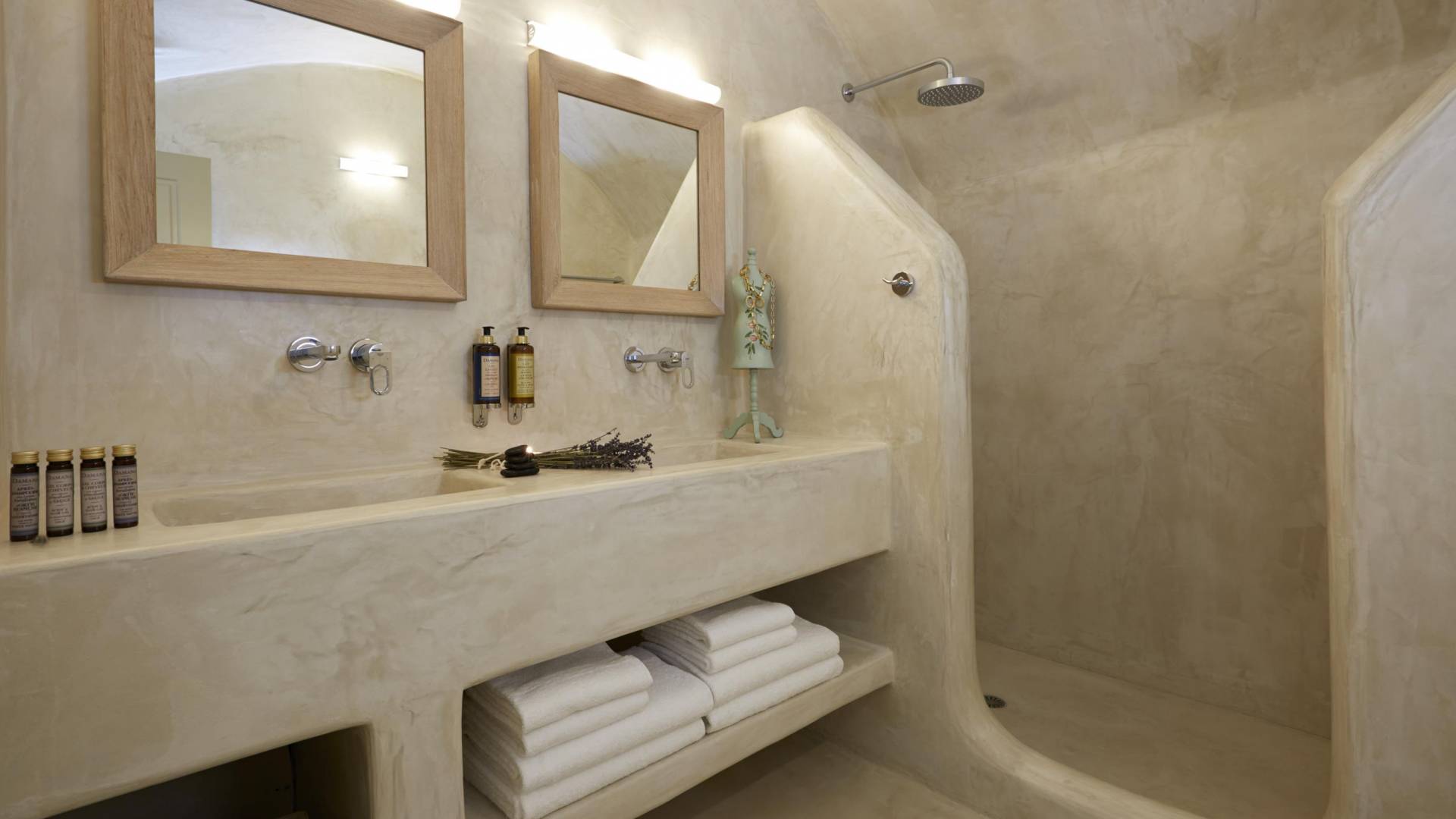 Antelmi Luxury Houses Santorini im Herzen der traditionellen Siedlung Messaria ist ein Rückzugsort für alle Sinne. Ein authentisches Santorini-Haus wurde in drei komfortable, unabhängige Häuser umgewandelt. Das erste Haus verfügt über drei Schlafzimmer und zwei Badezimmer und das zweite über ein Schlafzimmer und ein Badezimmer. Beide befinden sich im Erdgeschoss des Komplexes und verfügen auch über ausgestattete Küchen. Im ersten Stock finden Sie eine charmante Wohnung mit einem Schlafzimmer und einem Wohnzimmer mit Details wie originaler Einrichtung und Architektur, die Sie mit einem modernen Hauch von Raffinesse in eine vergangene Zeit zurückversetzen.