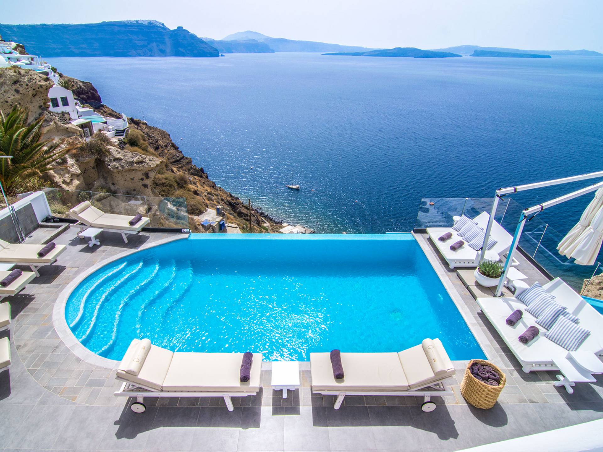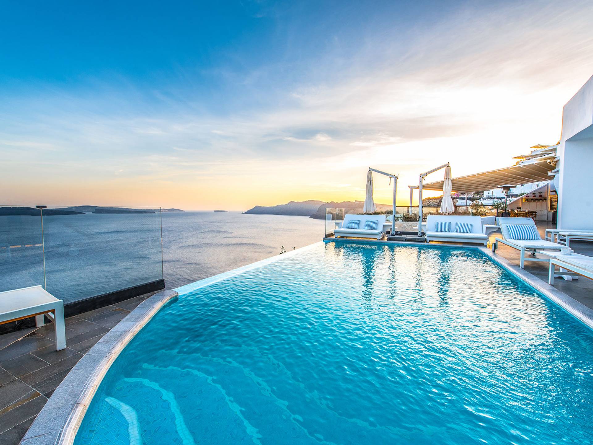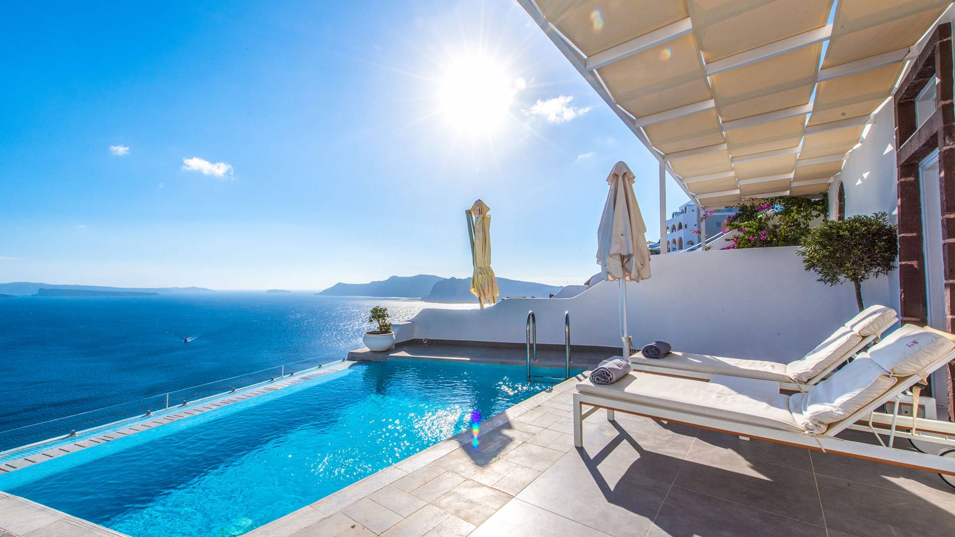 Haupt-Infinity-Pool: Tauchen Sie ein in die Ägäis und planschen Sie sich auf den Weg zur Caldera, ohne jemals die Privatsphäre und den Service von Santorini Secret Suites & Spa zu verlassen. Der Haupt-Infinity-Pool lässt Sie die Spitzen der Götter berühren, die die atemberaubende Landschaft der Caldera von Santorin geschaffen haben, mit direktem Blick auf das endlose Blau der Ägäis. Genieße die beste Aussicht, die Oia zu bieten hat, während du cool bleibst und einen unserer Signature-Cocktails trinkst!