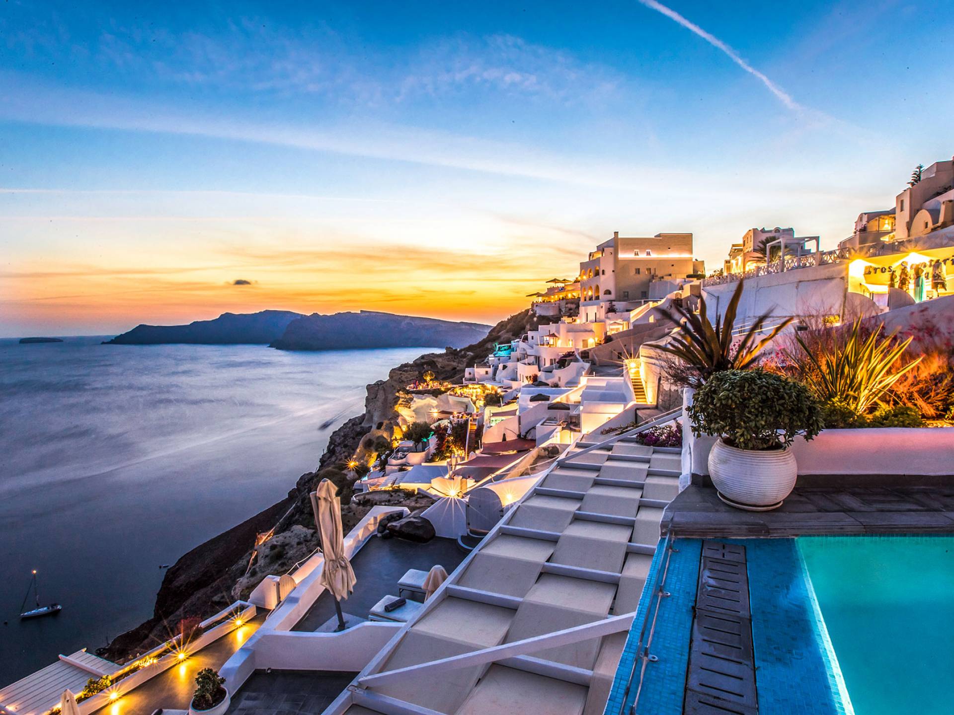 Oia ist das berühmteste Dorf auf Santorin, 11 km von Fira entfernt im Norden der Insel. Weltweit bekannt für seinen faszinierenden Sonnenuntergang, verdient es den Titel des schönsten Dorfes von Santorin. Auf einer Klippe gelegen, bietet es einen erstaunlichen Blick über den Vulkan Palia und Nea Kameni sowie die Insel Thirassia. Sein traditioneller Charakter mit weiß getünchten Häusern, gepflasterten Straßen und blau gewölbten Kirchen bildet…Oia ist das berühmteste Dorf auf Santorin, 11 km von Fira entfernt im Norden der Insel. Weltweit bekannt für seinen faszinierenden Sonnenuntergang, verdient es den Titel des schönsten Dorfes von Santorin. Auf einer Klippe gelegen, bietet es einen erstaunlichen Blick über den Vulkan Palia und Nea Kameni sowie die Insel Thirassia. Sein traditioneller Charakter mit weiß getünchten Häusern, gepflasterten Straßen und blau gewölbten Kirchen bildet…