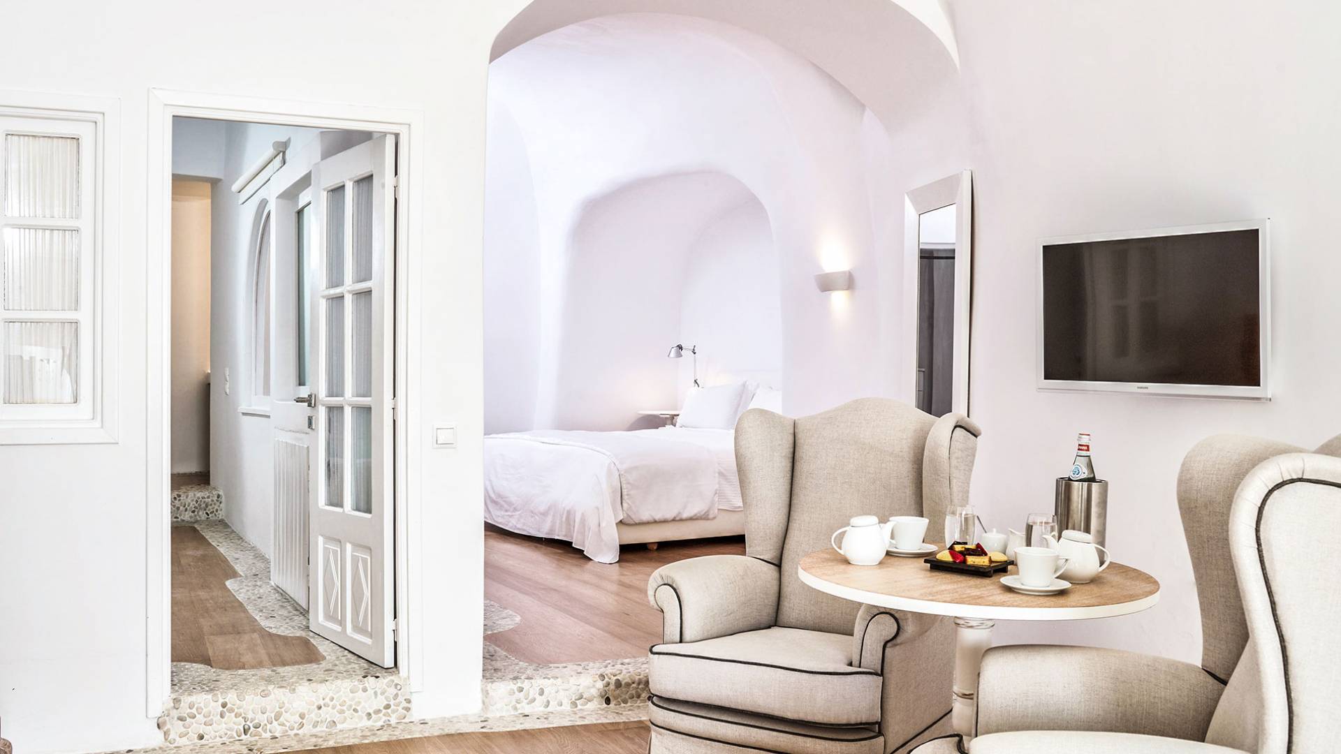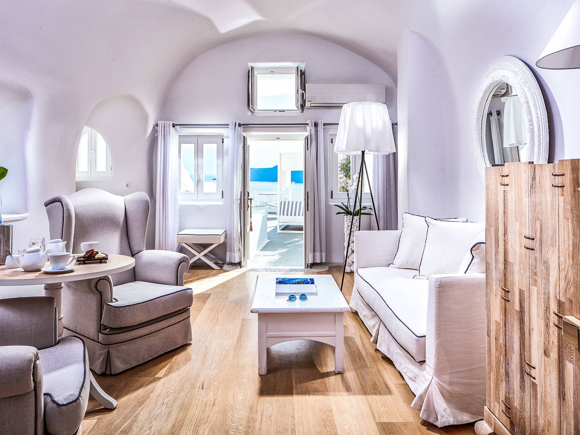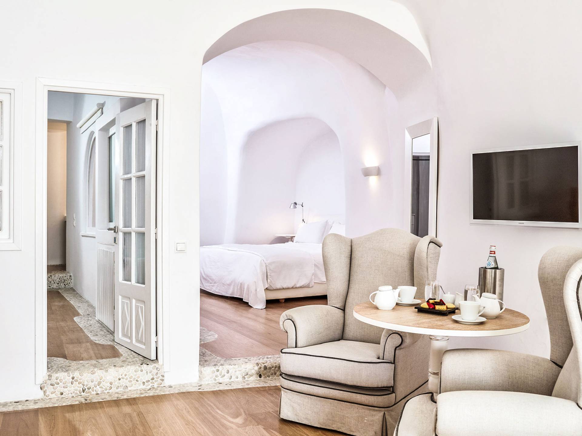 Katikies Kirini Santorini hebt das Wort Luxus auf eine ganz neue Ebene und bietet Besuchern die idyllische Atmosphäre von Santorini mit Unterkünften jenseits aller Vorstellungskraft. Die Luxussuiten mit Blick auf die Caldera sind frisch renoviert und in hellen Weißtönen mit stilvoller Schlichtheit dekoriert und verkörpern den ultimativen schicken Charakter dieses einzigartigen Boutique-Hotels in Santorini, Oia.
