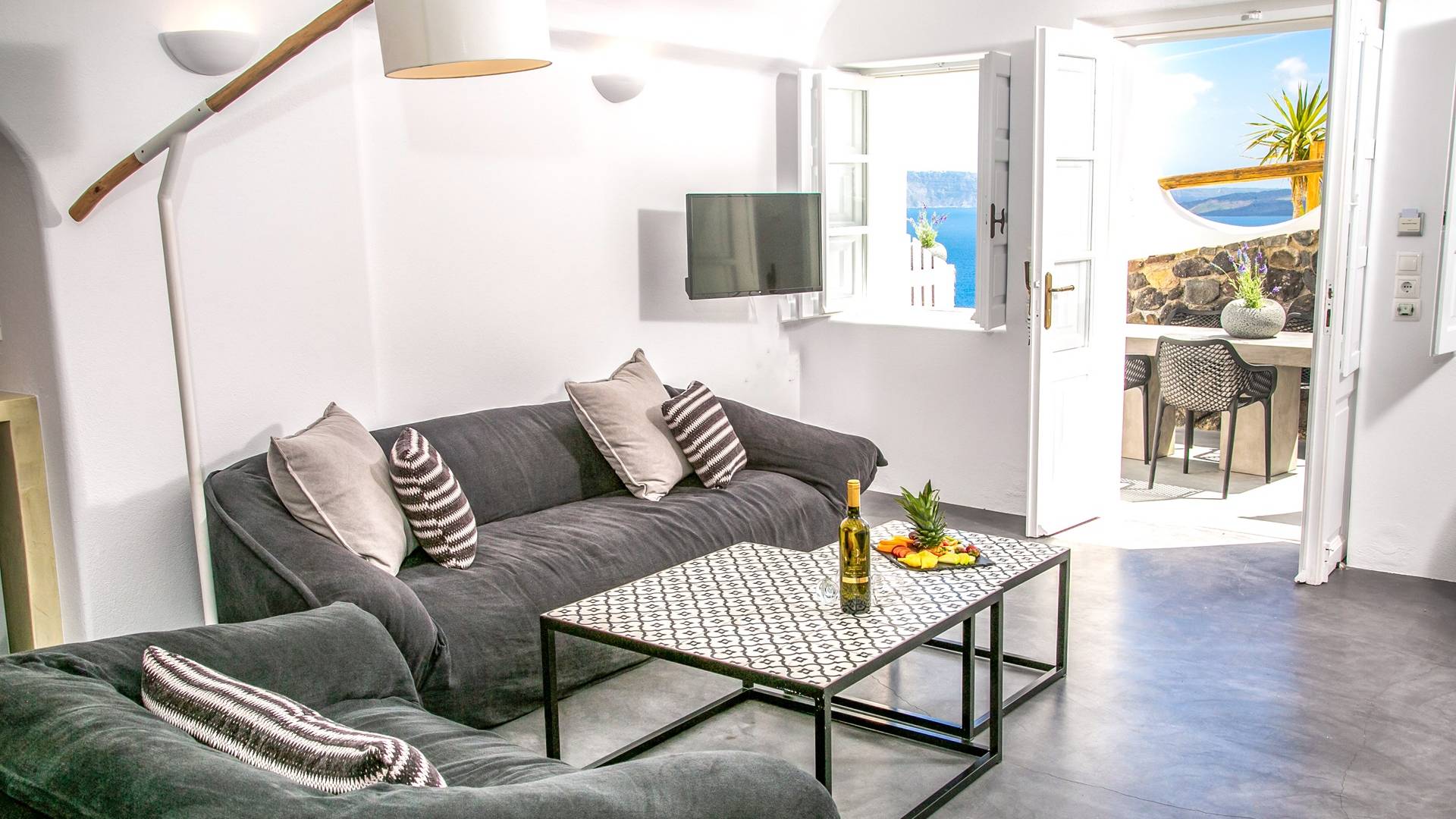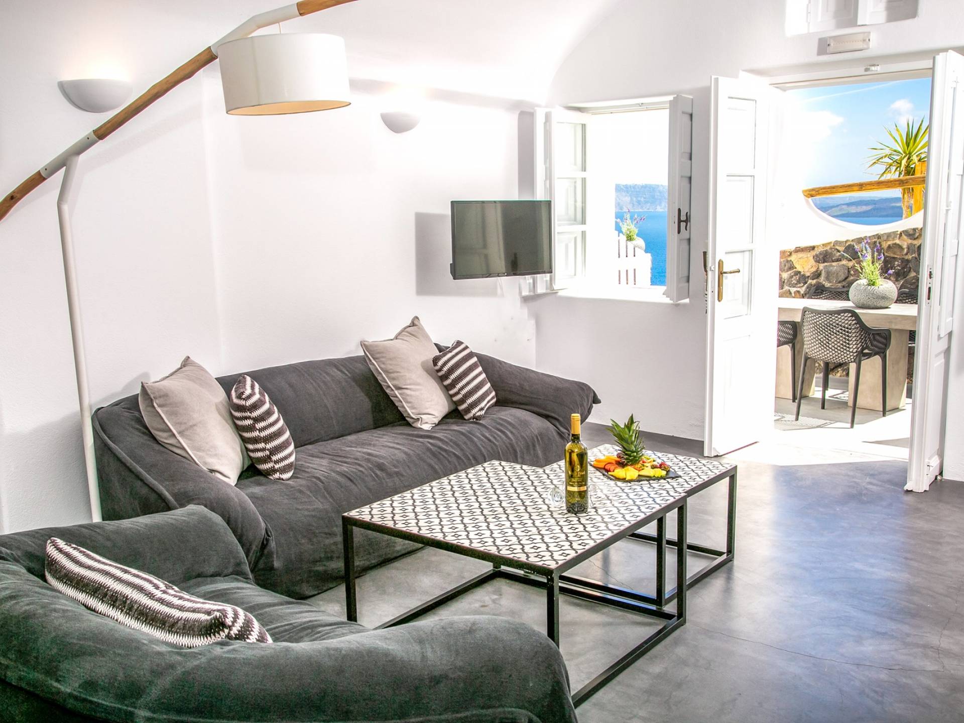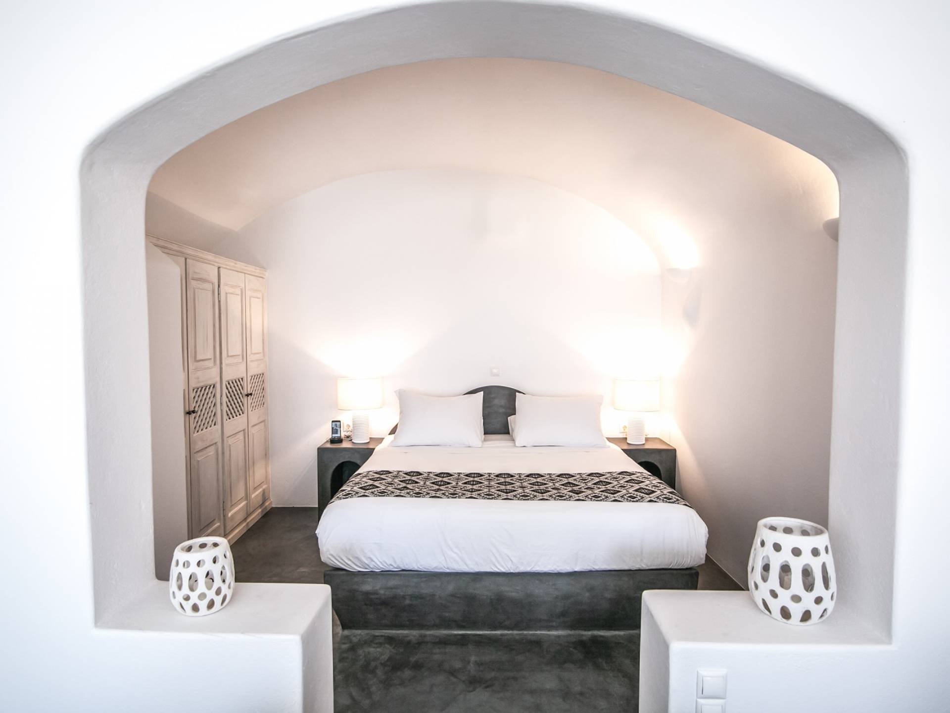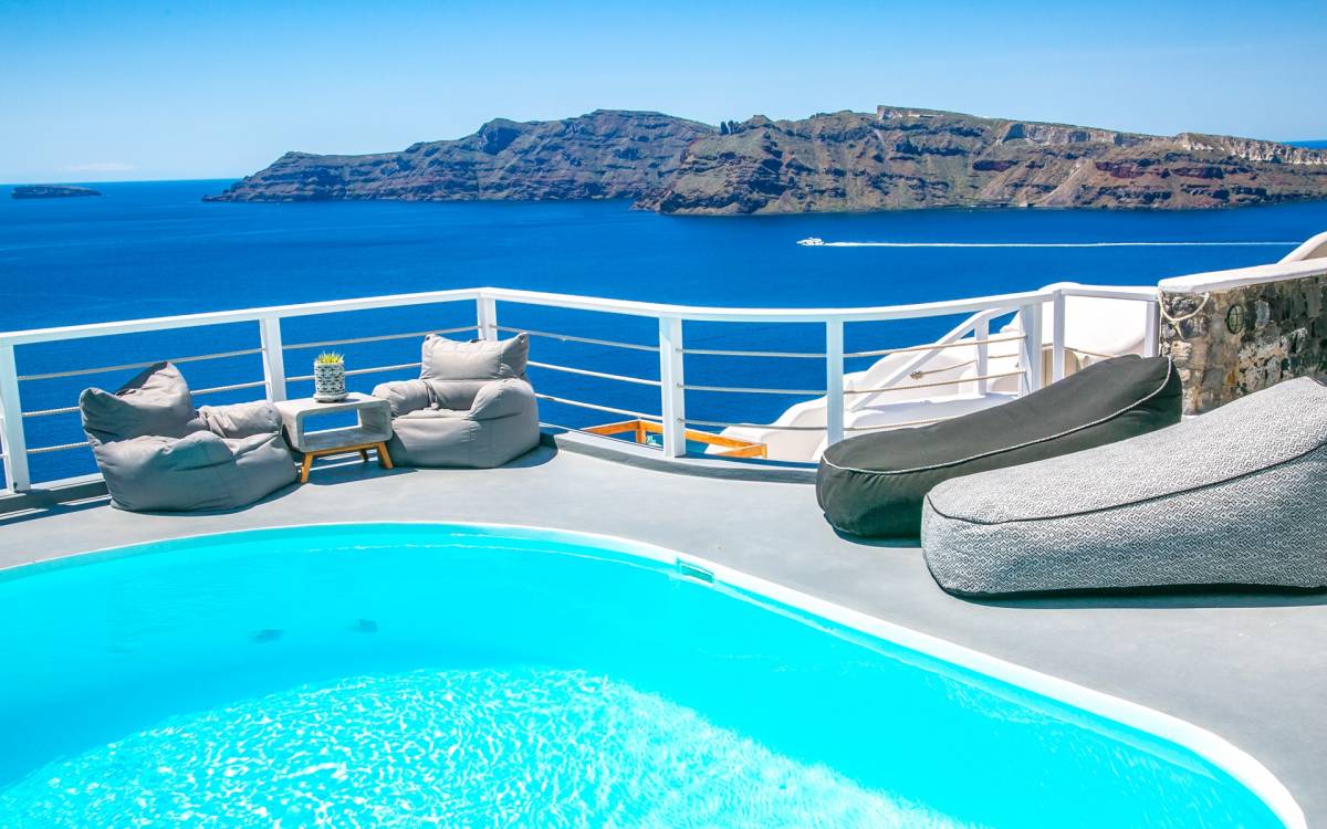 Oia ist das berühmteste Dorf auf Santorin, 11 km von Fira entfernt im Norden der Insel. Weltweit bekannt für seinen faszinierenden Sonnenuntergang, verdient es den Titel des schönsten Dorfes von Santorin. Auf einer Klippe gelegen, bietet es einen erstaunlichen Blick über den Vulkan Palia und Nea Kameni sowie die Insel Thirassia. Sein traditioneller Charakter mit weiß getünchten Häusern, gepflasterten Straßen und blau gewölbten Kirchen bildet einen erstaunlichen Rahmen. In Oia finden Sie eine Vielzahl von Annehmlichkeiten, von Restaurants bis zu Cafés und Geschäften. Die belebteste Gegend ist die Hauptfußgängerzone. Zu den Sehenswürdigkeiten in Oia gehören das Schifffahrtsmuseum, die Ruinen einer venezianischen Festung und Kunstgalerien. Von Oias kleinem Hafen Ammoudi bringen Sie kleine Boote zur Insel Thirassia.