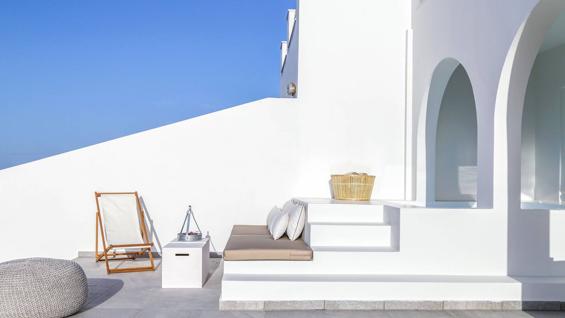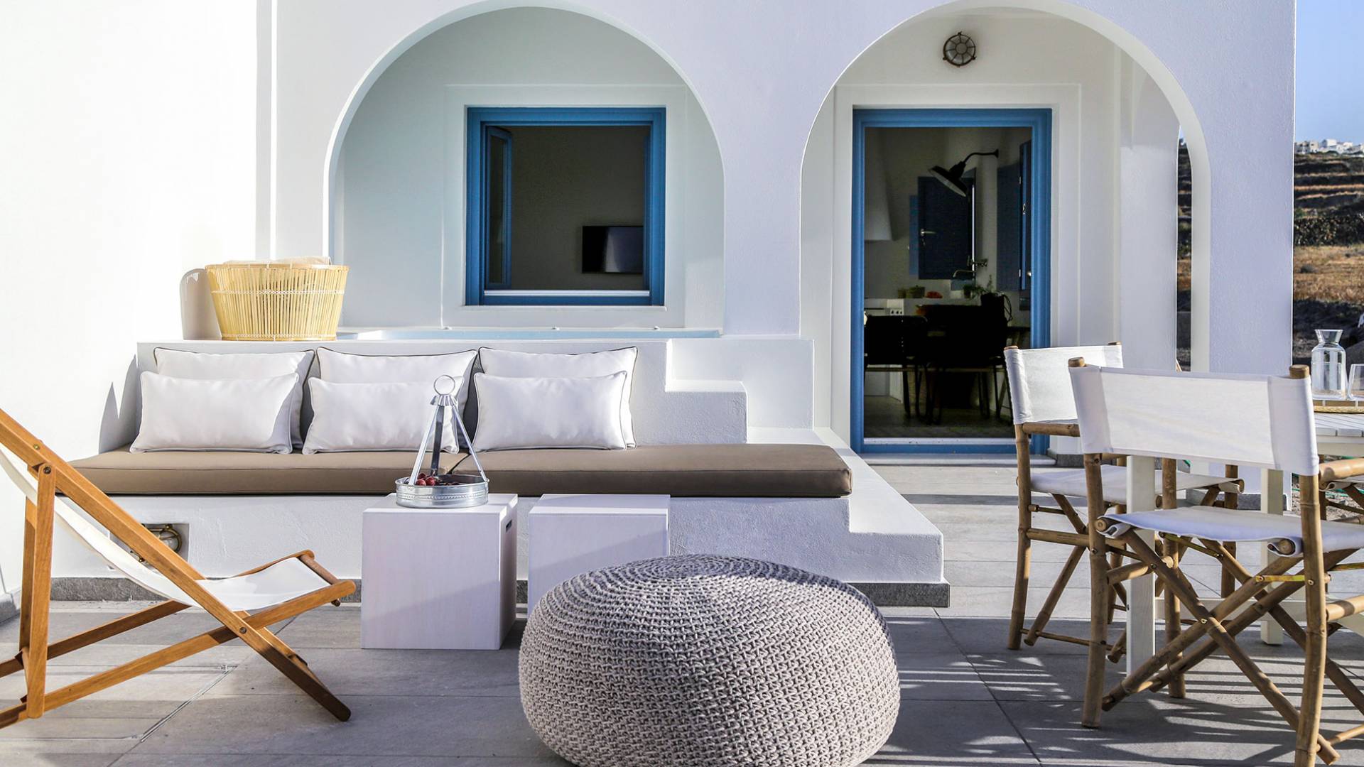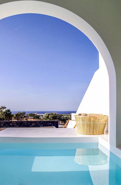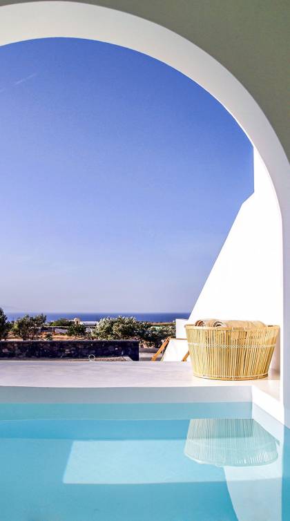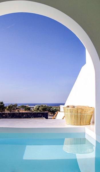 Die Villa Athiri Santorini befindet sich im Erdgeschoss des VINO HOUSES-Komplexes und verfügt über eine private Veranda. Sie können teilweise den Sonnenuntergang genießen, der auf Ihrem Loungebereich oder von Ihrem Pool aus liegt.