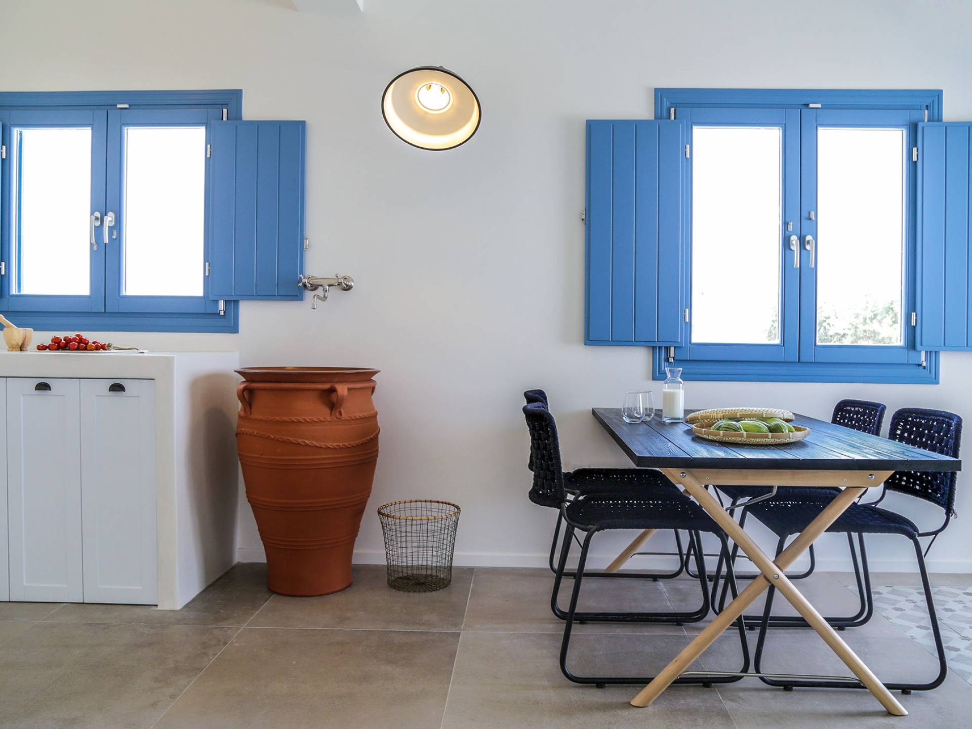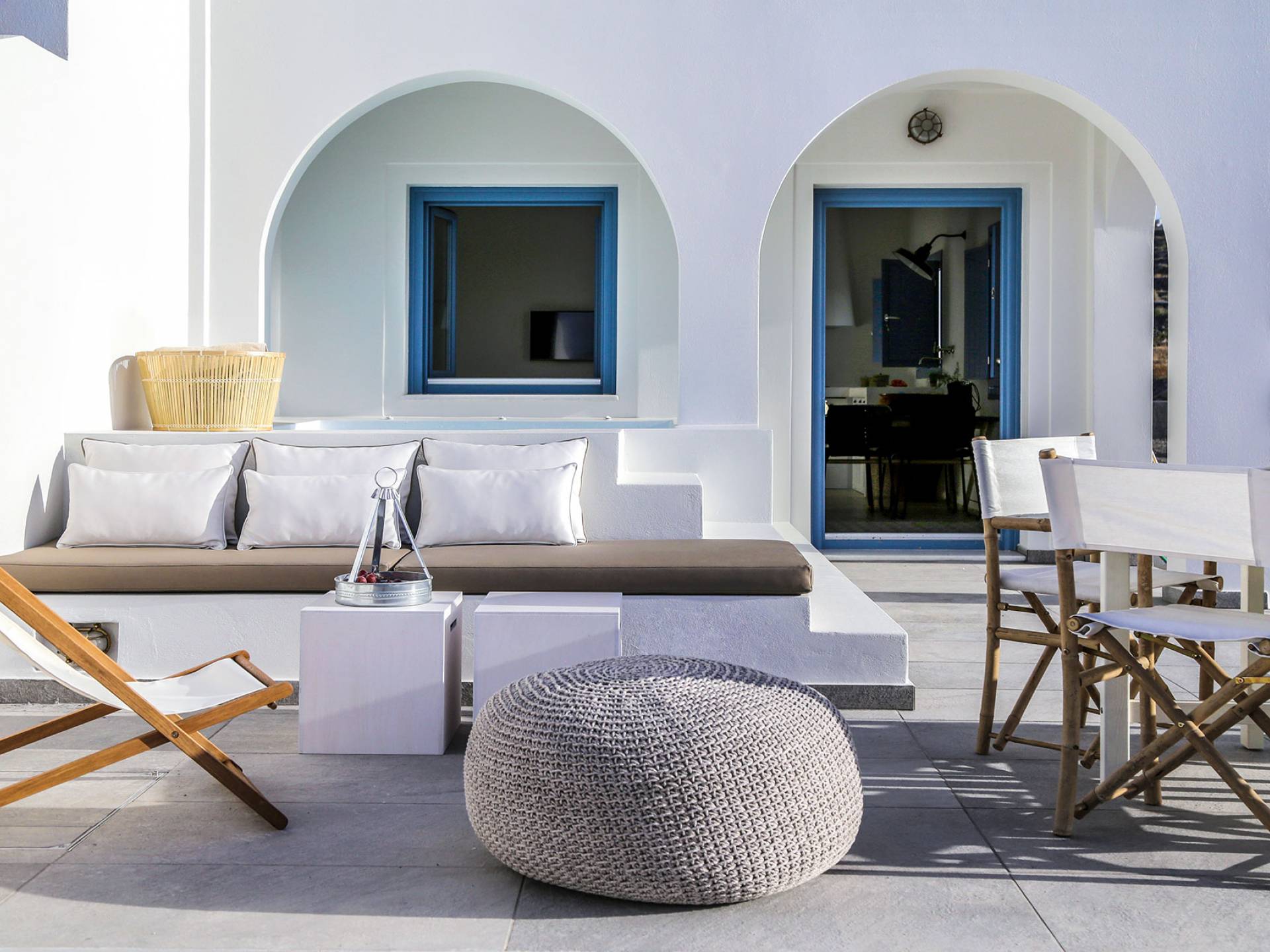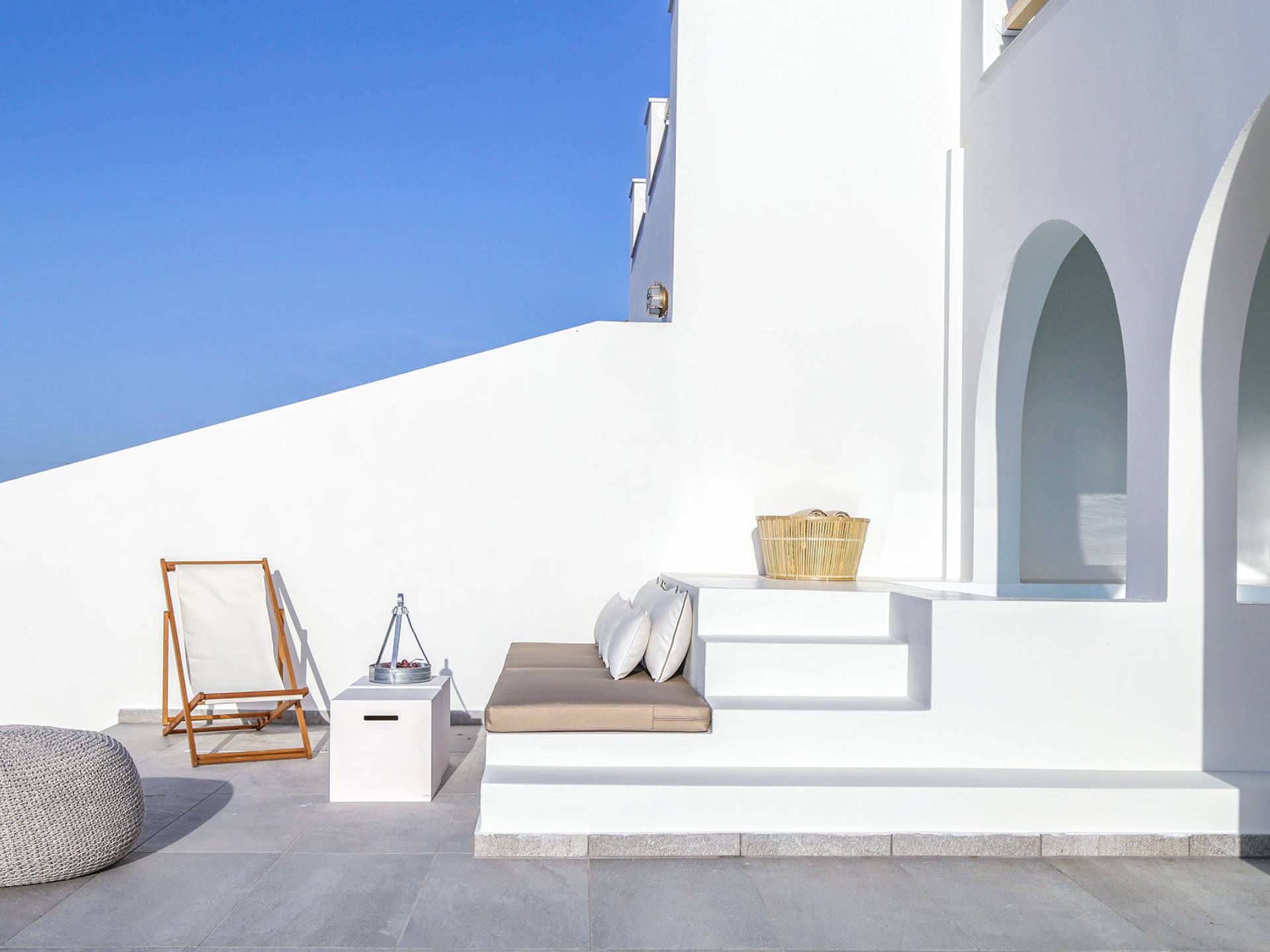 Die Villa Athiri Santorini befindet sich im Erdgeschoss des VINO HOUSES-Komplexes und verfügt über eine private Veranda. Sie können teilweise den Sonnenuntergang genießen, der auf Ihrem Loungebereich oder von Ihrem Pool aus liegt.