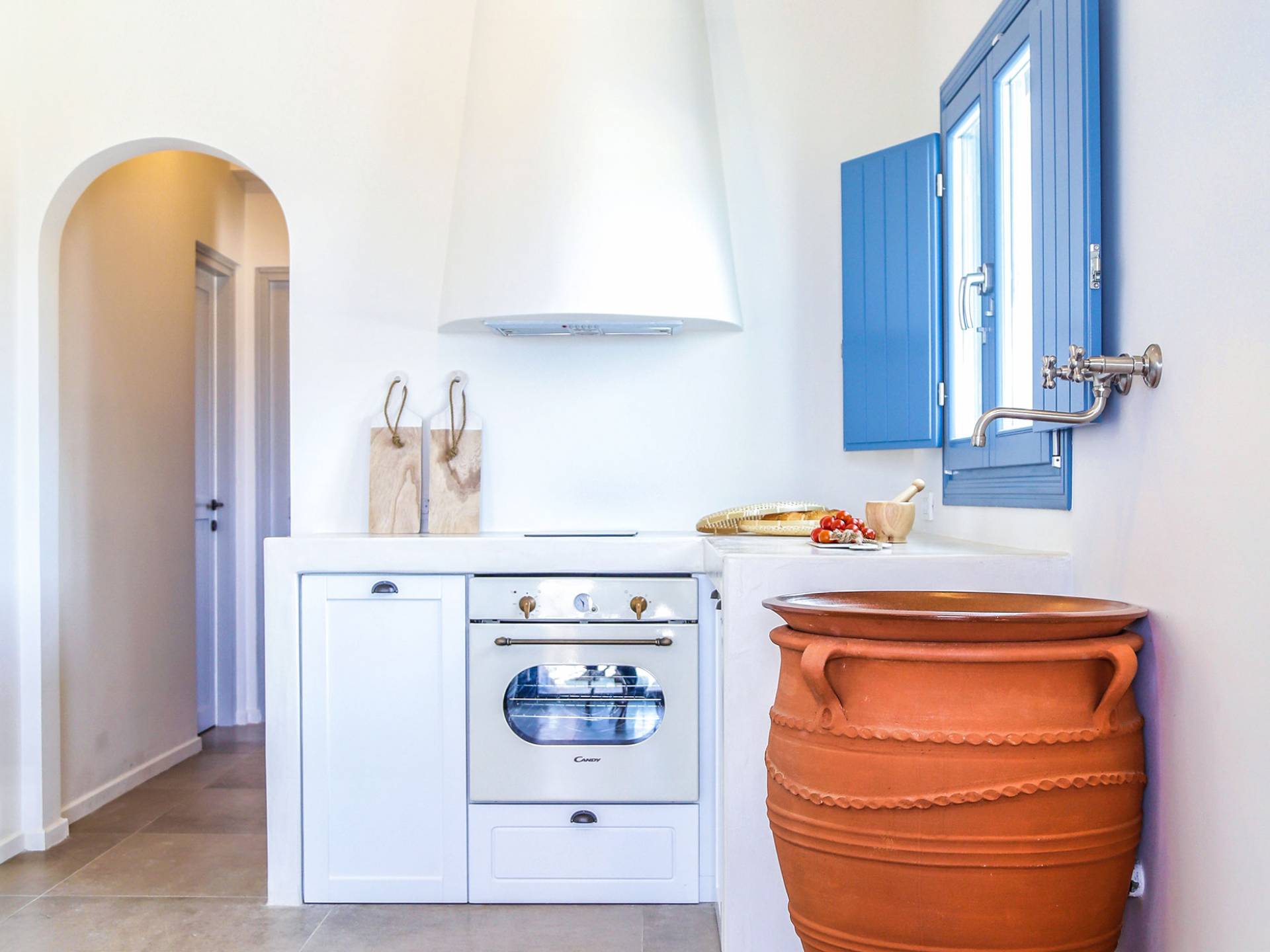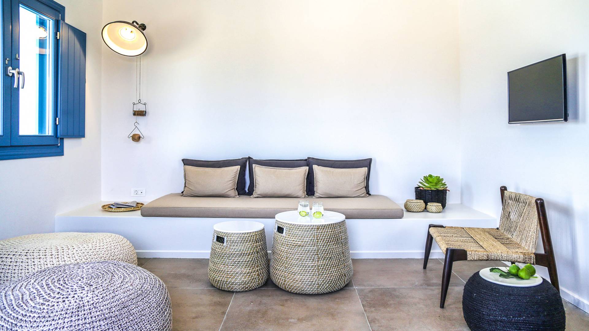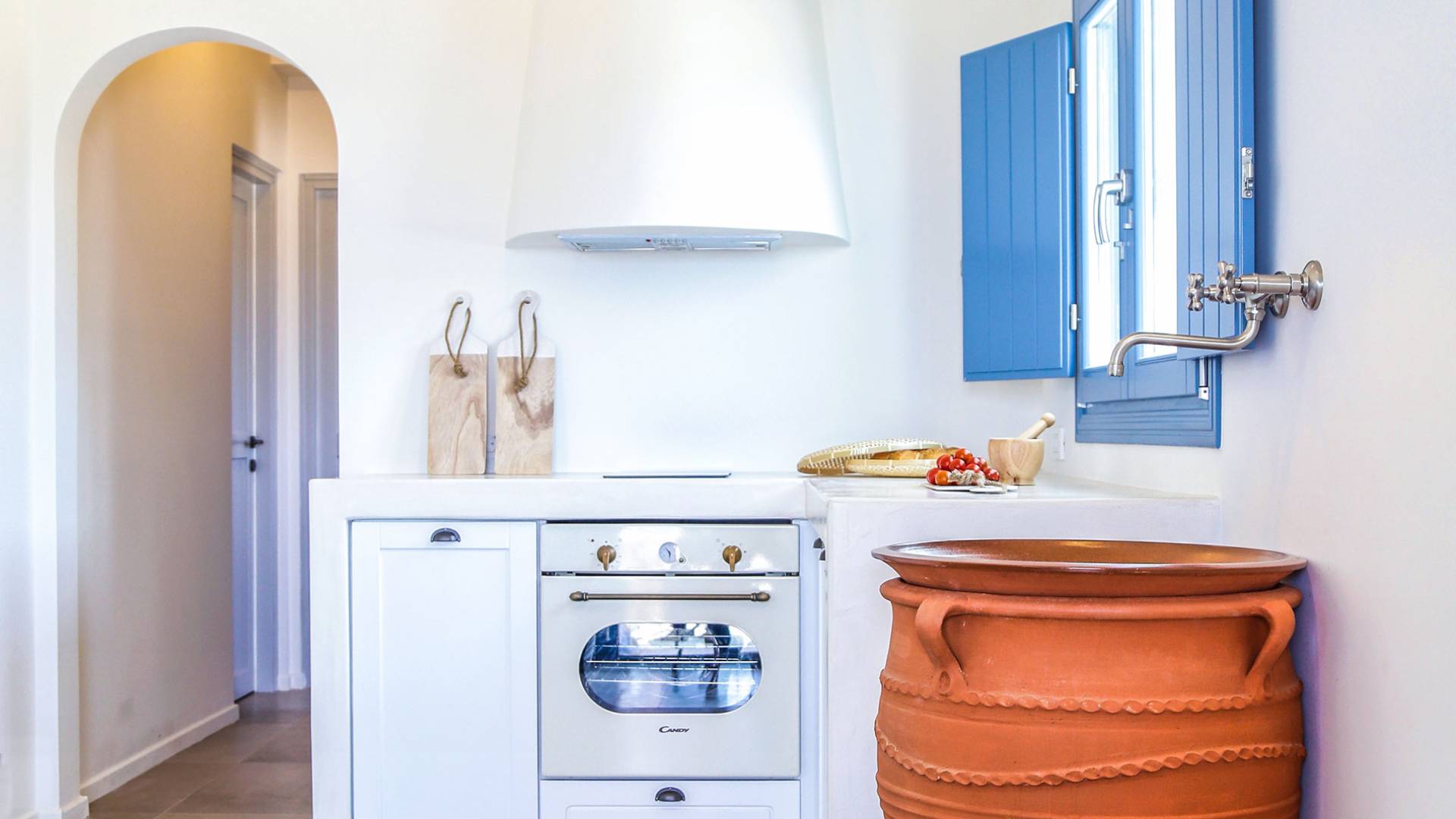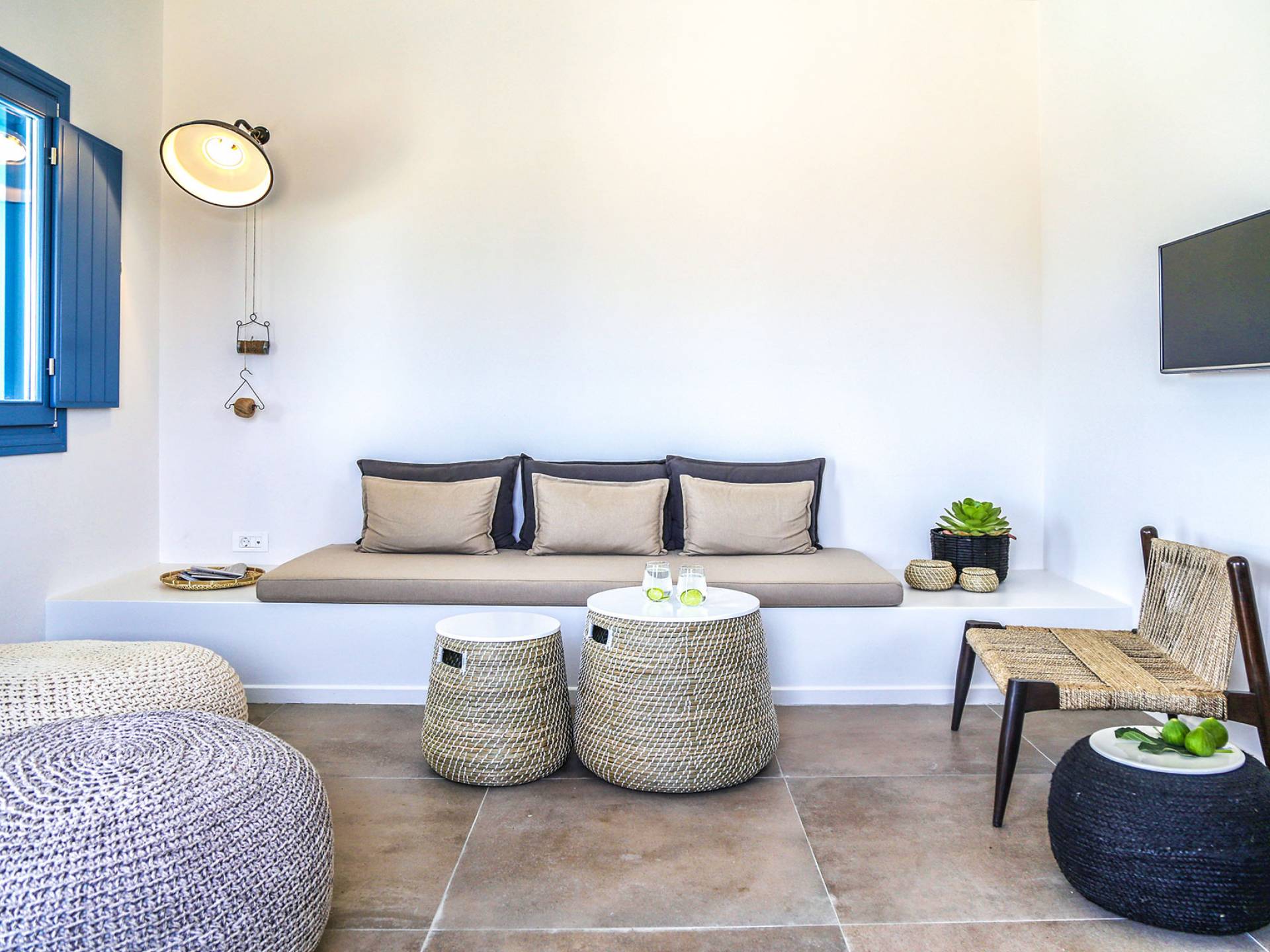Der Pool ist die Hälfte davon unter einer Kuppel und der Rest frei zum Himmel. Die voll ausgestattete Küche verfügt über den Esstisch sowie das Wohnzimmer. Die Athiri Villa verfügt über zwei Schlafzimmer mit Kingsize-Betten und einer extrem weichen Matratze. Diese ätherische Villa besticht durch die wahre Essenz eines erholsamen Urlaubs. Sie ist stilvoll im Innenbereich und exquisit im Freien, wo Sie endlose Momente absoluter Privatsphäre genießen und das Meer und die Natur mit ihren Farben bewundern können.