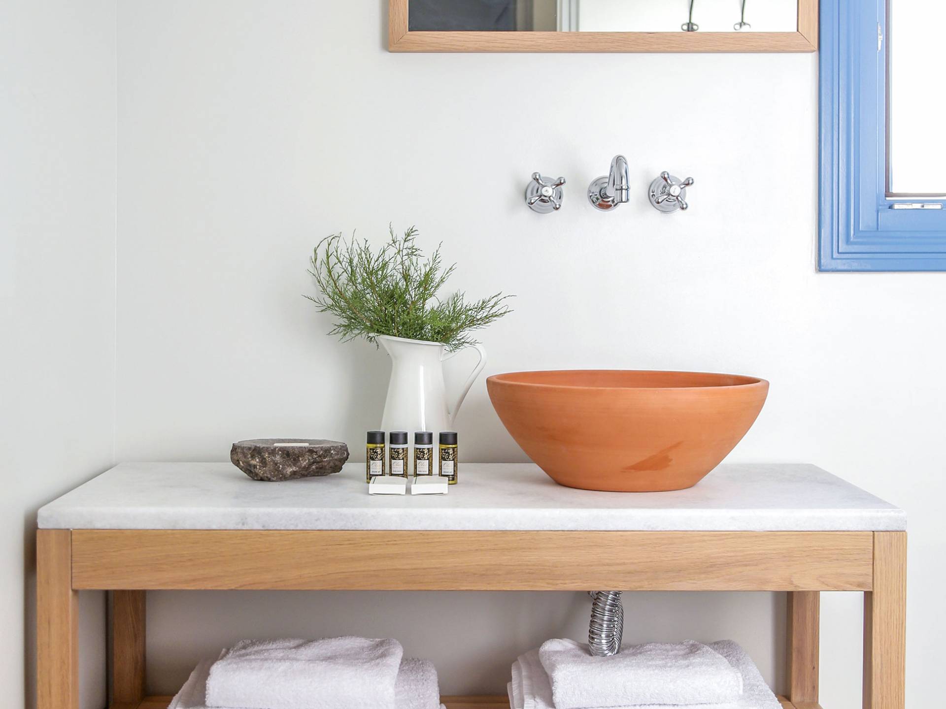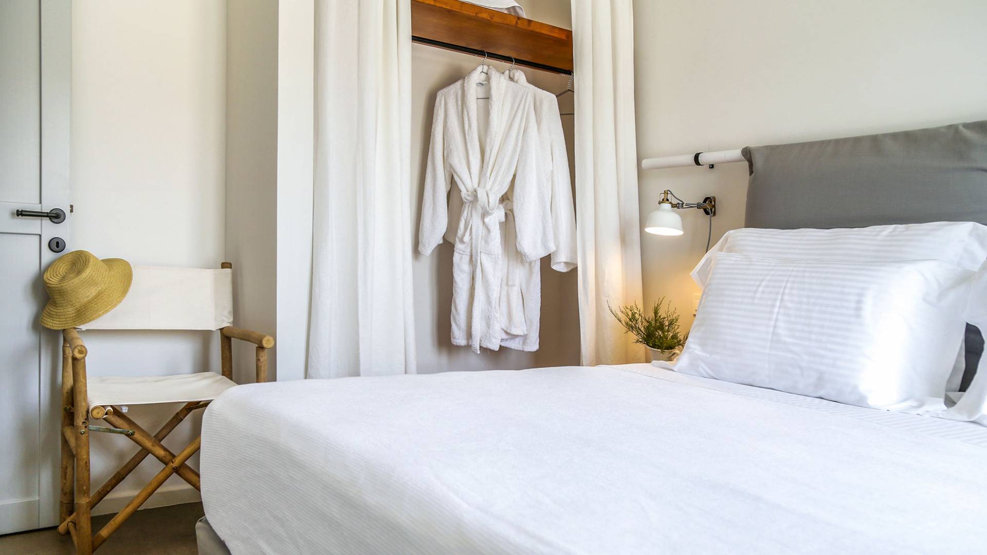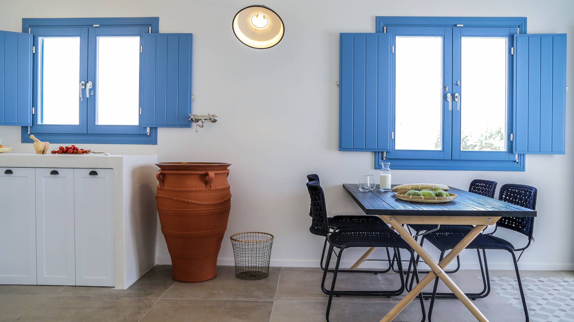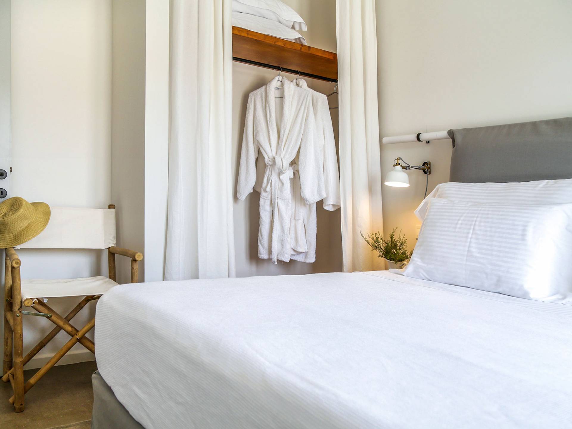 Der Pool ist die Hälfte davon unter einer Kuppel und der Rest frei zum Himmel. Die voll ausgestattete Küche verfügt über den Esstisch sowie das Wohnzimmer. Die Athiri Villa verfügt über zwei Schlafzimmer mit Kingsize-Betten und einer extrem weichen Matratze. Diese ätherische Villa besticht durch die wahre Essenz eines erholsamen Urlaubs. Sie ist stilvoll im Innenbereich und exquisit im Freien, wo Sie endlose Momente absoluter Privatsphäre genießen und das Meer und die Natur mit ihren Farben bewundern können.