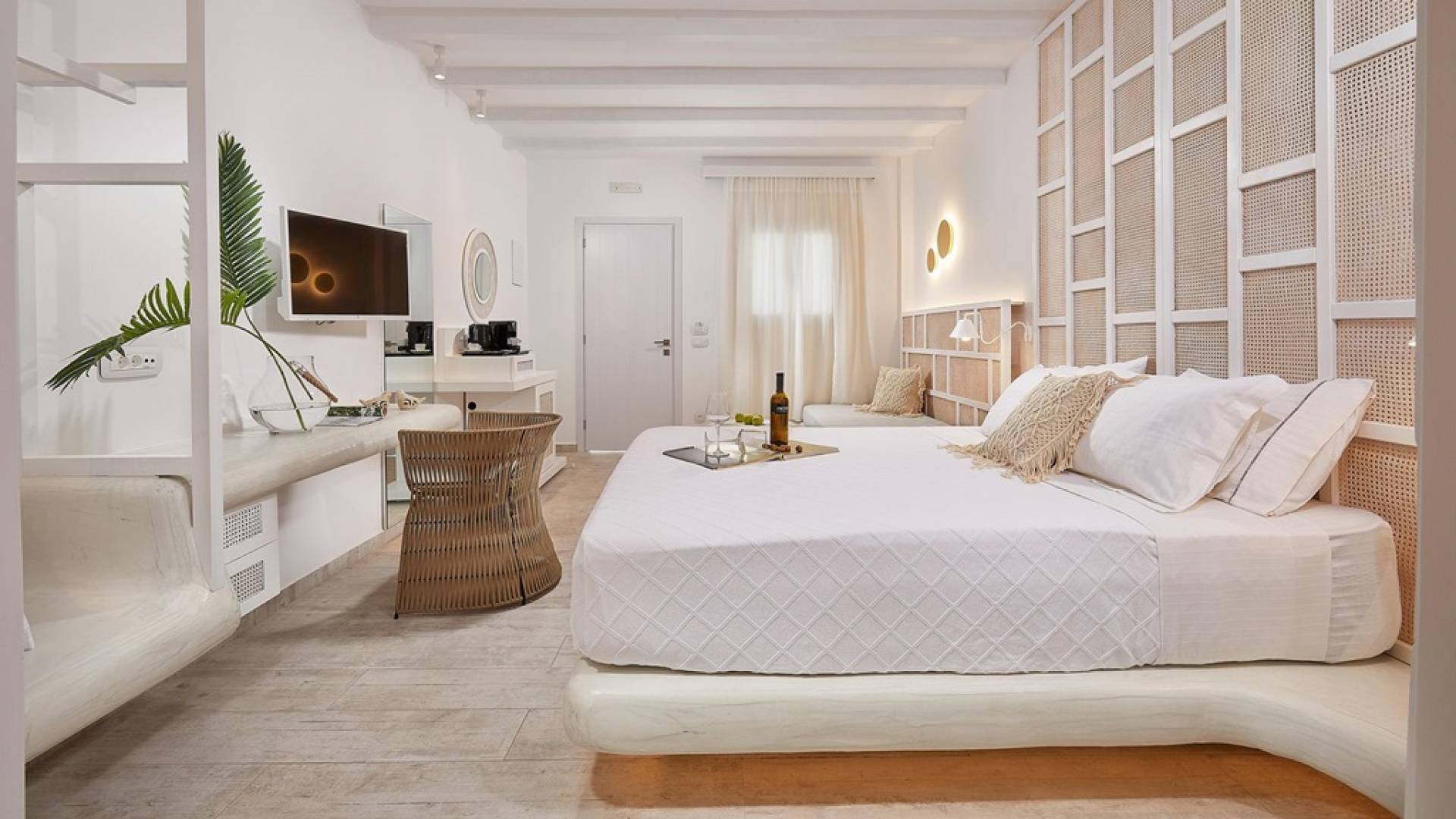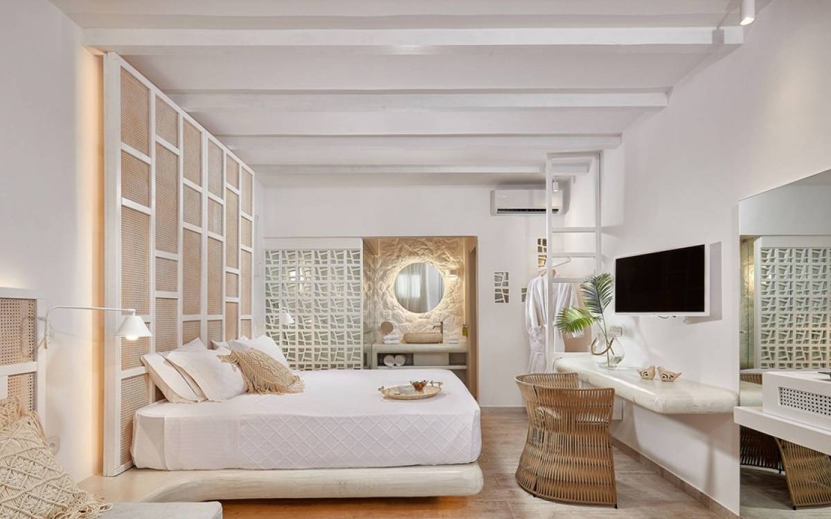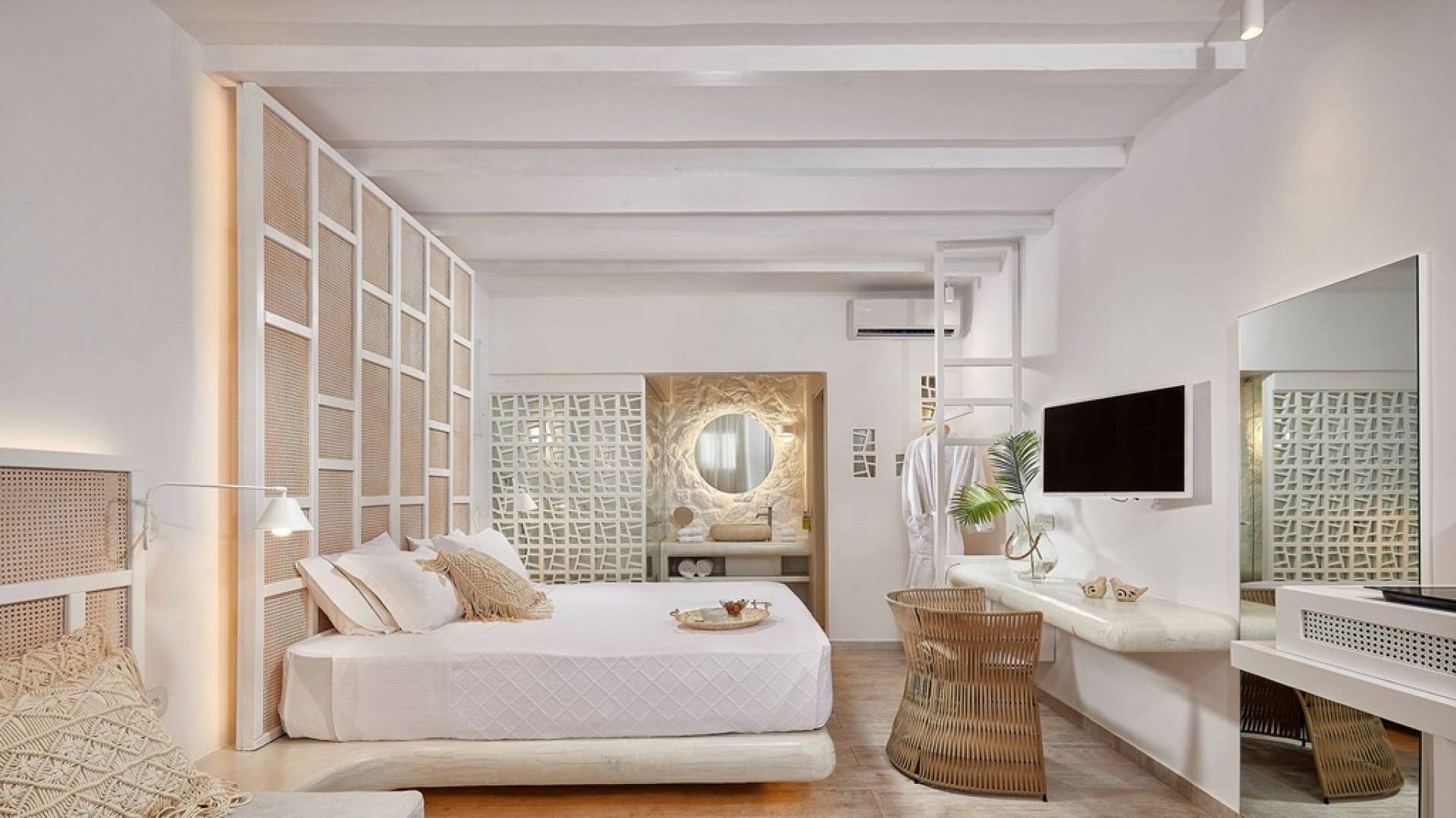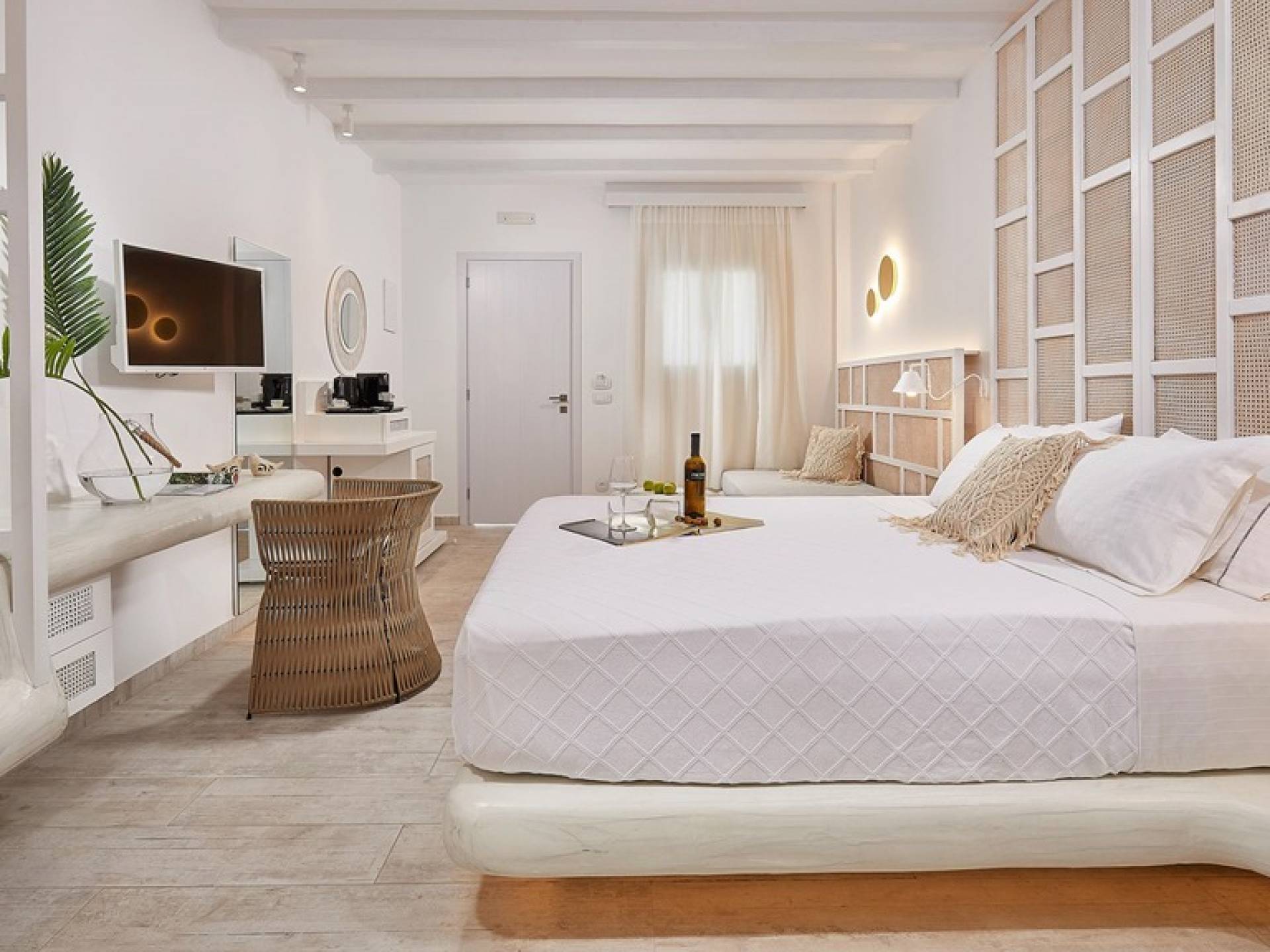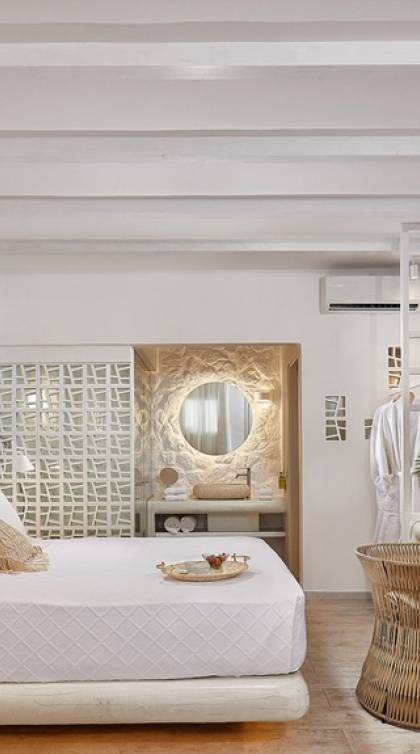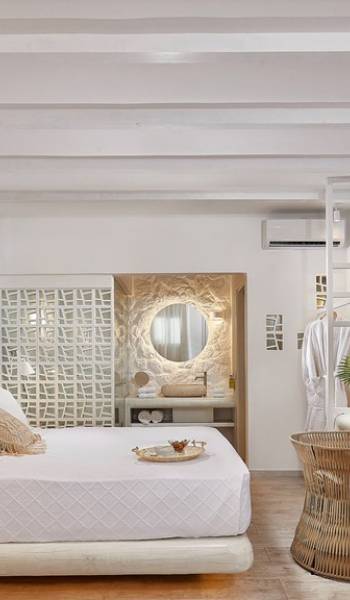 Die Comfort Suite im Petri Suites Santorini ist eine luxuriöse Suite mit 1 Schlafzimmer. Die Comfort Suite at Petri Suites zeichnet sich durch absoluten Komfort für 2 bis 3 Personen aus, die einen angenehmen Aufenthalt auf Santorin suchen. Auf 26-29 m² bietet es ein großes Doppelbett und ein eingebautes Schlafsofa, um bei Bedarf eine dritte Person unterzubringen.