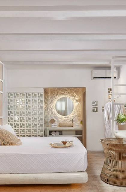 Die Comfort Suite im Petri Suites wurde mit einem raffinierten offenen Grundriss entworfen, der das Sonnenlicht maximiert und den Gästen ein Gefühl der Ausgelassenheit vermittelt. Die Farbpalette wird von Weißtönen mit einem Hauch von Strohelementen für minimale Finesse dominiert, während die versteckte Beleuchtung, die das Doppelbett umgibt, der Comfort Suite mit Gartenblick ein ganz anderes Gefühl verleiht. Der Balkon der Suite bietet den Gästen einen herrlichen Blick auf den Garten für Momente der Privatsphäre, die das Bedürfnis nach draußen befriedigen. Diese Suite mit offenem Badezimmer mit ebenerdiger Dusche wird Sie begeistern.