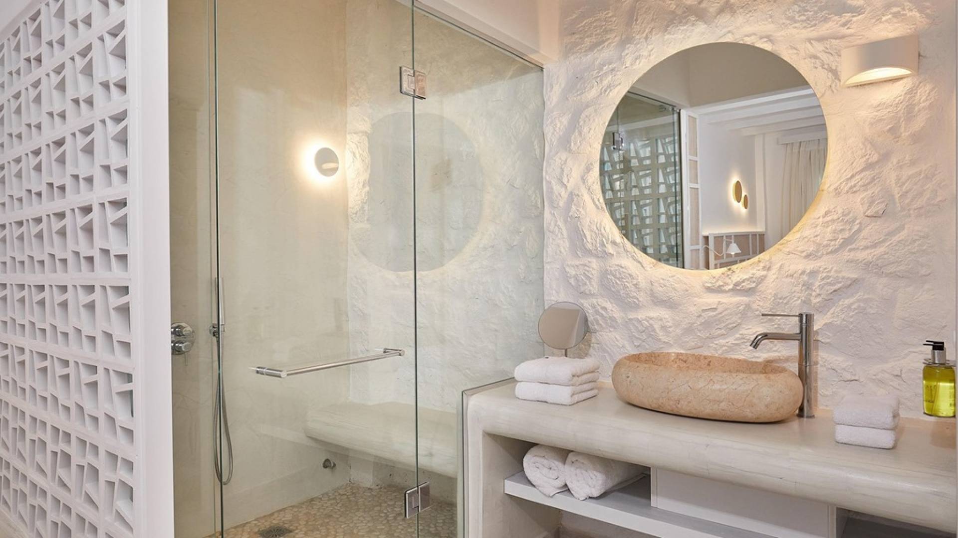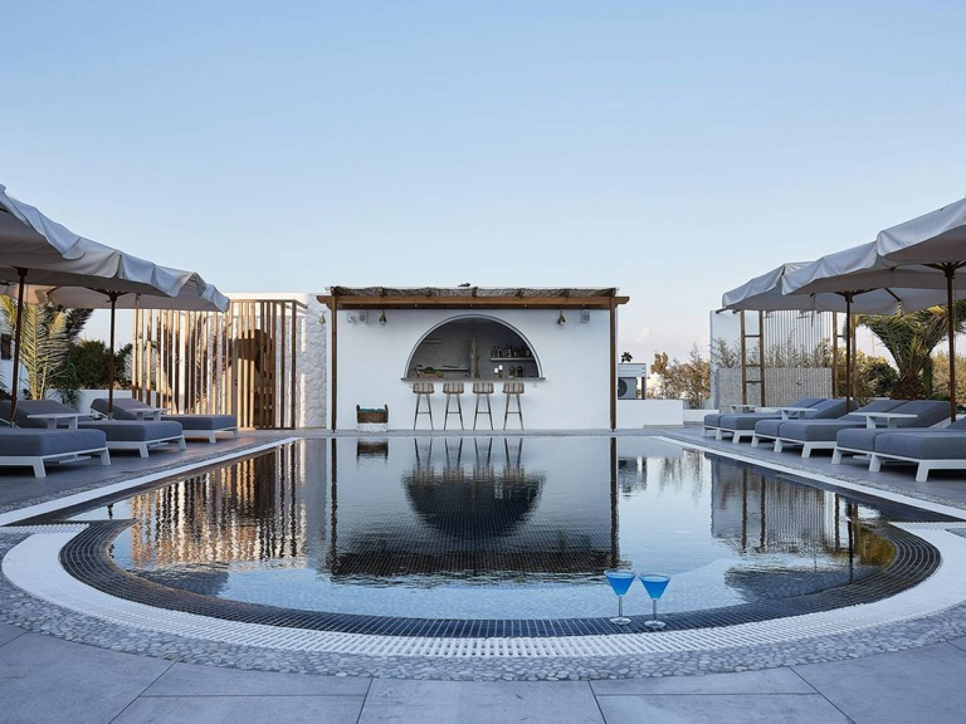 Der Außenpool, der das Gelände der Petri Suites ziert, wird Ihre Oase der Wiederbelebung sein, um den trägen Momenten der griechischen Sommerhitze zu entgehen. Um diesen schimmernden Pool herum beginnen Sie Ihren Tag mit einem köstlichen Frühstück und sonnen sich in seinen regenerierenden Eigenschaften mit dem glitzernden Meer im Hintergrund. Und um das Ambiente des kosmopolitischen schwarzen Strandes von Perivolos zu genießen, ist er nur 700 Meter entfernt.