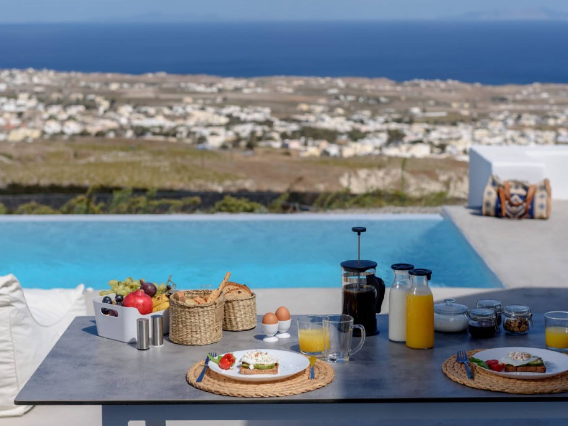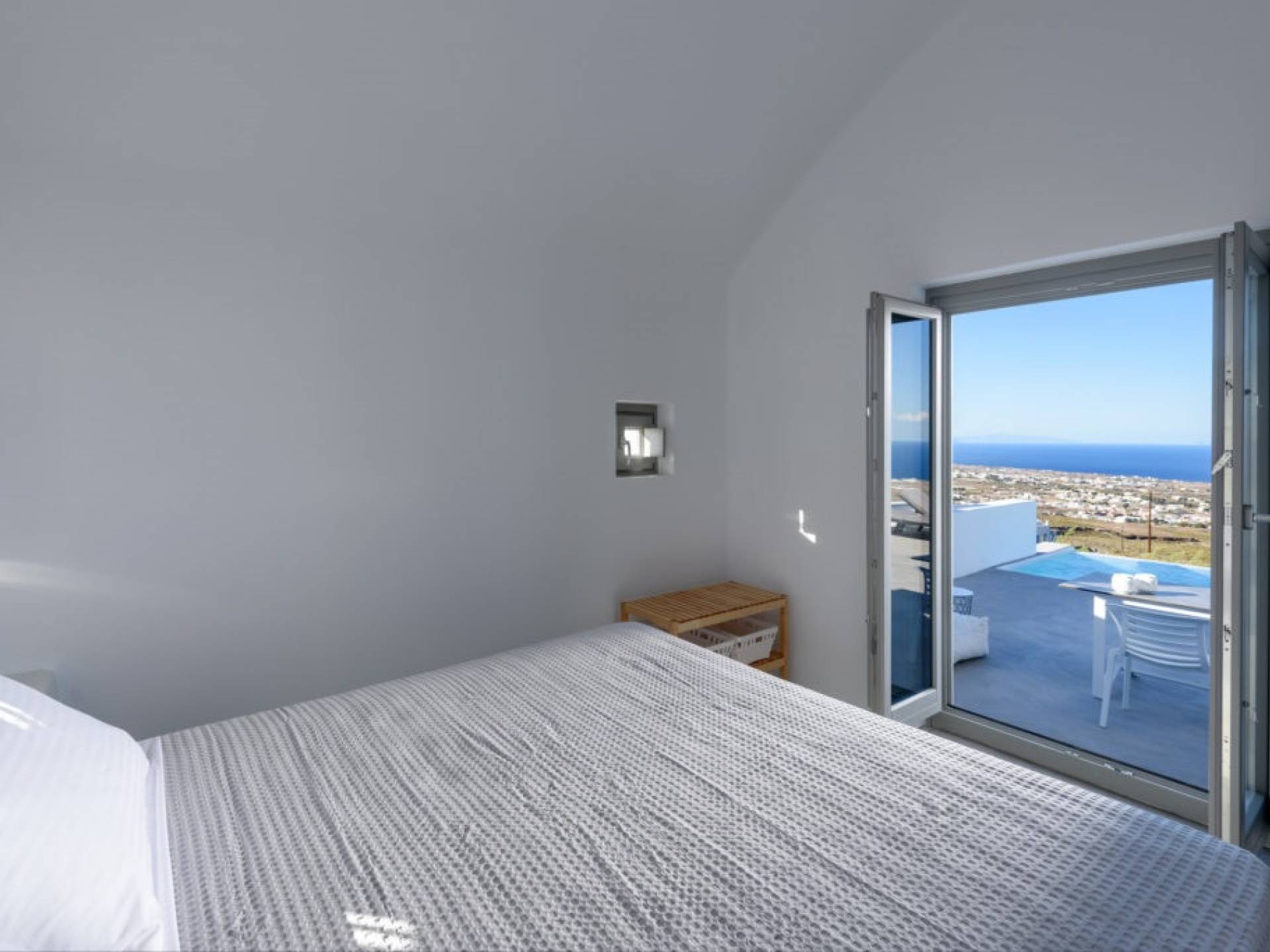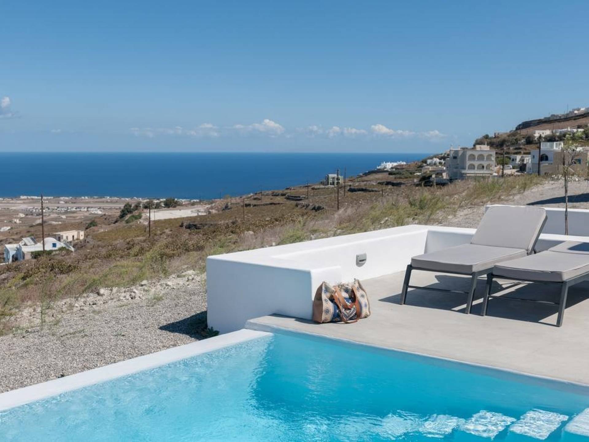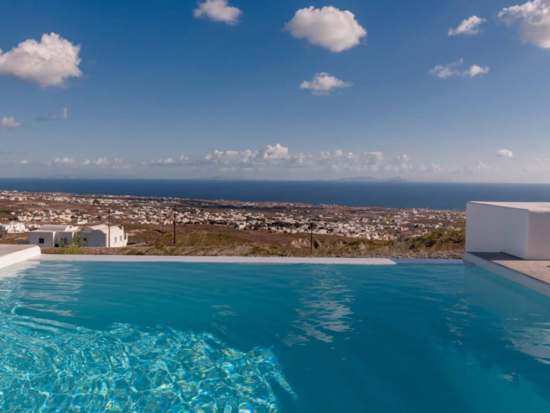 Die privilegierte Lage des Dorfes überblickt den größten Teil der Insel und bietet einen atemberaubenden Blick auf den Sonnenaufgang und die Ägäis. Die Salty Villa Santorini bietet großzügige Außenbereiche. Die Villa verfügt über eine private möblierte Terrasse mit Esstisch, Sonnenliegen und einem privaten Swimmingpool (mit Jacuzzi) mit herrlichem Panoramablick auf das Meer, das Dorf Pyrgos und den Rest der Insel. Die Aussicht auf den Sonnenaufgang ist das Muss der Häuser für diejenigen, die dieses schöne physikalische Phänomen sehen möchten.