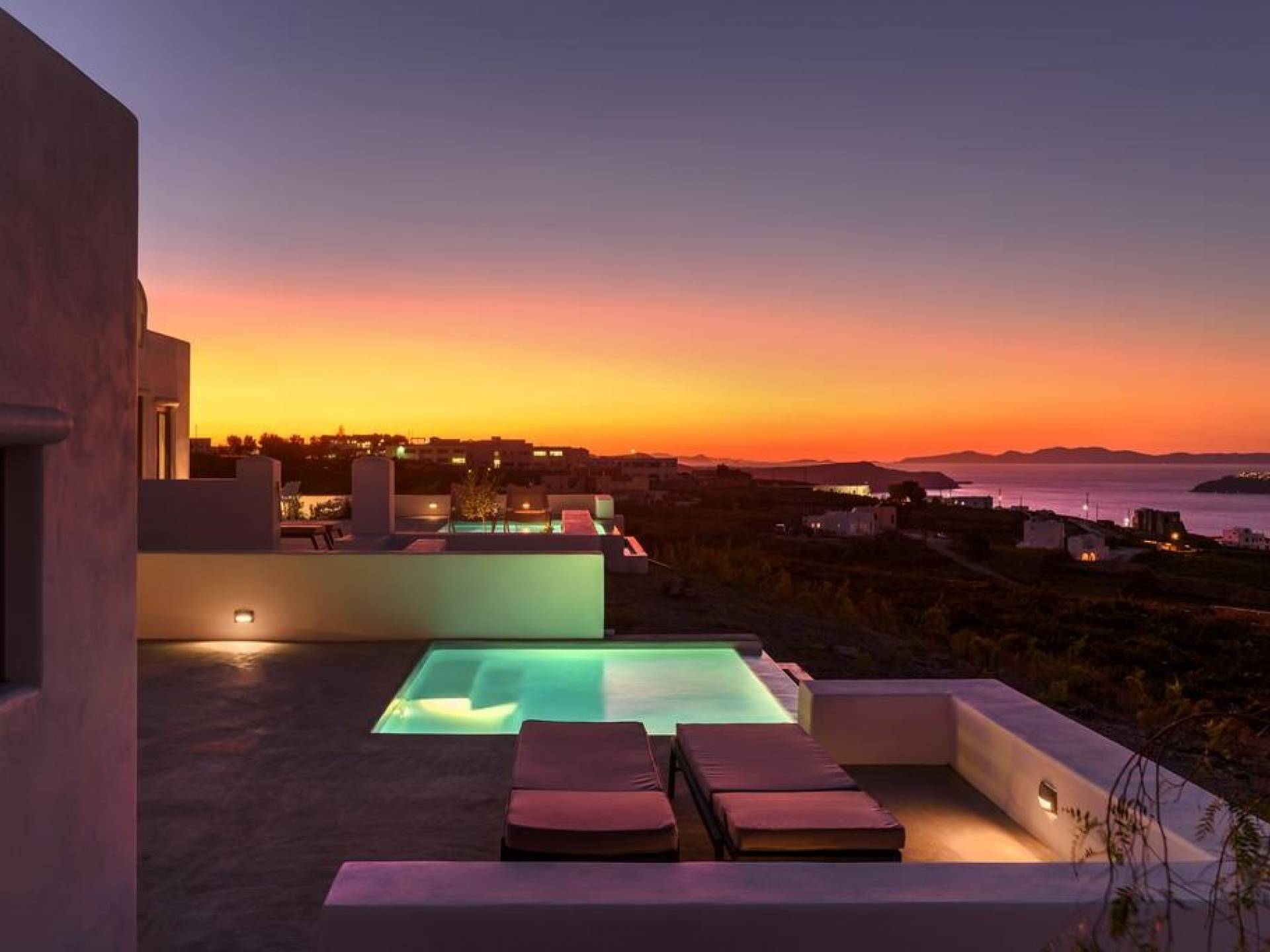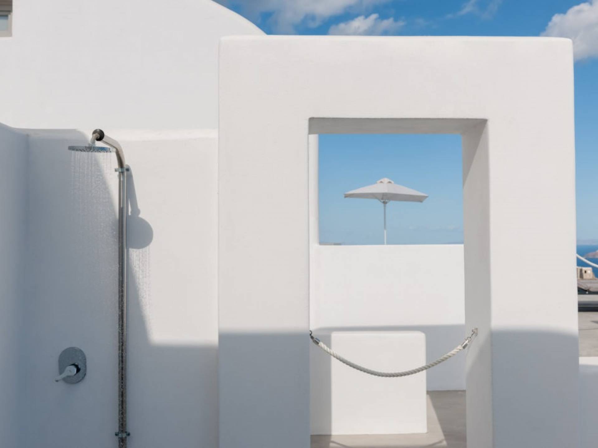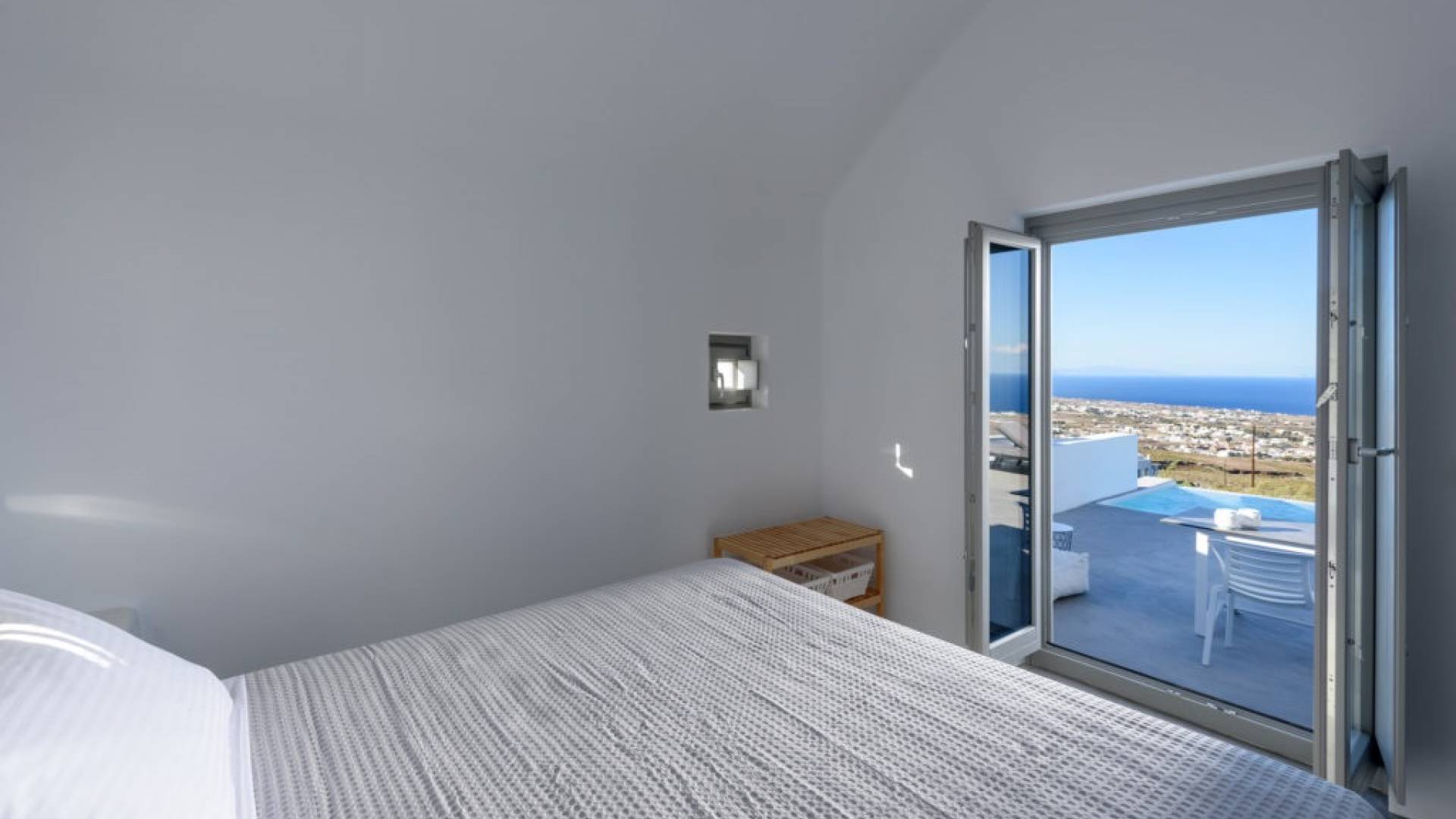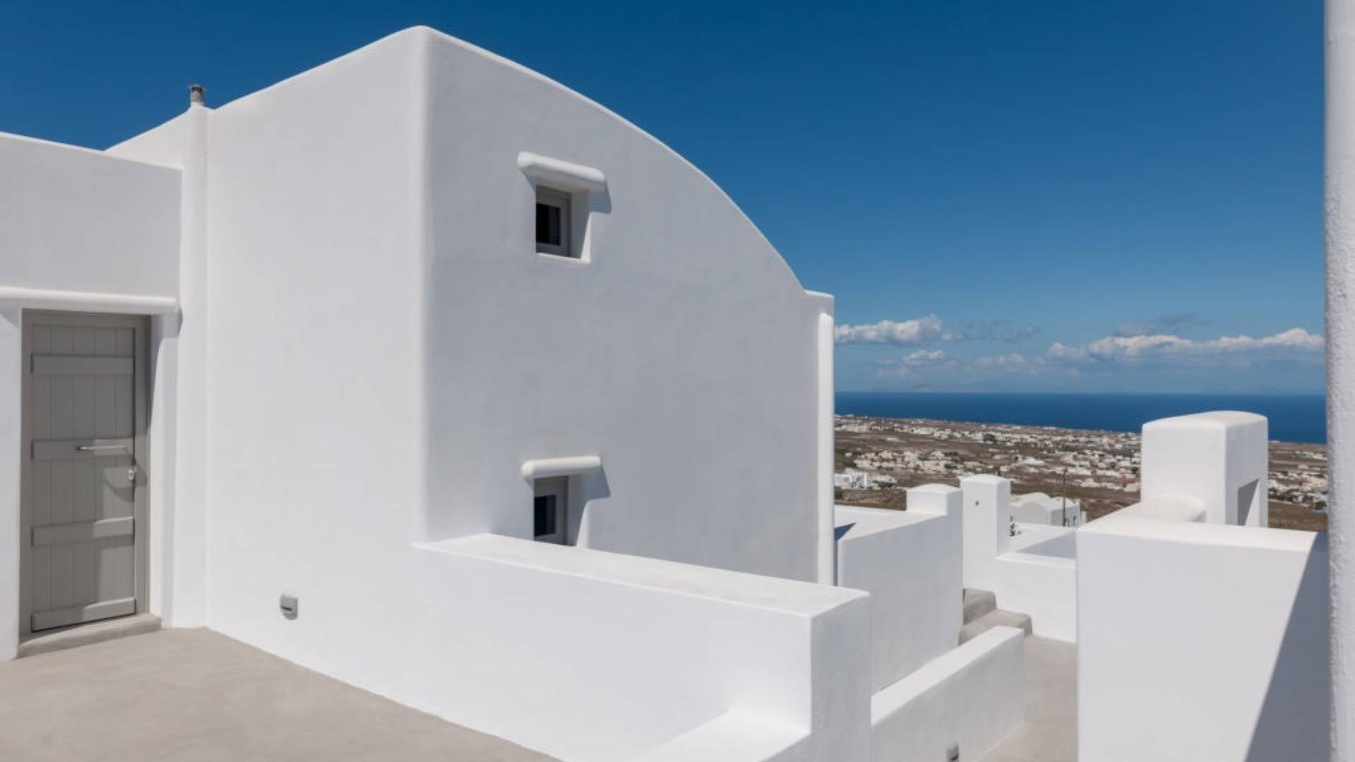Die privilegierte Lage des Dorfes überblickt den größten Teil der Insel und bietet einen atemberaubenden Blick auf den Sonnenaufgang und die Ägäis. Die Salty Villa Santorini bietet großzügige Außenbereiche. Die Villa verfügt über eine private möblierte Terrasse mit Esstisch, Sonnenliegen und einem privaten Swimmingpool (mit Jacuzzi) mit herrlichem Panoramablick auf das Meer, das Dorf Pyrgos und den Rest der Insel. Die Aussicht auf den Sonnenaufgang ist das Muss der Häuser für diejenigen, die dieses schöne physikalische Phänomen sehen möchten.