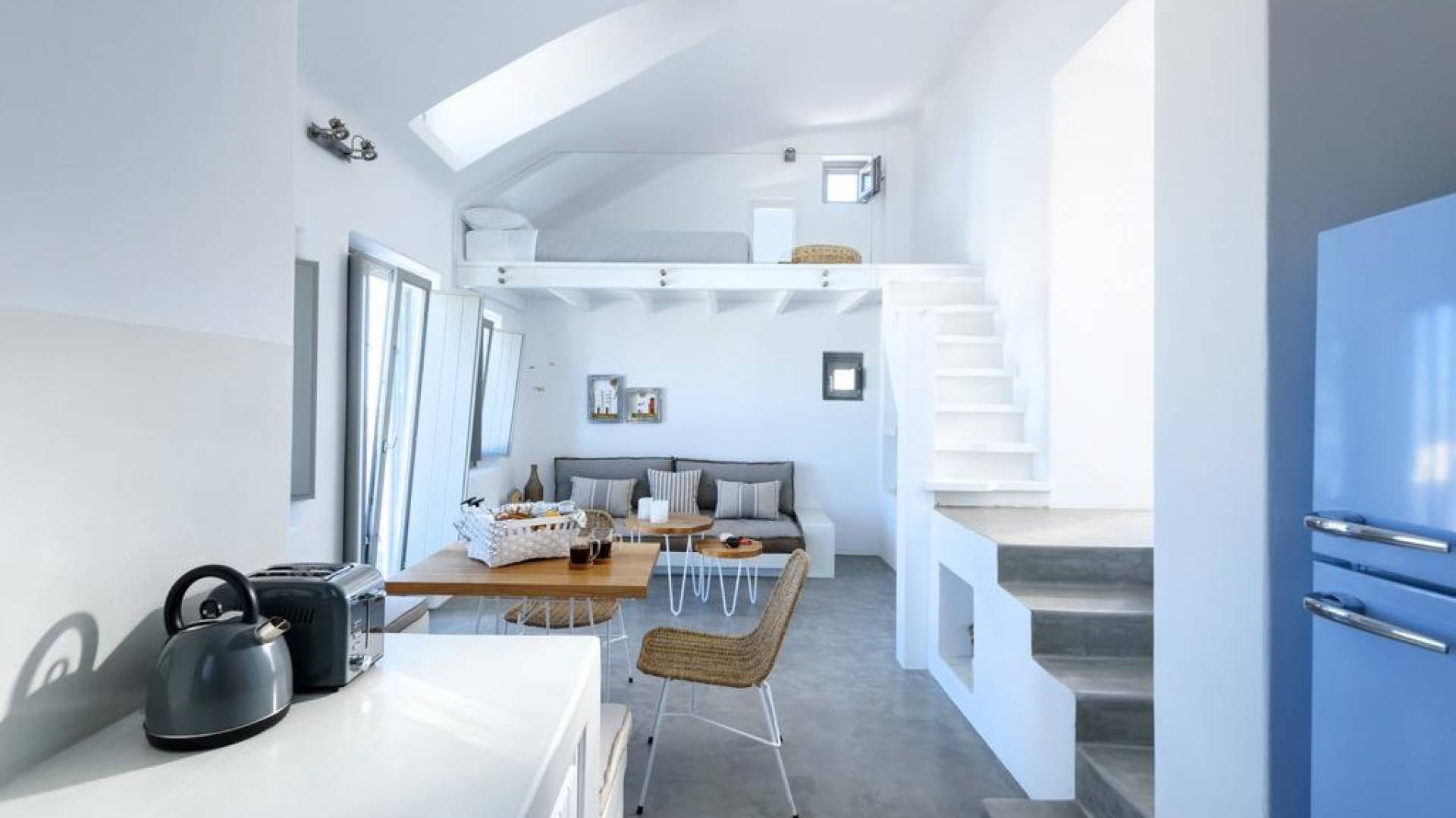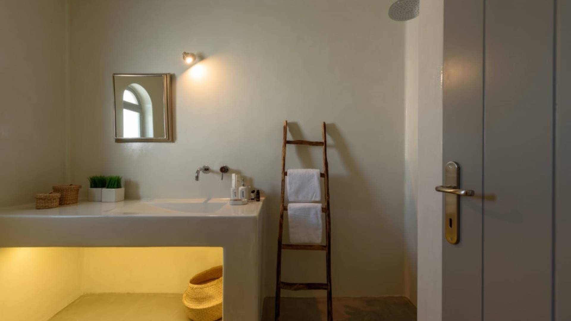 Salty Villa Santorini ist eine Luxusvilla mit 2 Schlafzimmern und einem privaten Pool. Salty Villa Santorini bietet ein geräumiges Wohnzimmer mit Essbereich und eine voll ausgestattete Küche mit Blick auf das Meer und die Schönheit der Insel. Die traditionelle Architektur findet sich auch im Inneren des Hauses wieder, wo ein schöner Loft im Wohnzimmer wie in alten Zeiten als zweites Schlafzimmer mit Doppelbett dient. Darüber hinaus bietet die Villa ein geräumiges Schlafzimmer mit Doppelbett und ein Badezimmer mit Dusche. Die Villa ist Teil des Sandy & Salty Villas Komplexes.