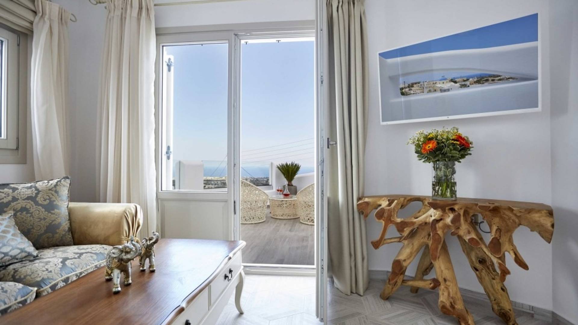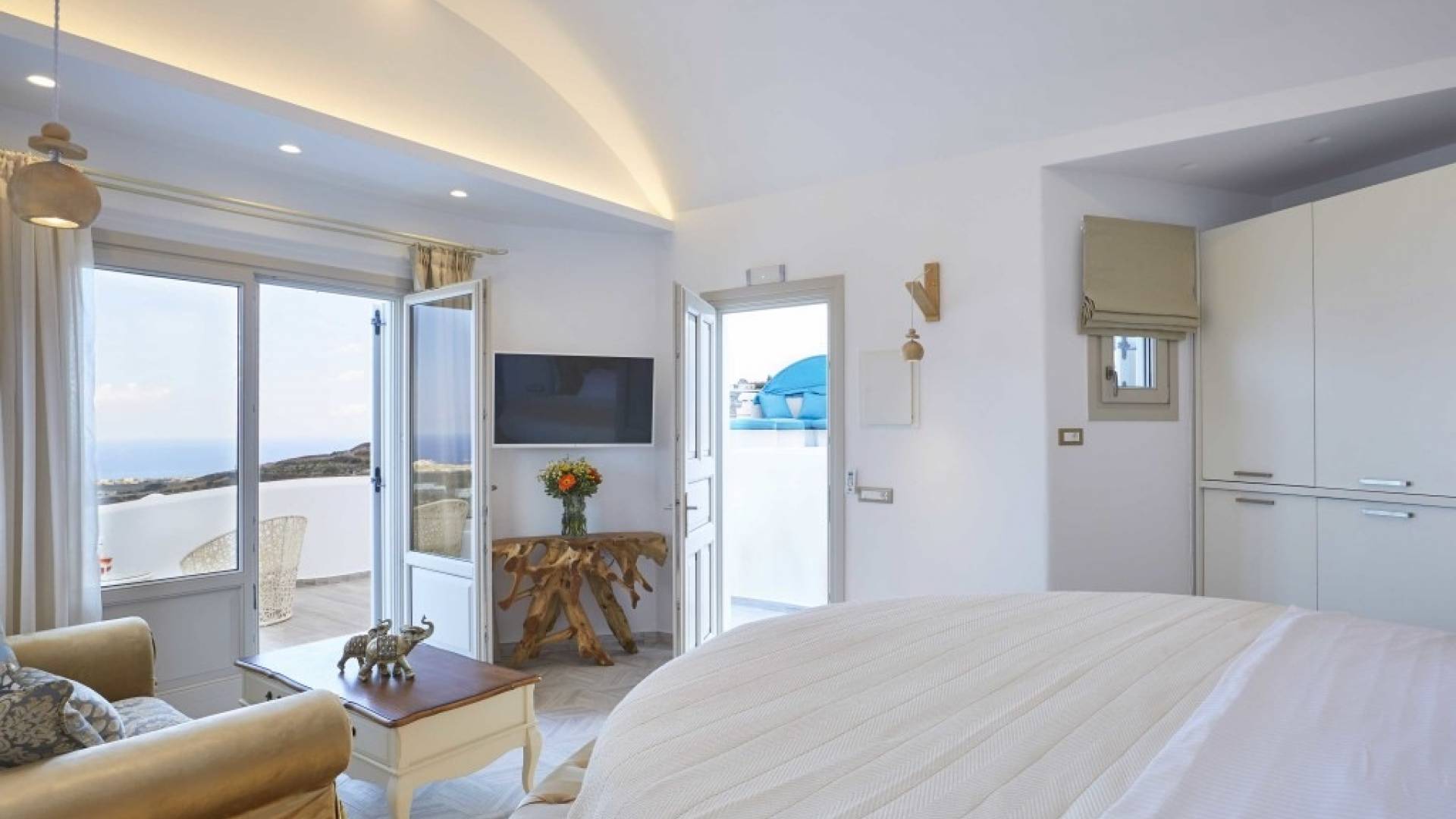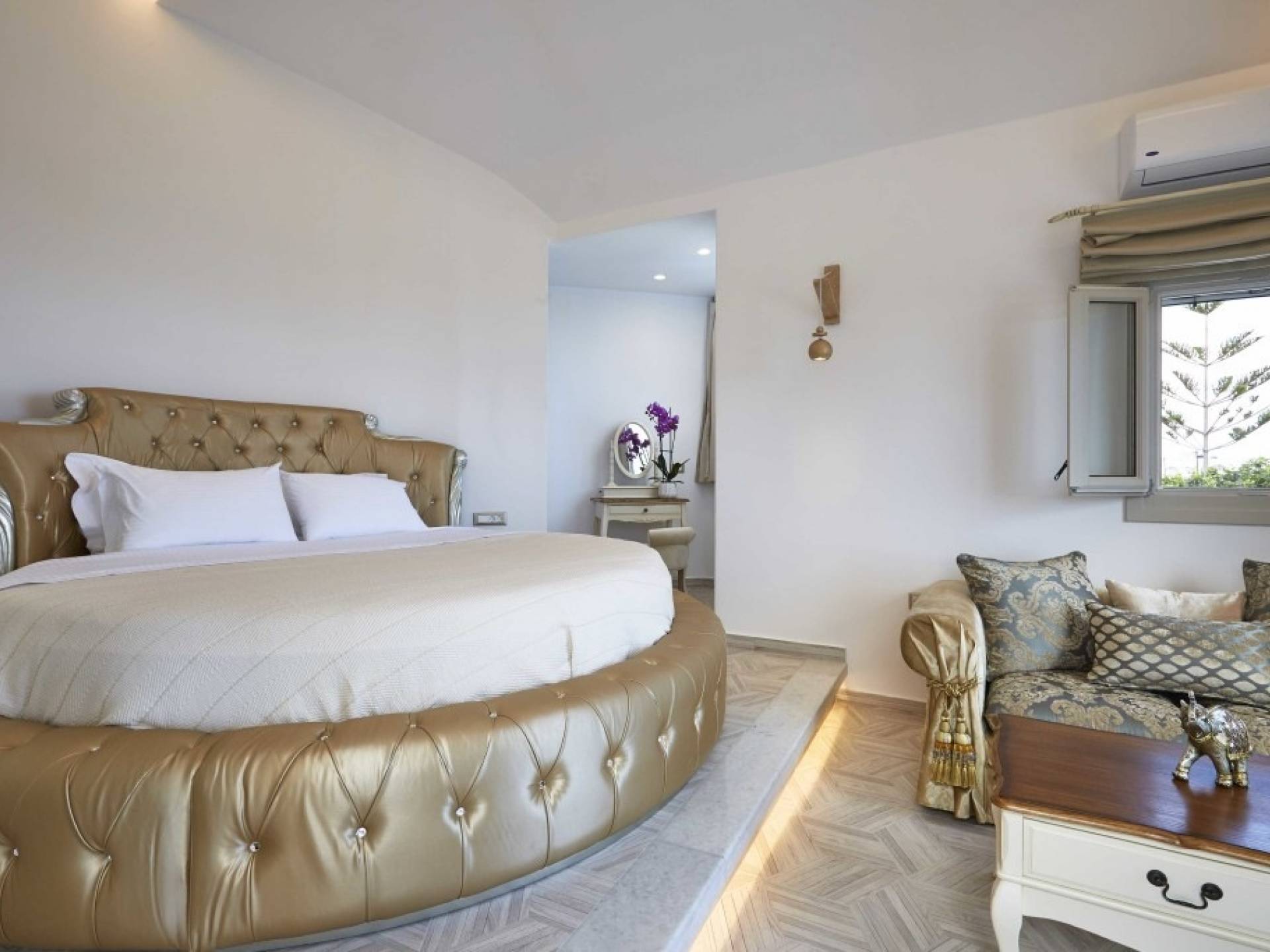 "King's Throne" ist ein hübsches Haus von ca. 38 m². und befindet sich im ersten Stock und bietet einen Panoramablick auf das Meer und den Sonnenaufgang der Kykladen. Das Haus verfügt über einen Einzelzimmer mit Kingsize-Rundbett, ein Wohnzimmer mit Sat-TV, eine kleine Küchenzeile und ein Badezimmer mit Dusche. Es bietet hochwertige Möbel und Einrichtungsgegenstände sowie einen möblierten Balkon mit Whirlpool.