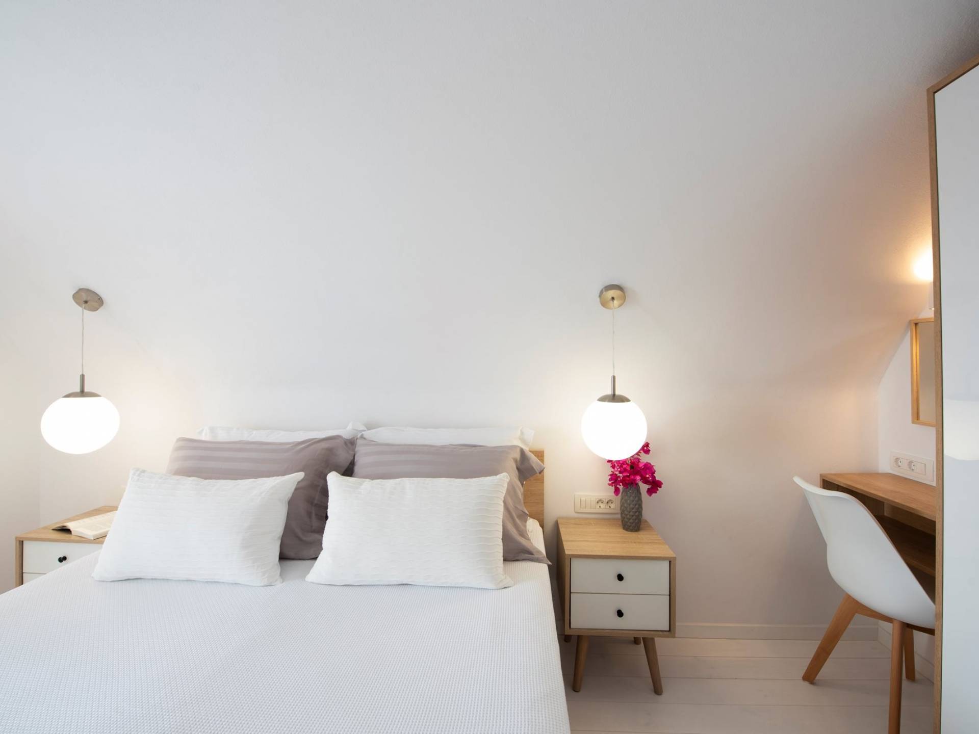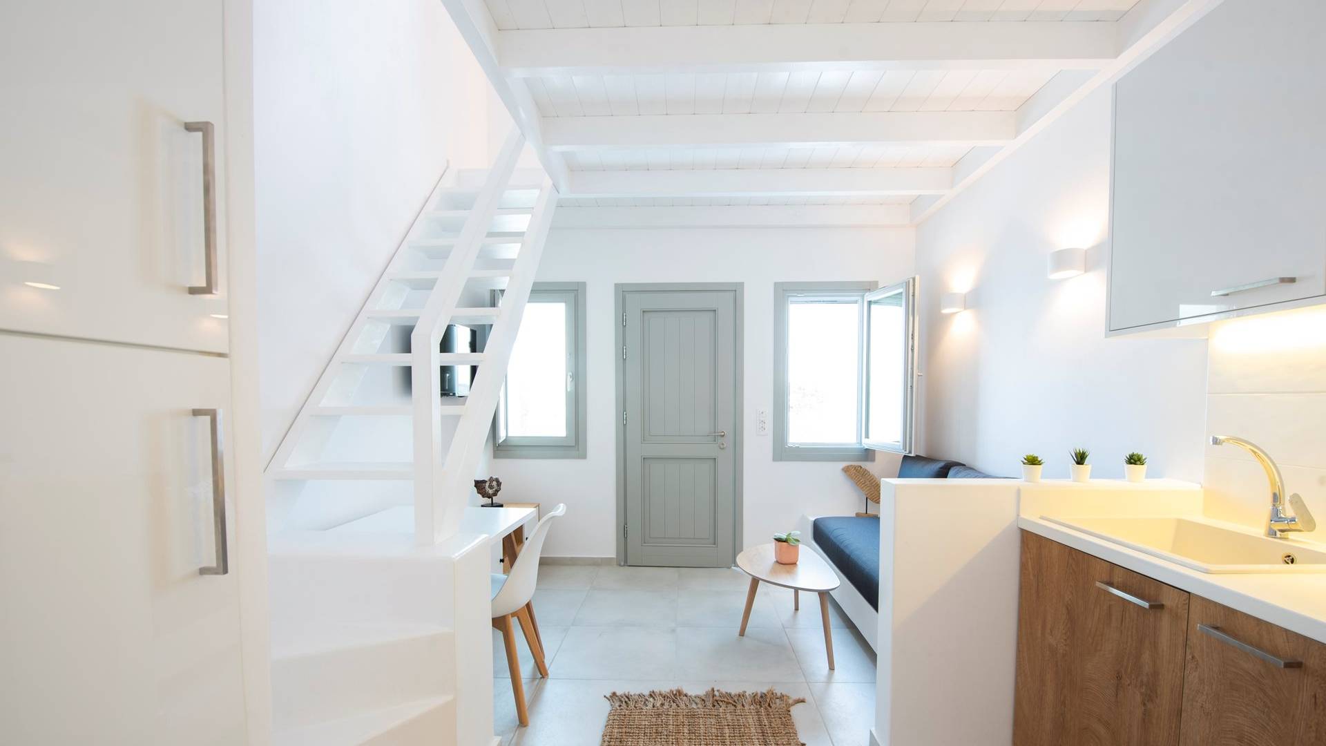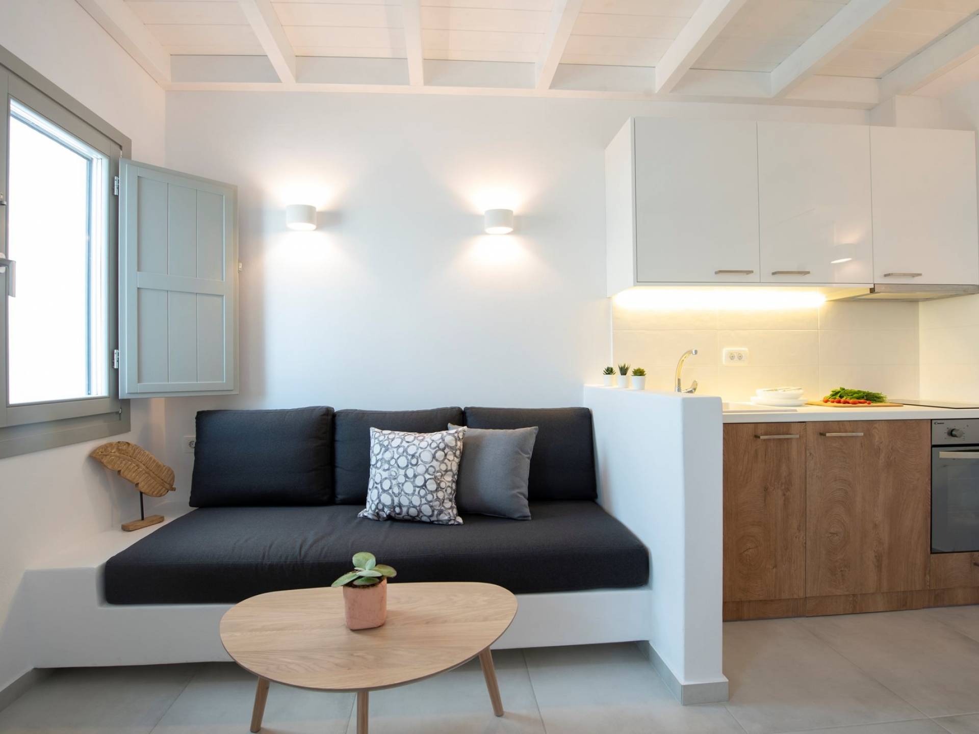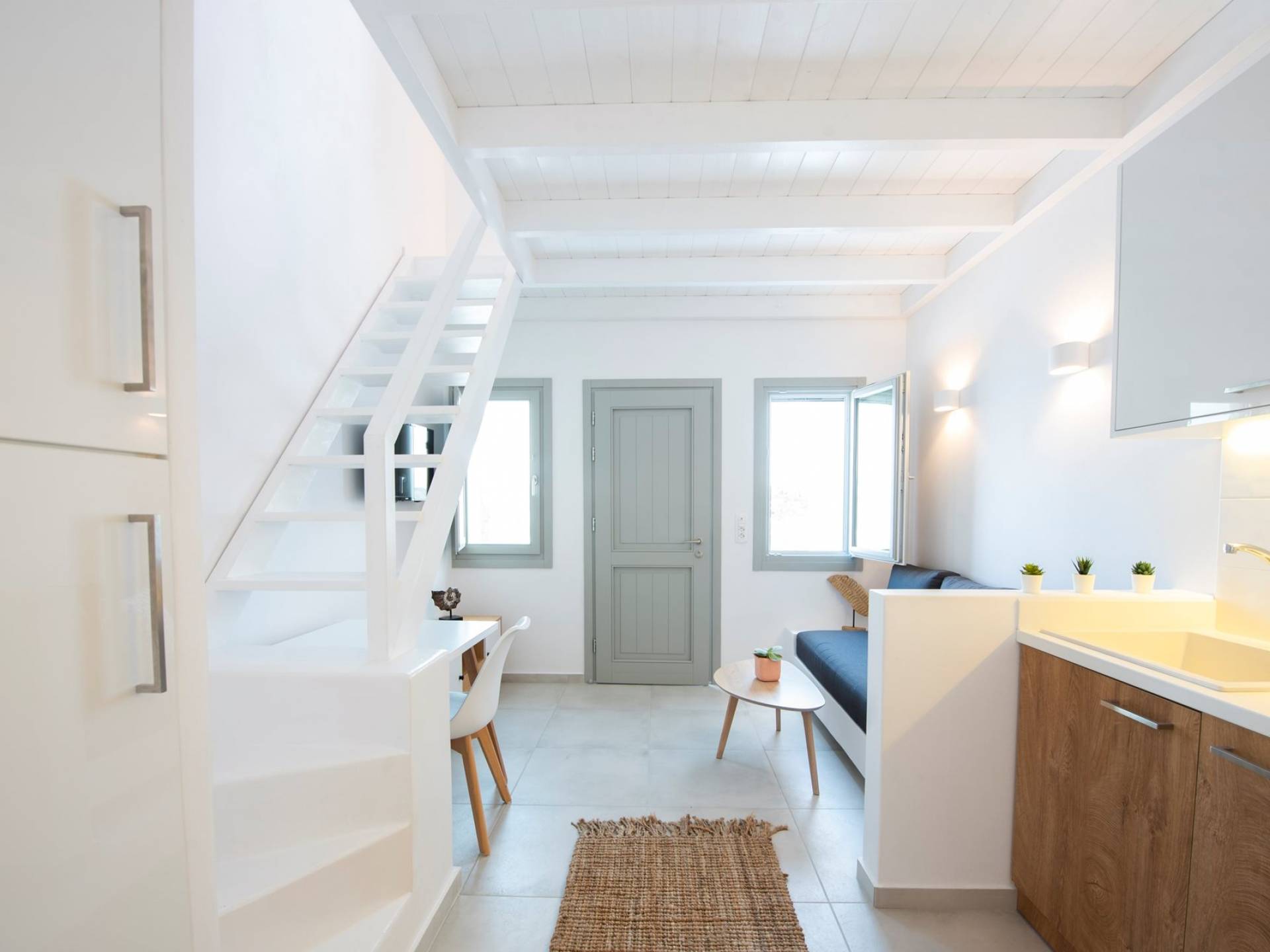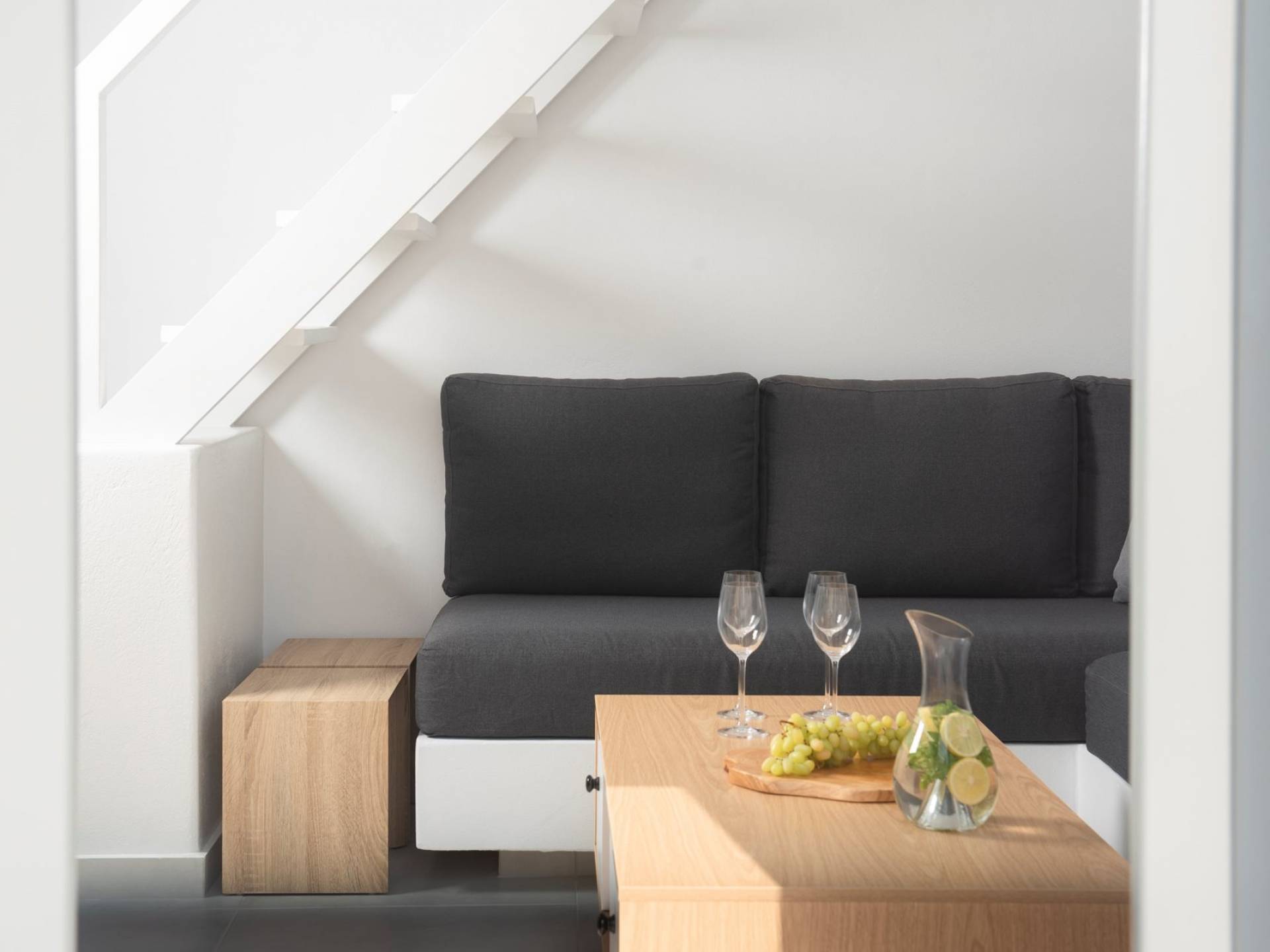 Jede Suite besteht aus 1 Schlafzimmer, 1 Badezimmer, einer voll ausgestatteten Küche, einem Wohnzimmer, einem gemeinsamen Außenbereich mit Liegestühlen, Gartenmöbeln, einem Minipool und einem kostenlosen offenen Parkplatz / kostenlosen Parkplätzen an der Straße in der näheren Umgebung. Jedes Apartment verfügt außerdem über eine private Veranda in der obersten Etage mit Gartenmöbeln, einem Sofa und einem Couchtisch.