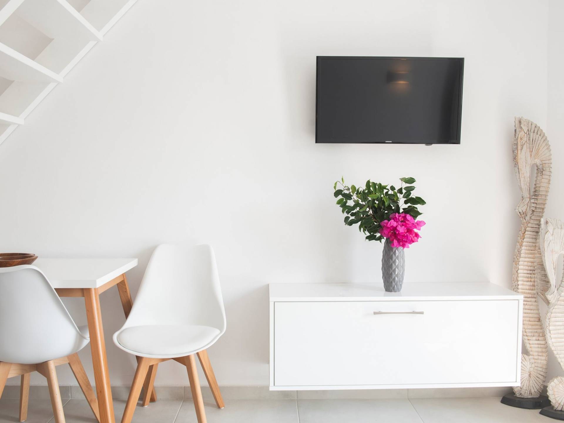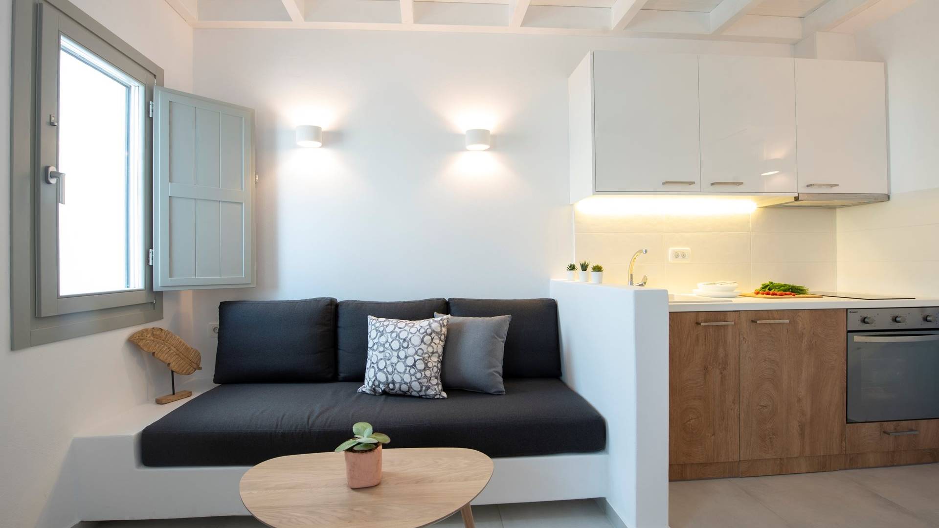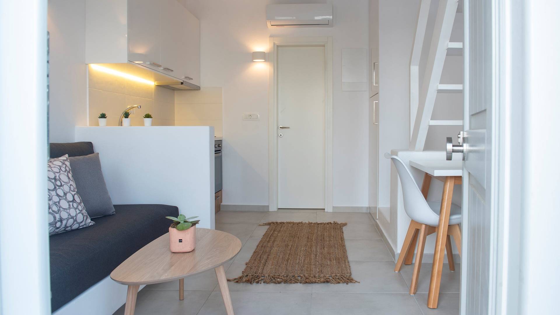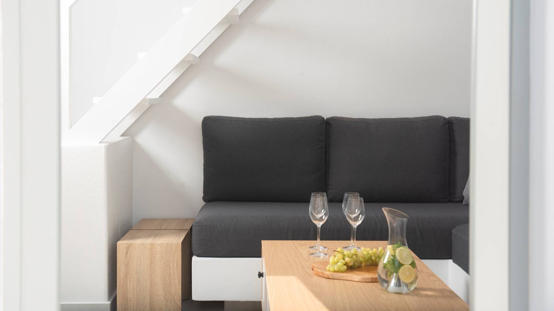 Jede Suite besteht aus 1 Schlafzimmer, 1 Badezimmer, einer voll ausgestatteten Küche, einem Wohnzimmer, einem gemeinsamen Außenbereich mit Liegestühlen, Gartenmöbeln, einem Minipool und einem kostenlosen offenen Parkplatz / kostenlosen Parkplätzen an der Straße in der näheren Umgebung. Jedes Apartment verfügt außerdem über eine private Veranda in der obersten Etage mit Gartenmöbeln, einem Sofa und einem Couchtisch.
