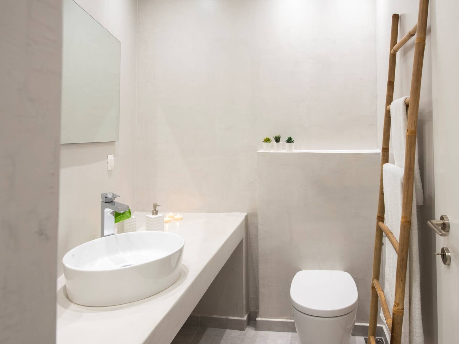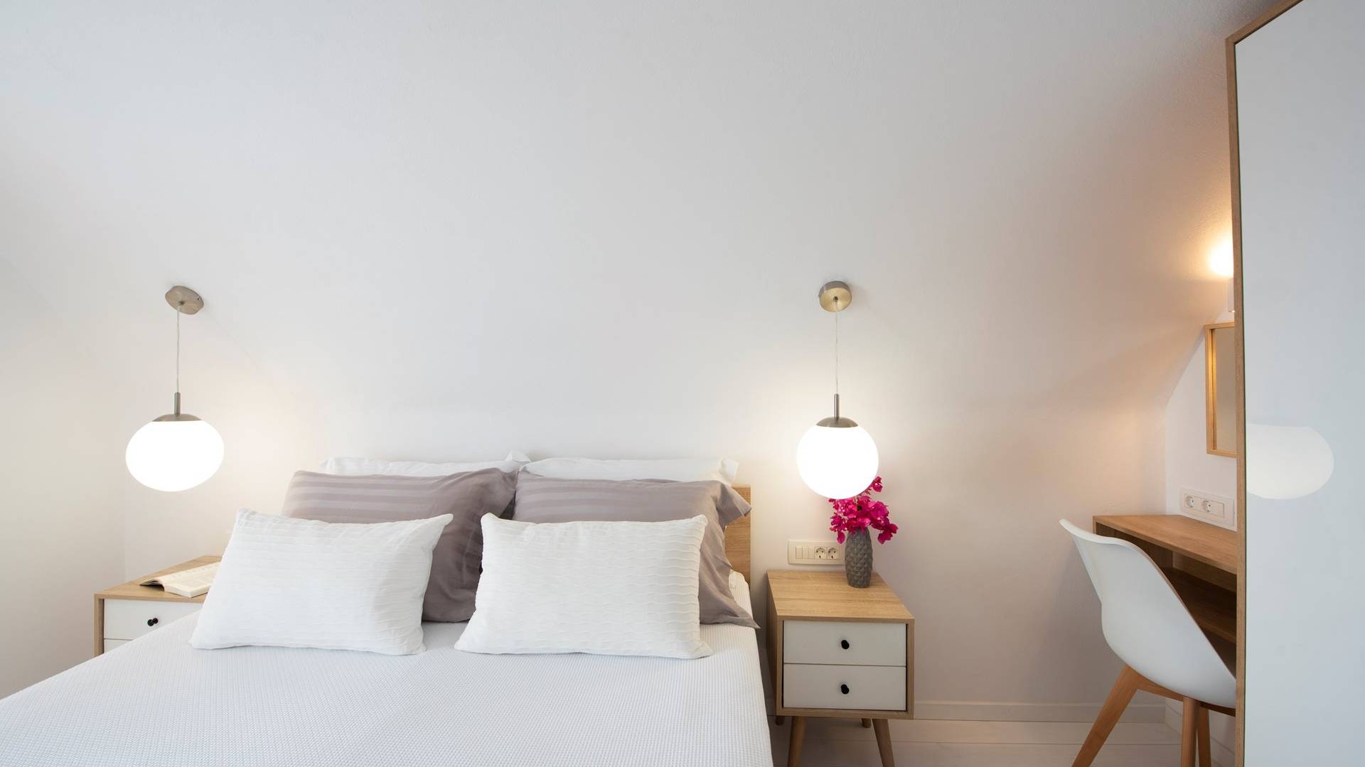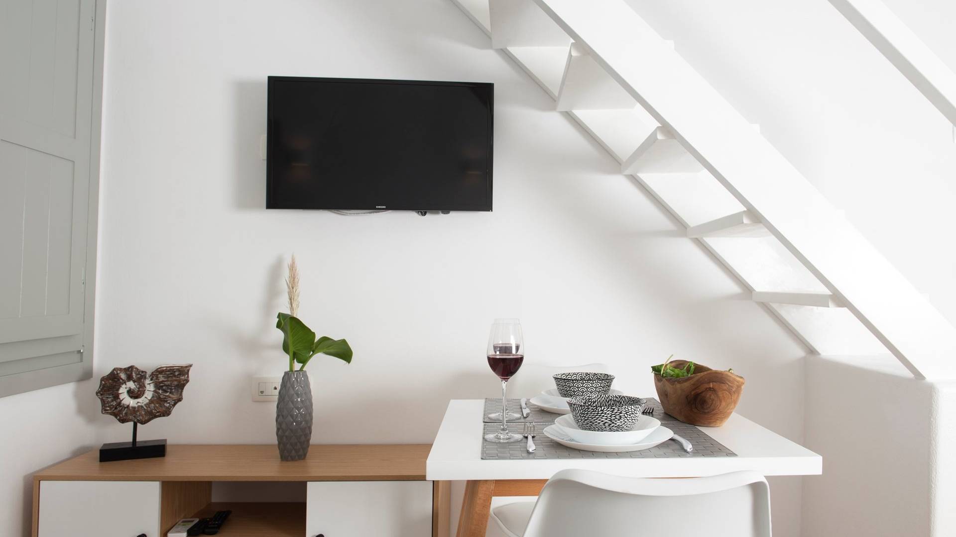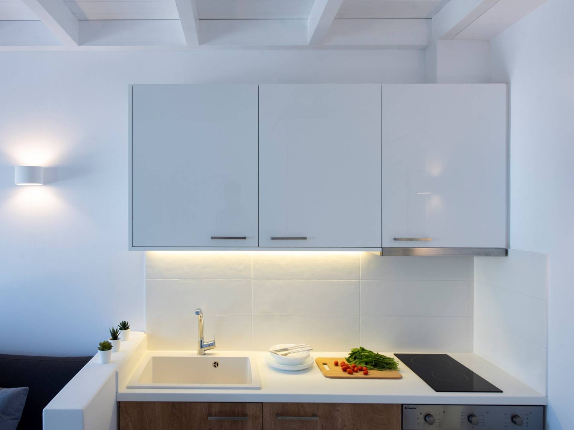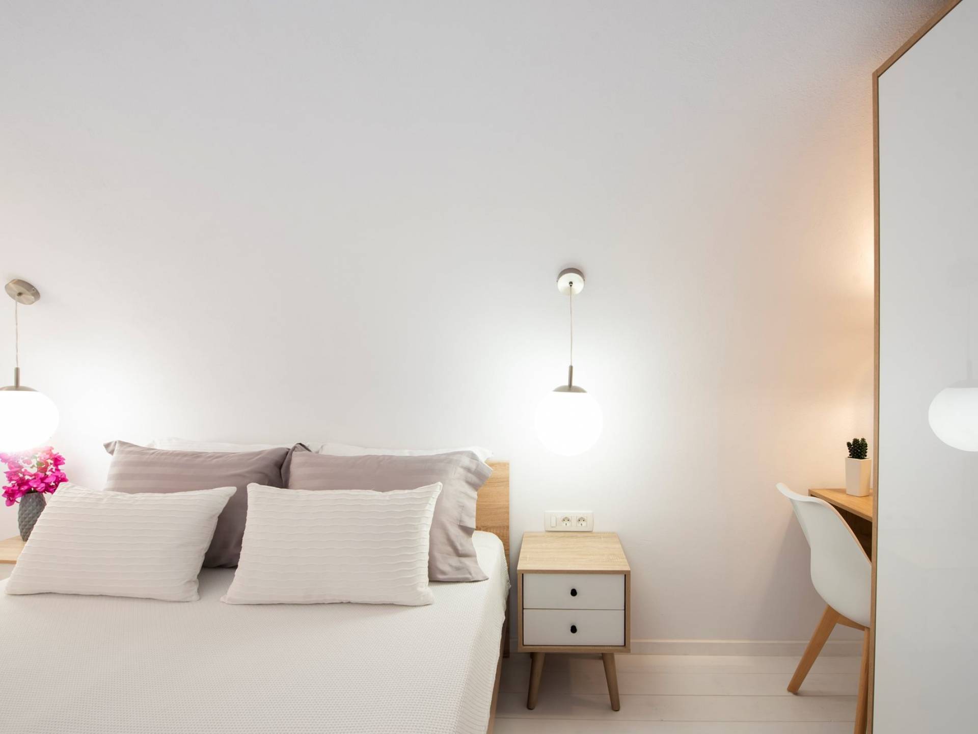 Jede Suite besteht aus 1 Schlafzimmer, 1 Badezimmer, einer voll ausgestatteten Küche, einem Wohnzimmer, einem gemeinsamen Außenbereich mit Liegestühlen, Gartenmöbeln, einem Minipool und einem kostenlosen offenen Parkplatz / kostenlosen Parkplätzen an der Straße in der näheren Umgebung. Jedes Apartment verfügt außerdem über eine private Veranda in der obersten Etage mit Gartenmöbeln, einem Sofa und einem Couchtisch.