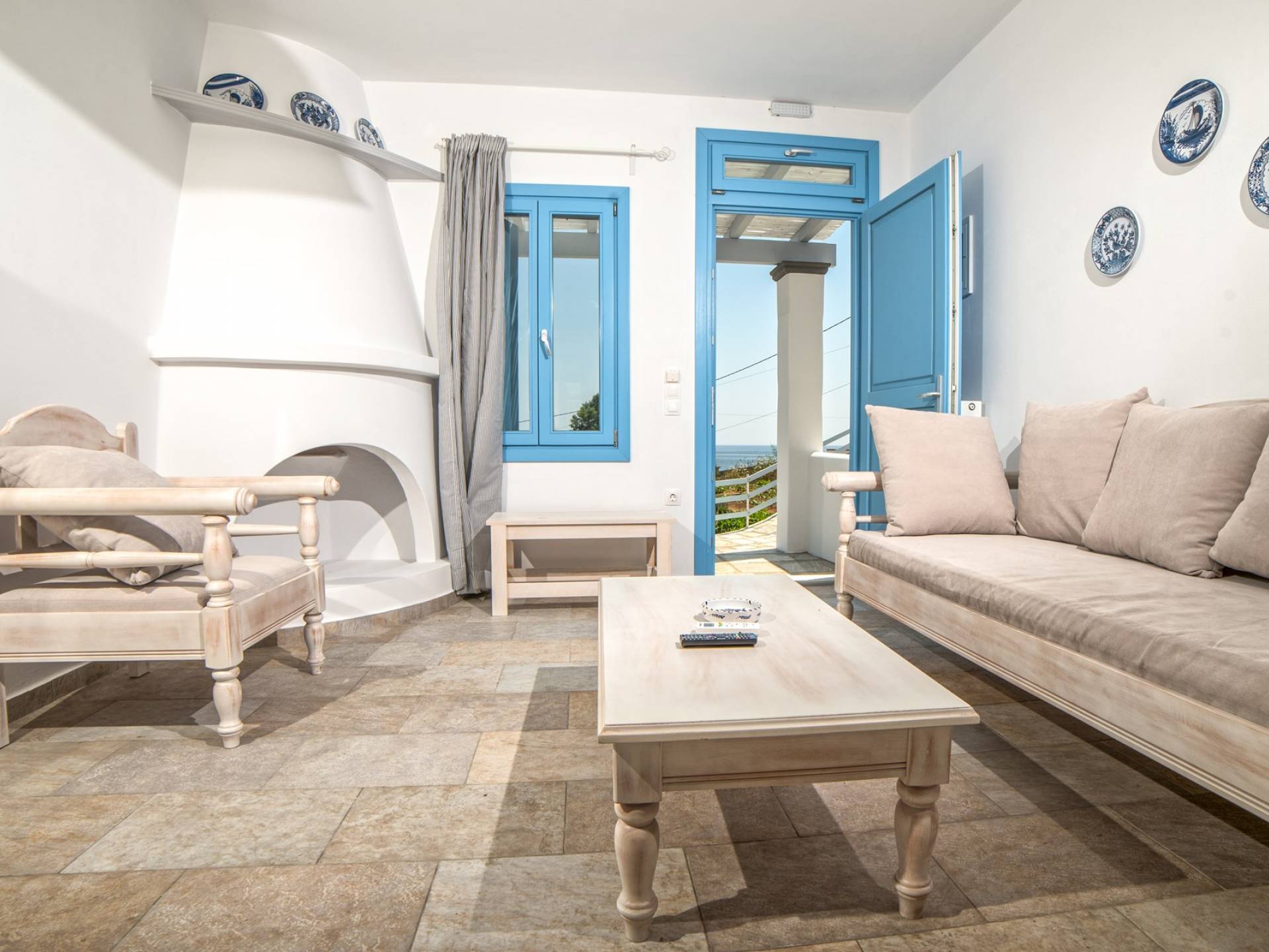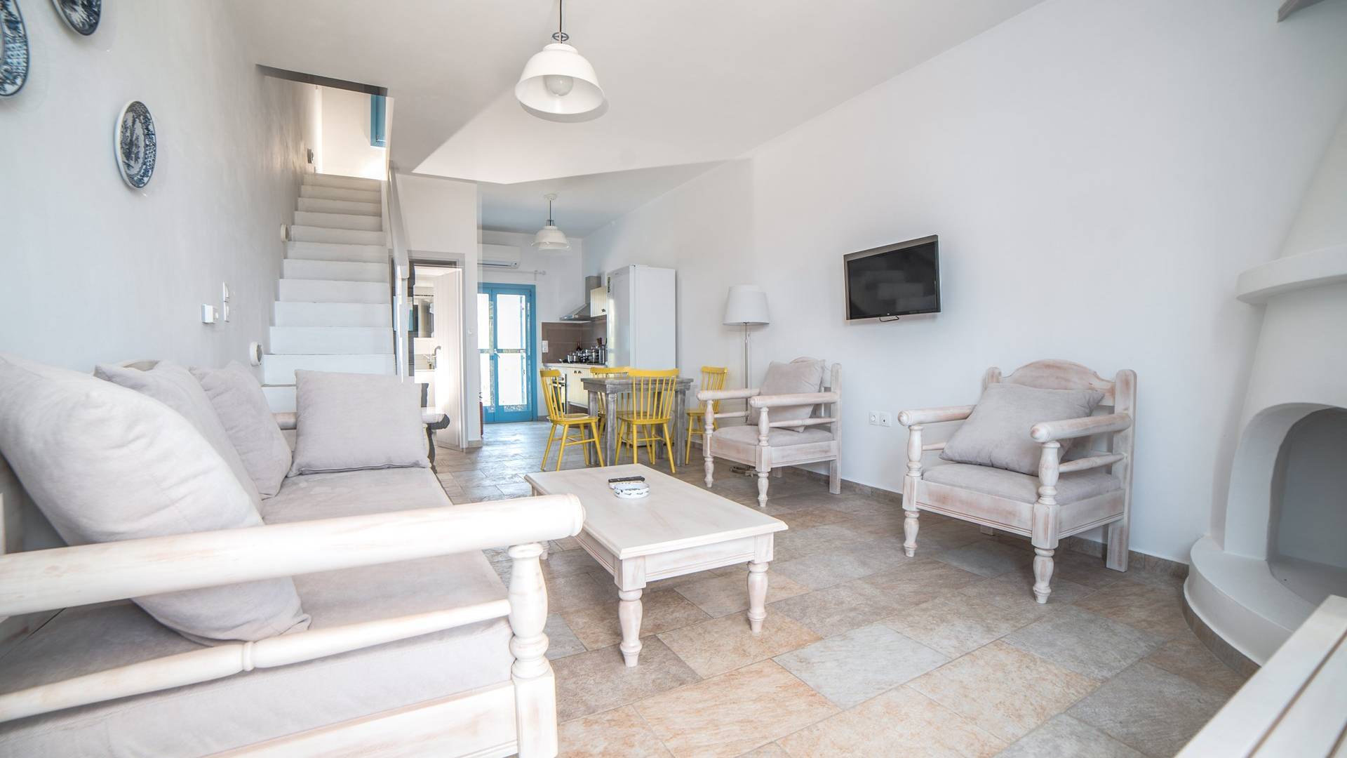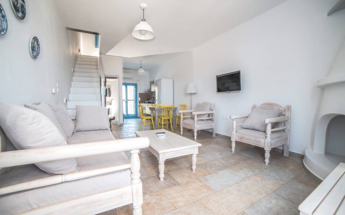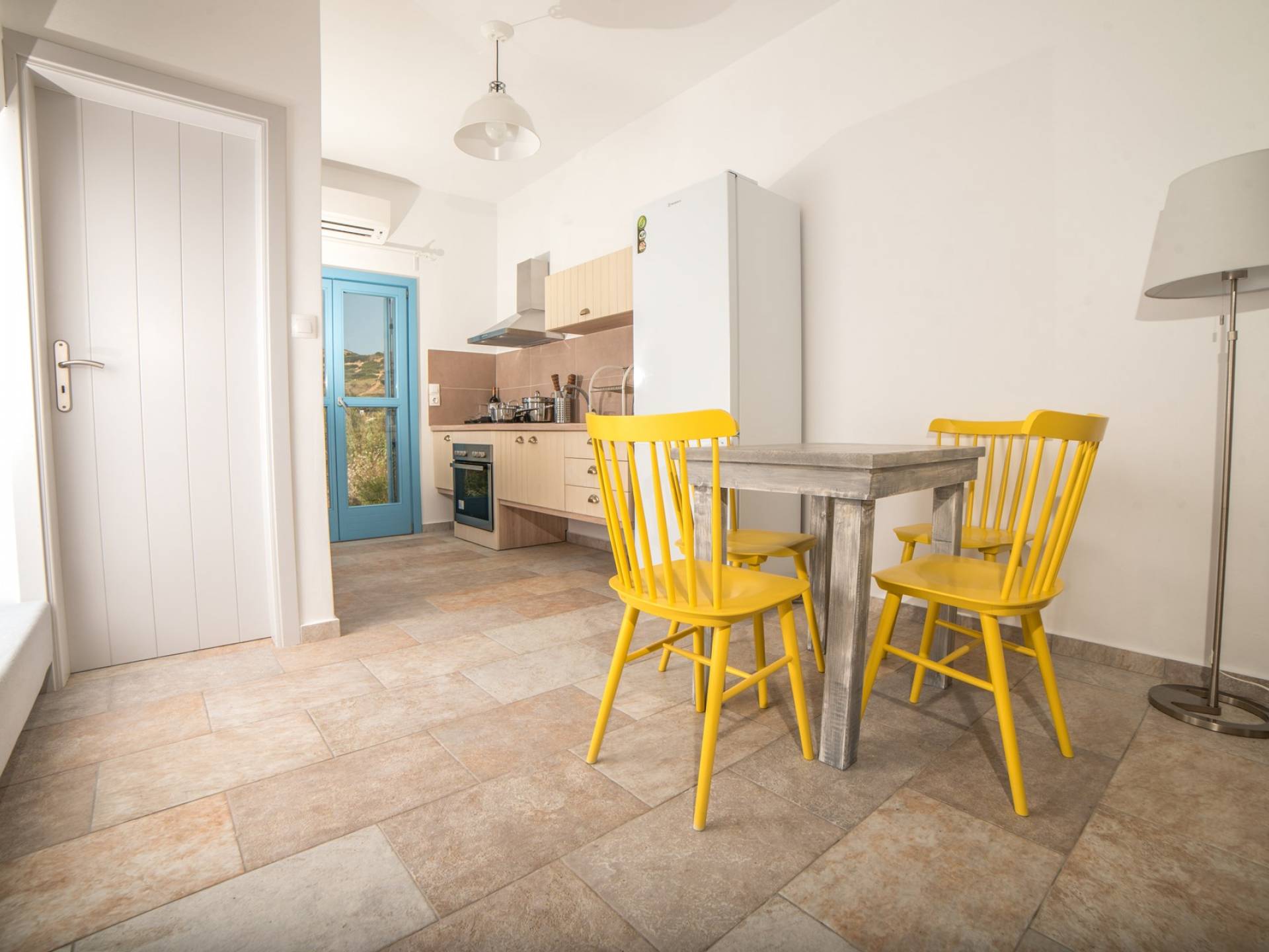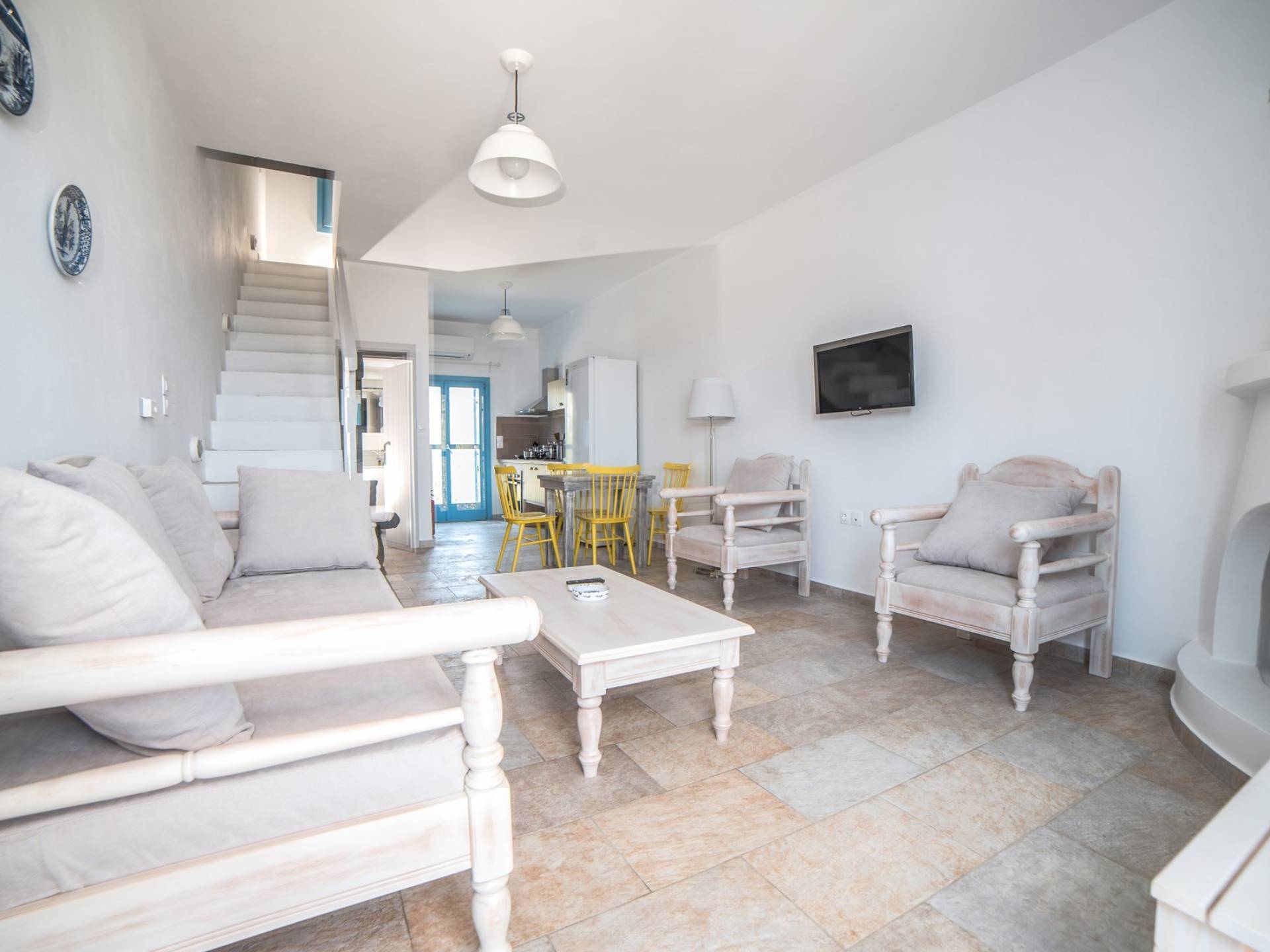 Almyra Superior House Skyros ist eine Wohnung, die aus 45 m2 besteht und zwei Räume hat, ein Wohnzimmer mit einem Badezimmer im Erdgeschoss und ein Schlafzimmer mit einem weiteren Badezimmer im ersten Stock, das über eine Innentreppe erreichbar ist . Das Zimmer hat auch eine Terrasse und einen Garten sowohl auf der Vorder- als auch auf der Rückseite, wo Sie Ihren Kaffee, Ihr Frühstück, Ihr Abendessen oder Ihren Abenddrink genießen können.