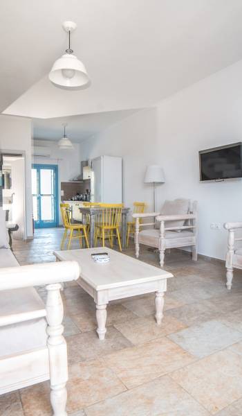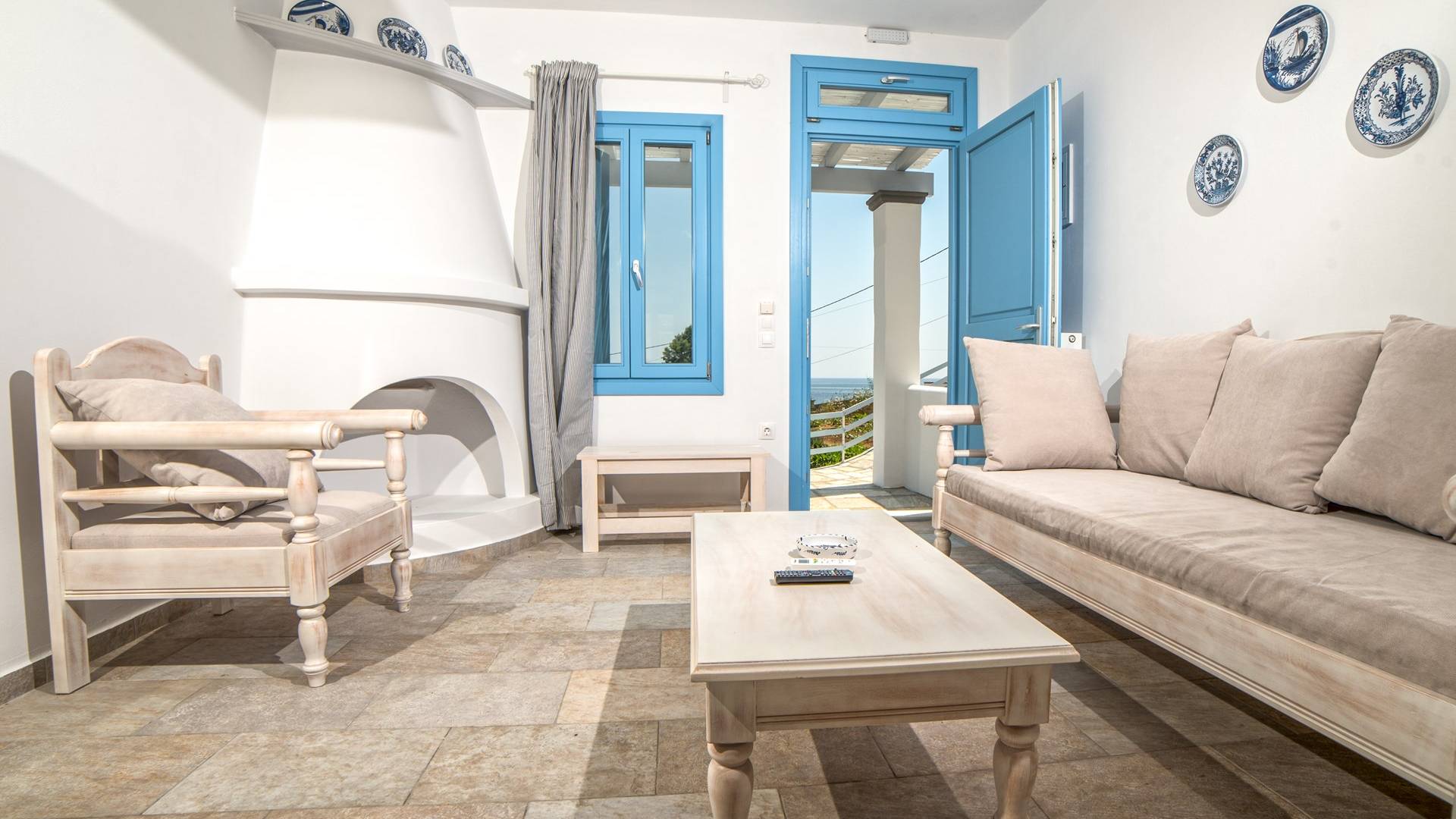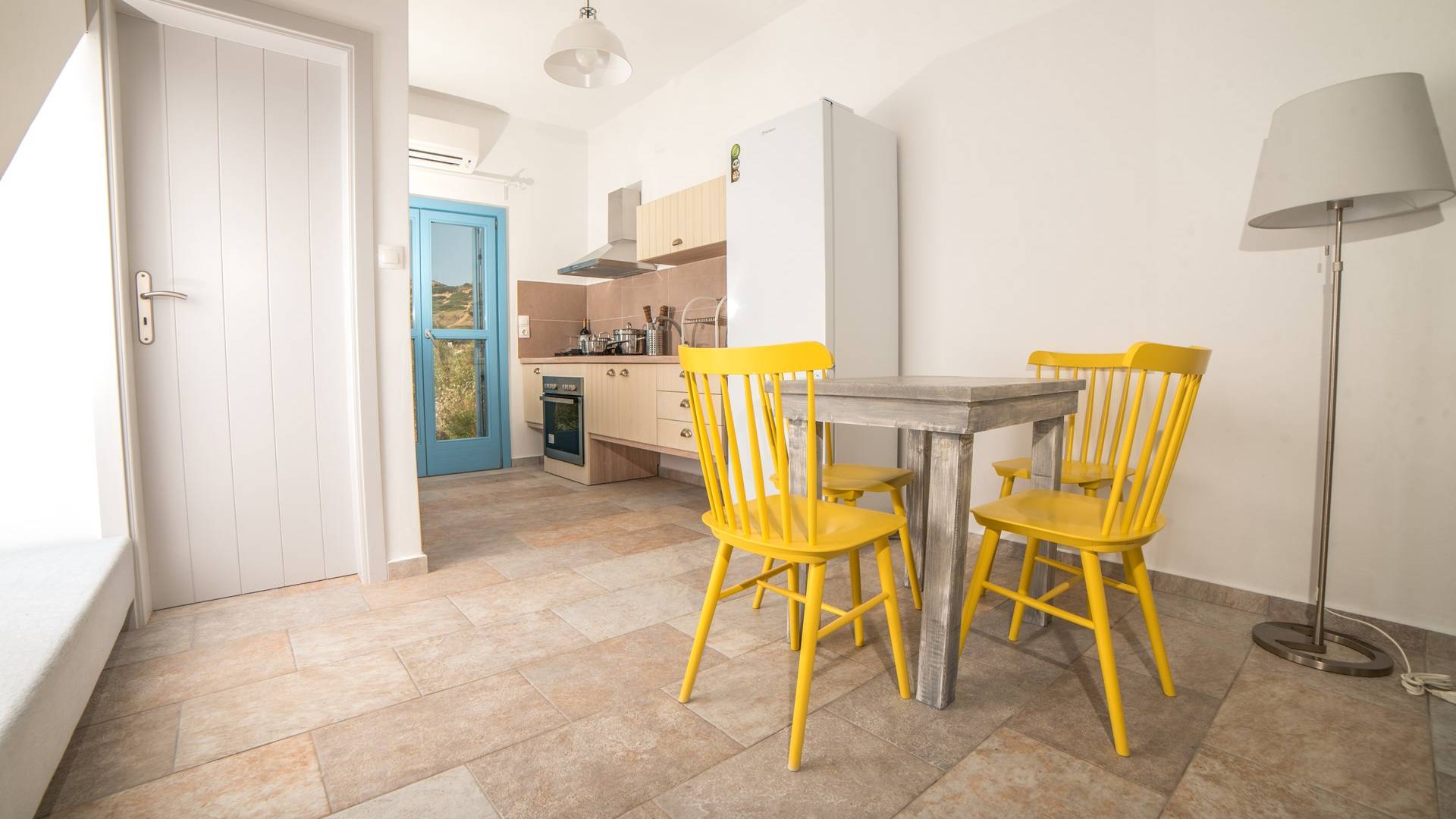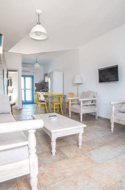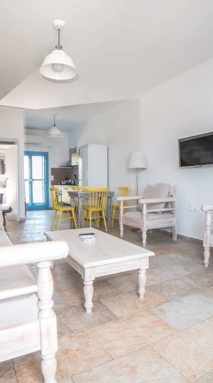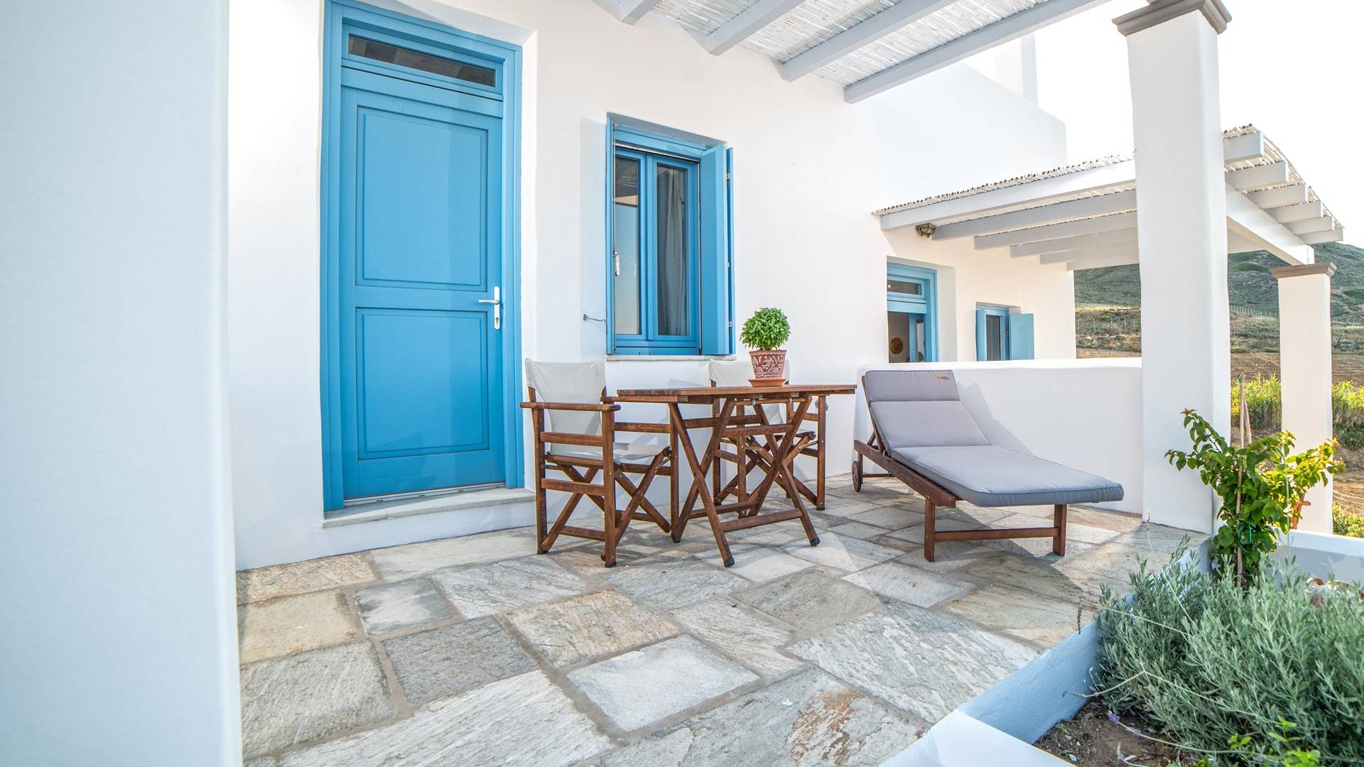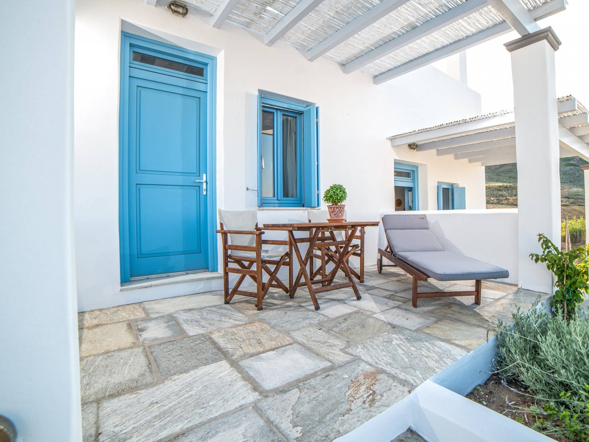 Almyra Superior House Skyros ist eine Wohnung, die aus 45 m2 besteht und zwei Räume hat, ein Wohnzimmer mit einem Badezimmer im Erdgeschoss und ein Schlafzimmer mit einem weiteren Badezimmer im ersten Stock, das über eine Innentreppe erreichbar ist . Das Zimmer hat auch eine Terrasse und einen Garten sowohl auf der Vorder- als auch auf der Rückseite, wo Sie Ihren Kaffee, Ihr Frühstück, Ihr Abendessen oder Ihren Abenddrink genießen können.
