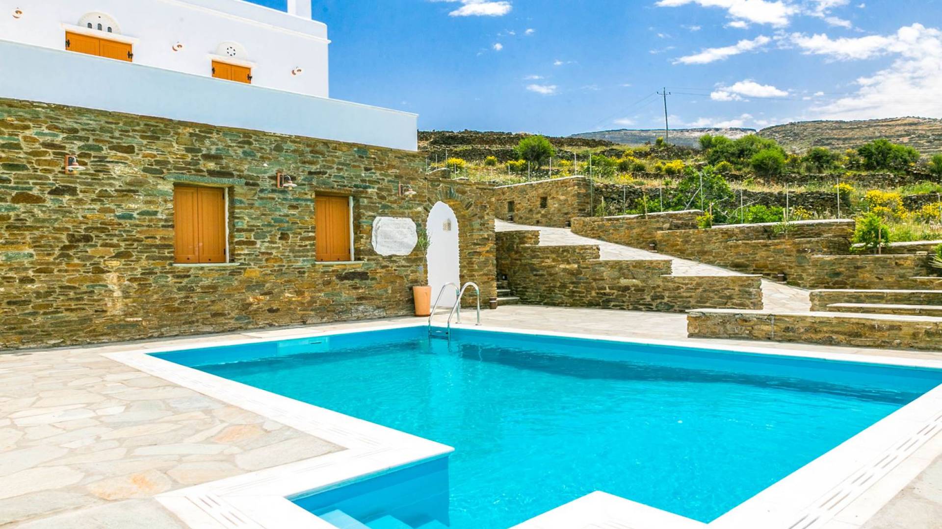 Imarkellis Boutique Villa Tinos ist eine Luxusimmobilie mit 6 Schlafzimmern und einem privaten Pool. Das Herz der Kykladen schlägt auf der Insel Tinos. Leichte Kleidung, lockeres Haar unter der mediterranen Sonne… Die Salzigkeit des Meeres auf den Lippen und der Wind, der das Gesicht berührt, reinigte die tiefsten Gedanken.
