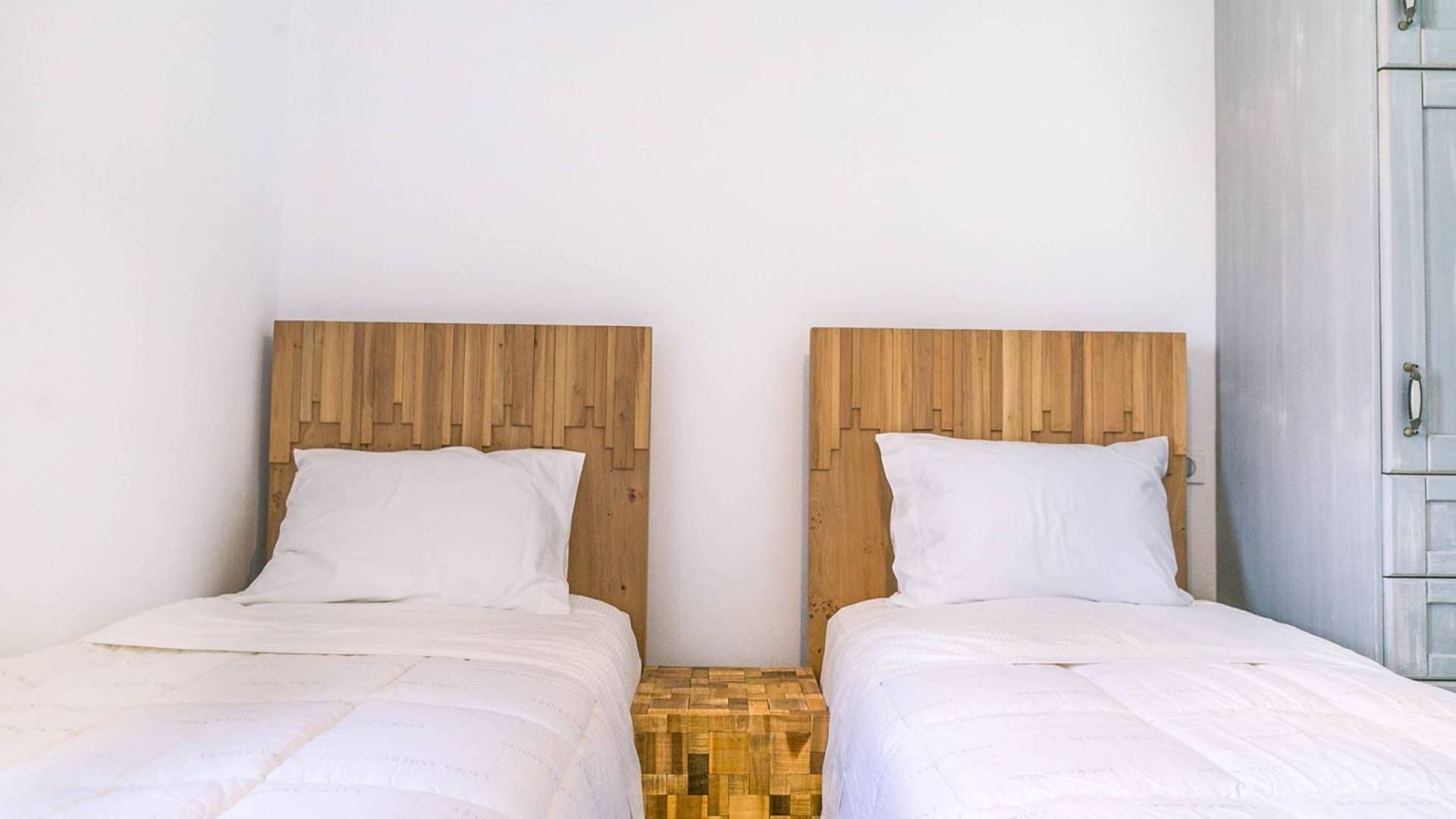 Die Villa besteht aus zwei angebauten Häusern und einem Gästehaus, die je nach Bedarf des Gastes genutzt werden können. Beim Betreten der Haupthäuser werden die Gäste in einem geräumigen Wohnzimmer mit bequemen Sofas und einem großen Fernseher willkommen geheißen, und gleich daneben befindet sich eine voll ausgestattete Küche mit offenem Schnitt. Auf dieser Ebene befindet sich auch ein Gäste-WC. Auf der unteren Ebene weisen die Häuser einige Unterschiede auf. Im ersten Haus finden Sie ein Zimmer mit Doppelbett und ein Schlafzimmer mit zwei Einzelbetten. Beide haben ein eigenes Badezimmer mit Dusche.