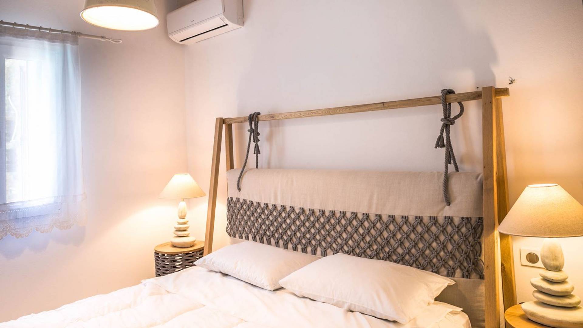 Im zweiten Haus findet man zwei Schlafzimmer mit Doppelbetten und ein drittes Schlafzimmer mit zwei Einzelbetten. Auf dieser Ebene befindet sich auch ein Familienbadezimmer mit Dusche. Alle Bereiche sind mit Klimaanlage ausgestattet. Es gibt auch ein Gästehaus mit einem Kingsize-Bett, einem eigenen Badezimmer, einer gut ausgestatteten Küchenzeile, einem Fernseher und einer Klimaanlage. Insgesamt bietet das Anwesen bequem Platz für 12 Gäste.