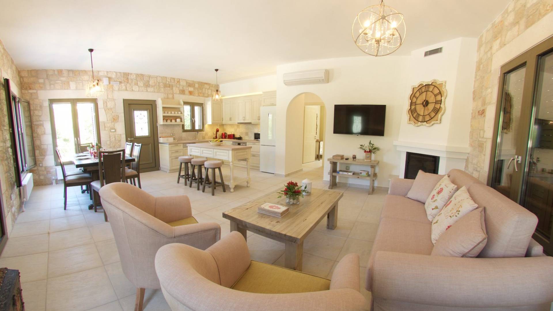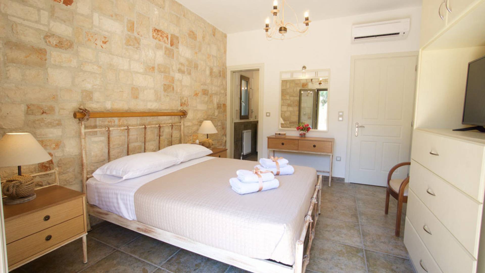 Im traditionellen lokalen Steinstil erbaut, eingebettet in den Wald. Forest Villas Kefalonia verfügt über zwei Schlafzimmer; Das Hauptschlafzimmer verfügt über ein en-suite zweites Schlafzimmer mit zwei Einzelbetten, die sich in ein Queensize-Bett verwandeln lassen. Im Wohnzimmer finden Sie eine große Couch, die in ein Queensize-Bett umgewandelt werden kann. Die Villen sind mit modernen Möbeln im Landhausstil eingerichtet. Der große Wohn- und Essbereich ist ideal zum Kochen, Ausruhen und Familienzeit. Gehen Sie im Sommer auf die Terrasse und genießen Sie ein Bad oder eine Liege auf einer Sonnenliege, um Entspannung vom Feinsten zu erleben, oder bleiben Sie in einer kalten Winternacht drinnen und kuscheln Sie sich an den Kamin und genießen Sie die friedliche Umgebung.