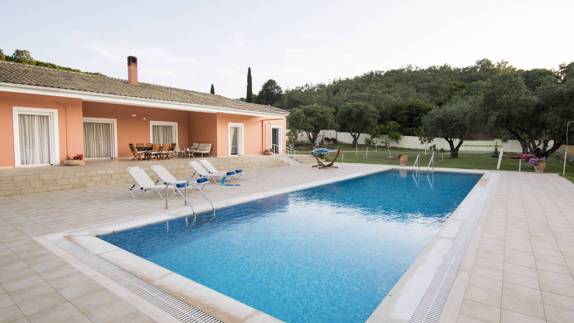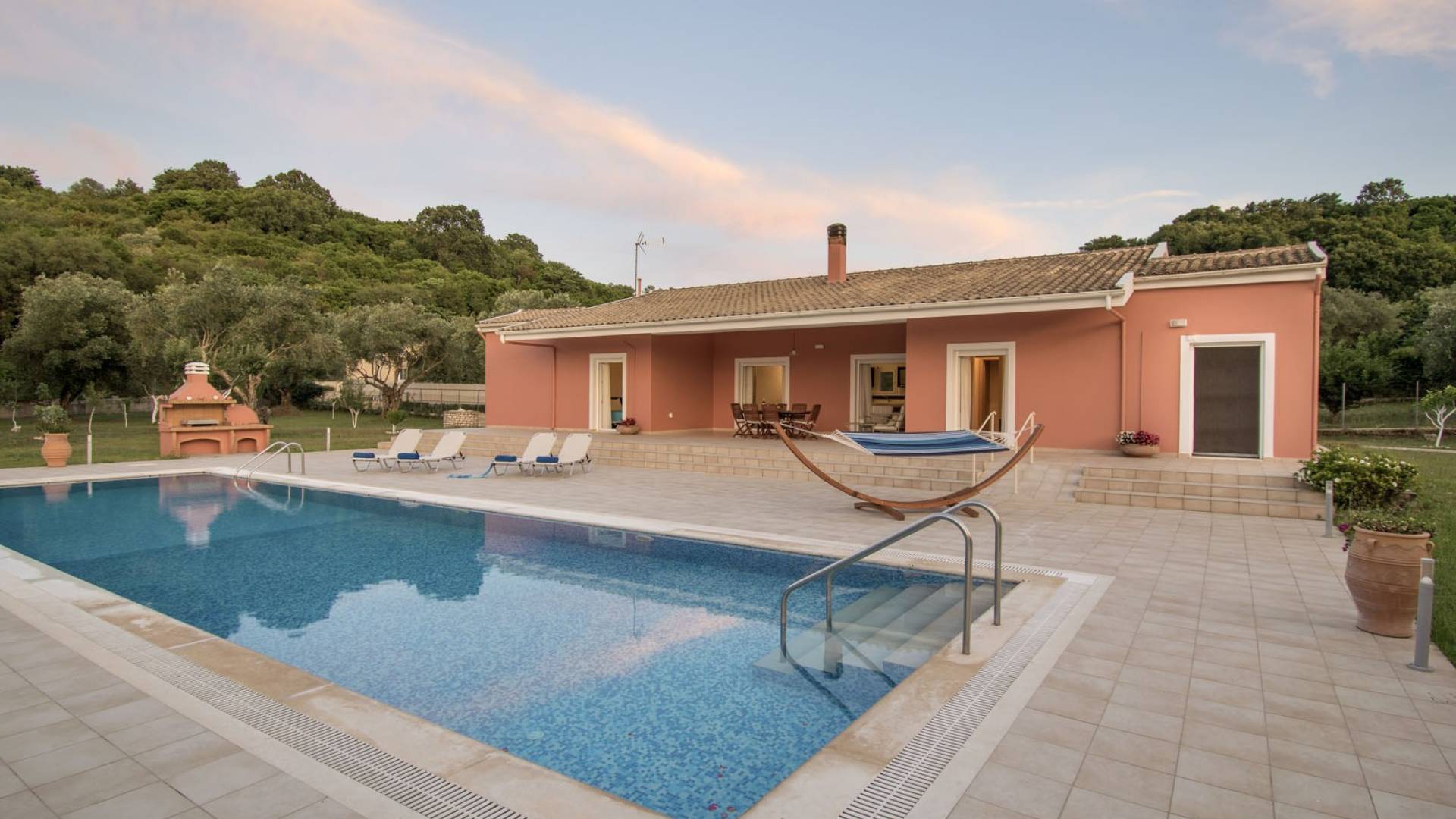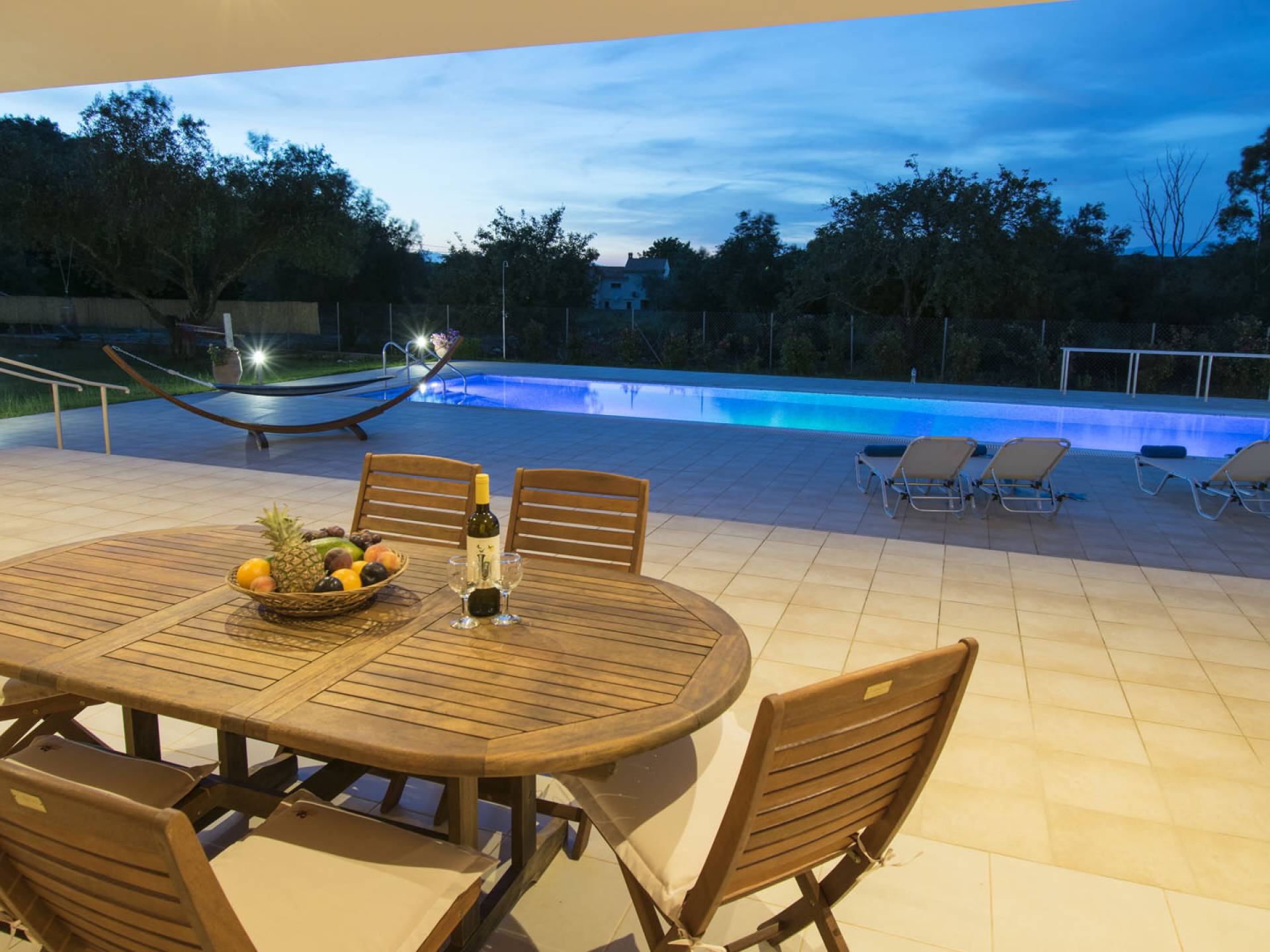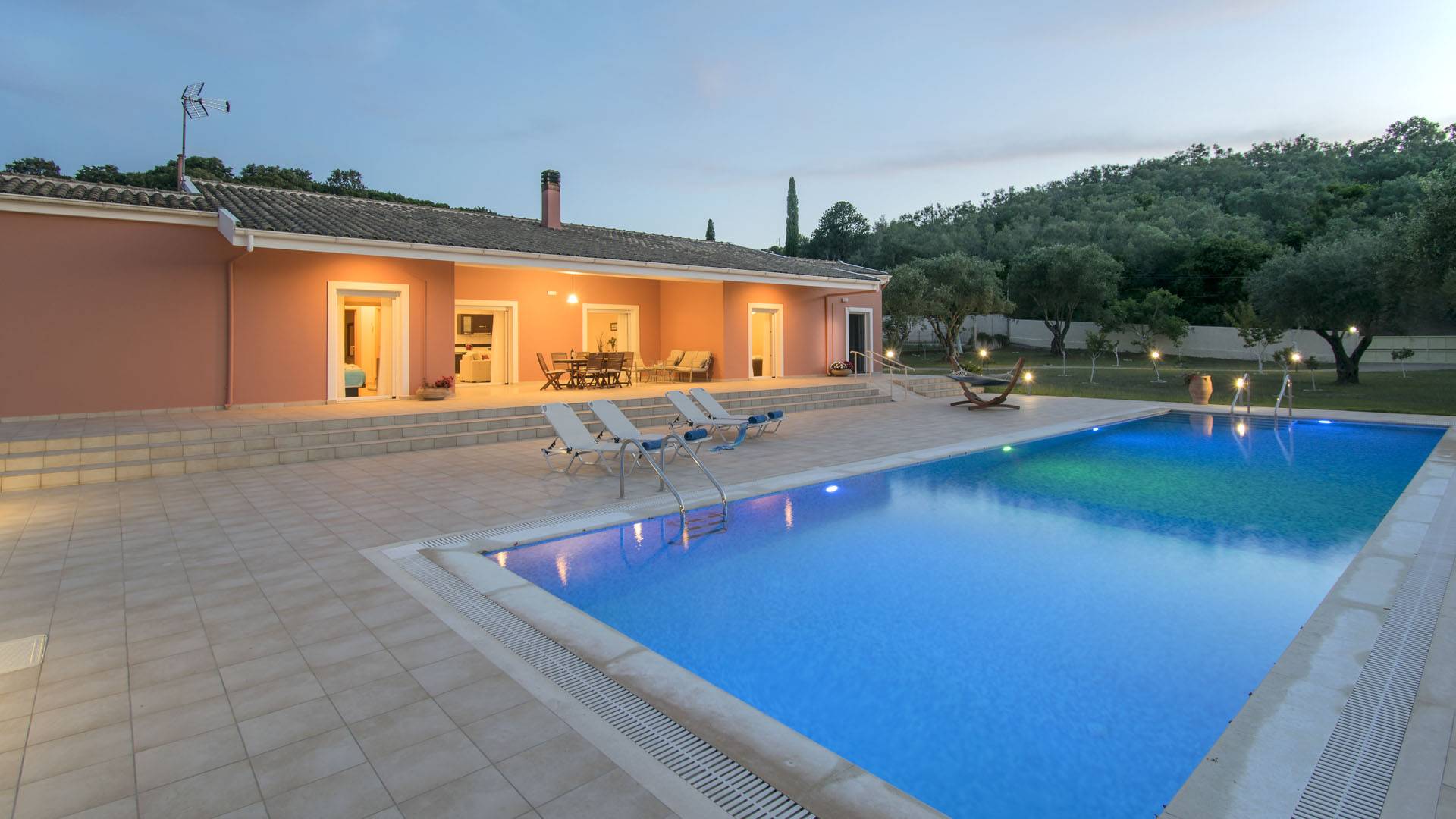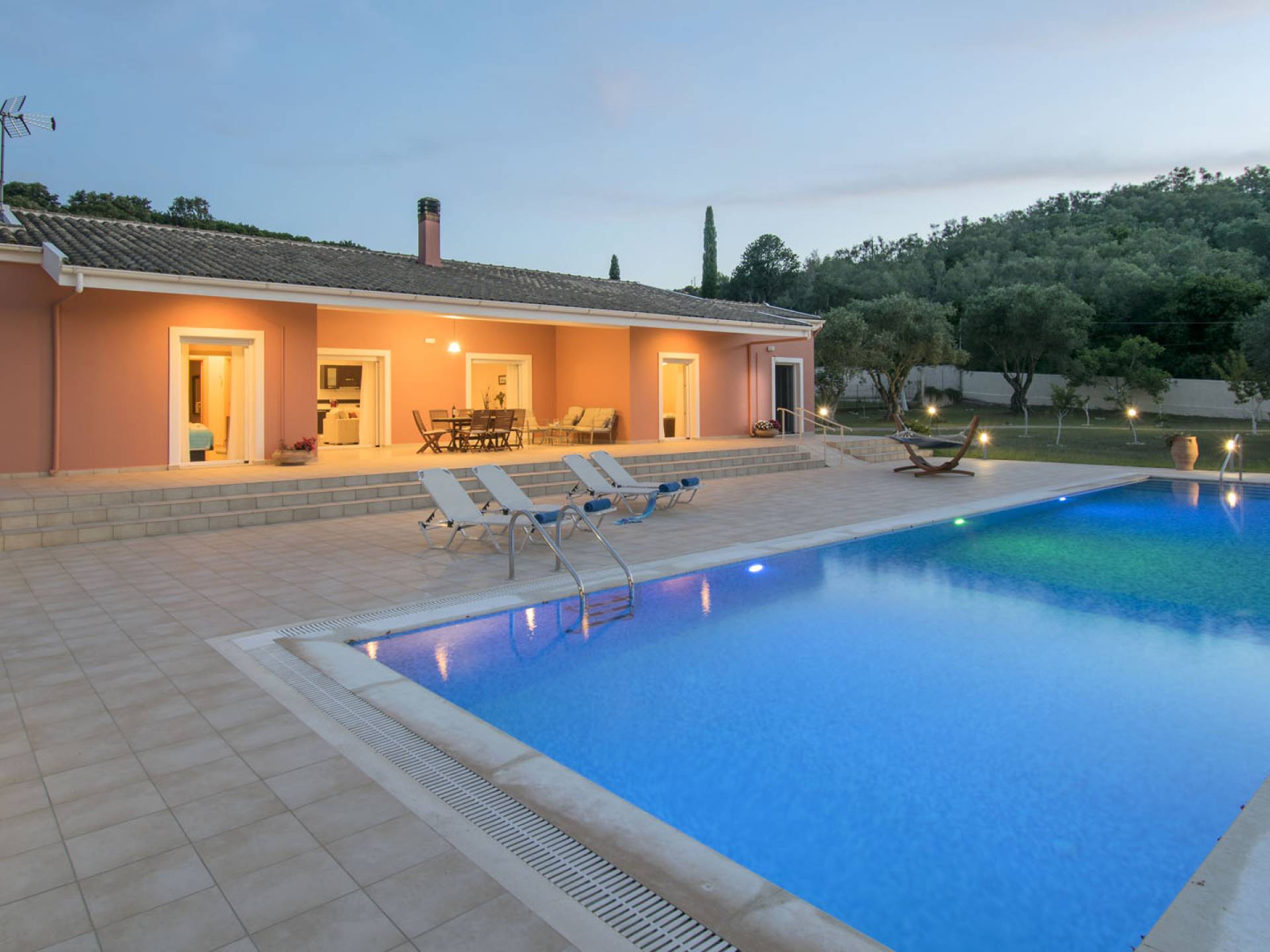 Der Außenbereich besteht aus einem großen Garten (4000 m2), einer Vielzahl von Bäumen (Oliven-, Feigen-, Orangen-, Zitronen-, Lotus- und mehr), einem Grill und einem privaten Swimmingpool. Nur 5 Minuten entfernt bietet das schöne Dorf Kassiopi eine ausgezeichnete Entschuldigung für einen Nachtspaziergang, während Acharavi und Roda nach einer 15-minütigen Fahrt einige der besten Nachtclubs der Insel bieten.