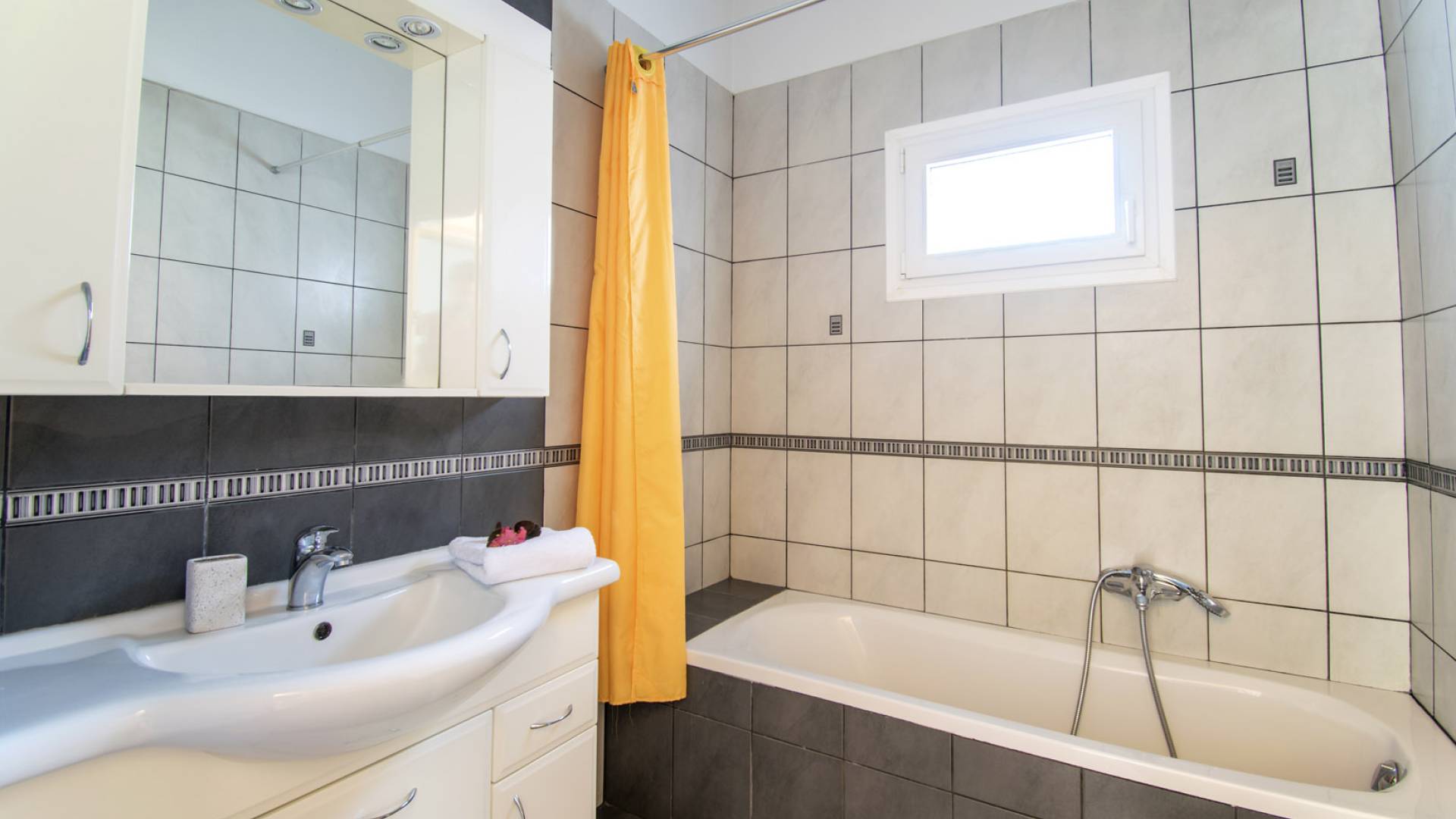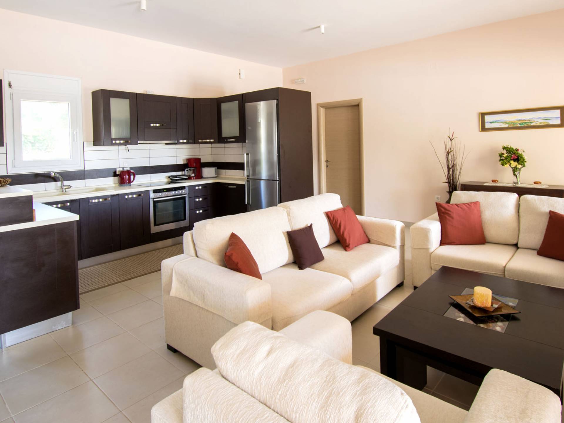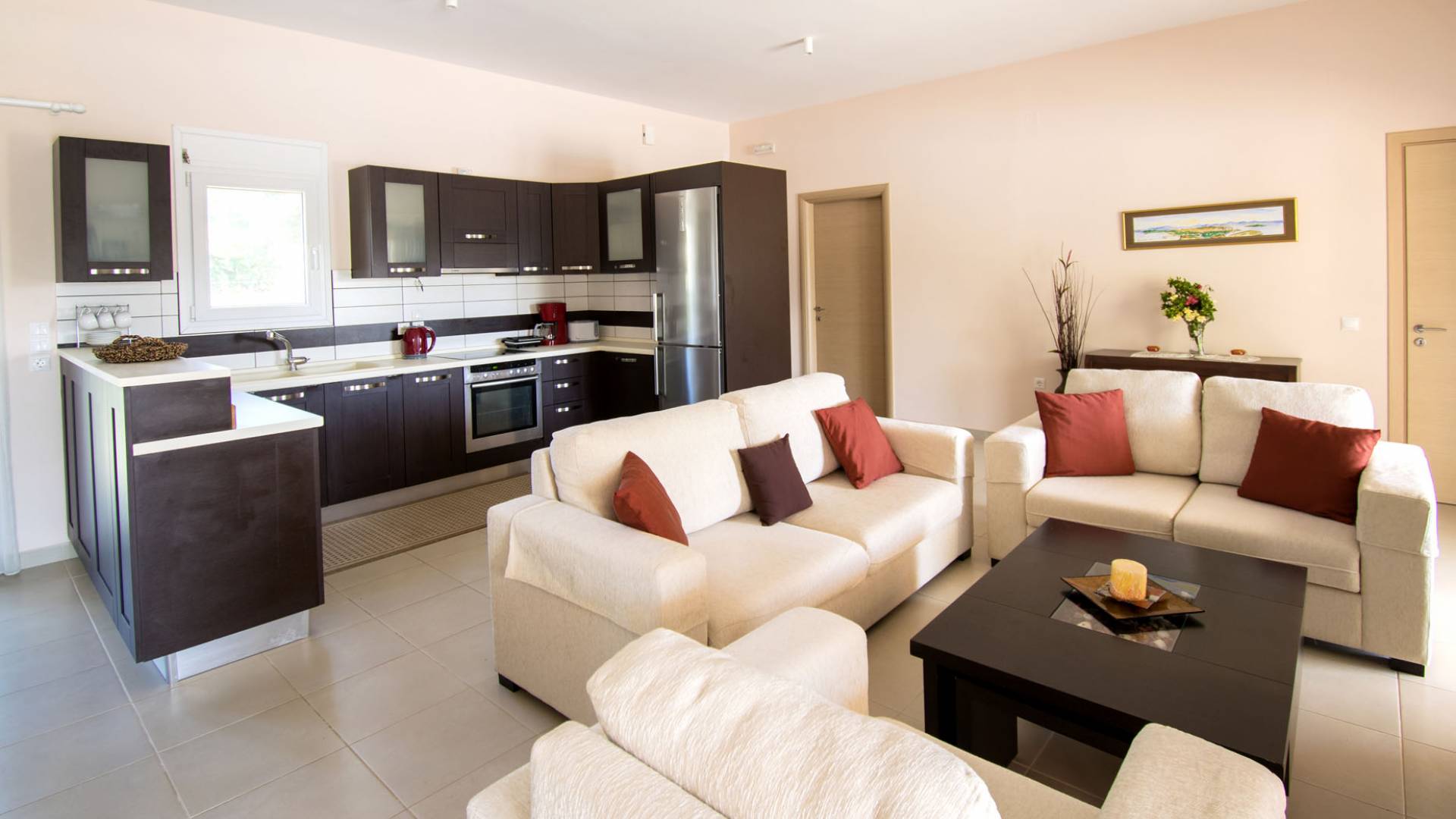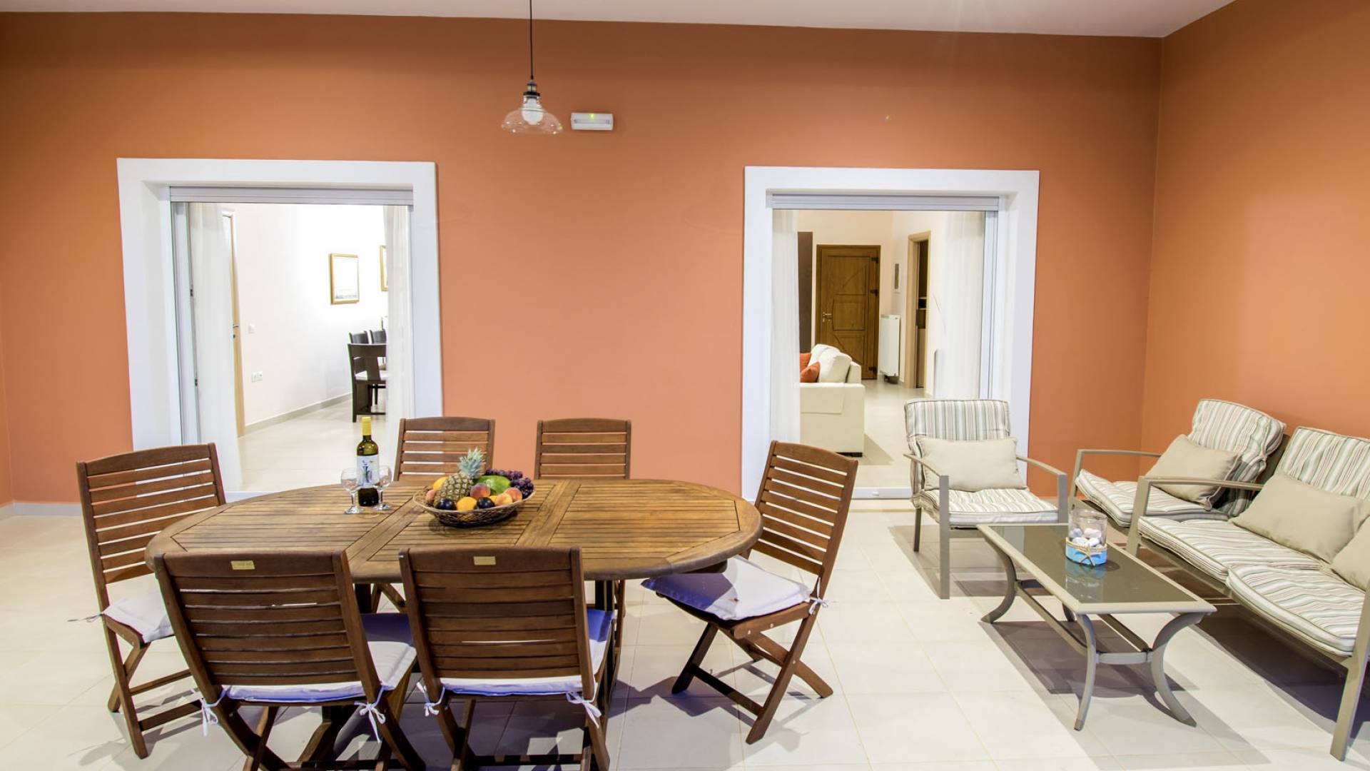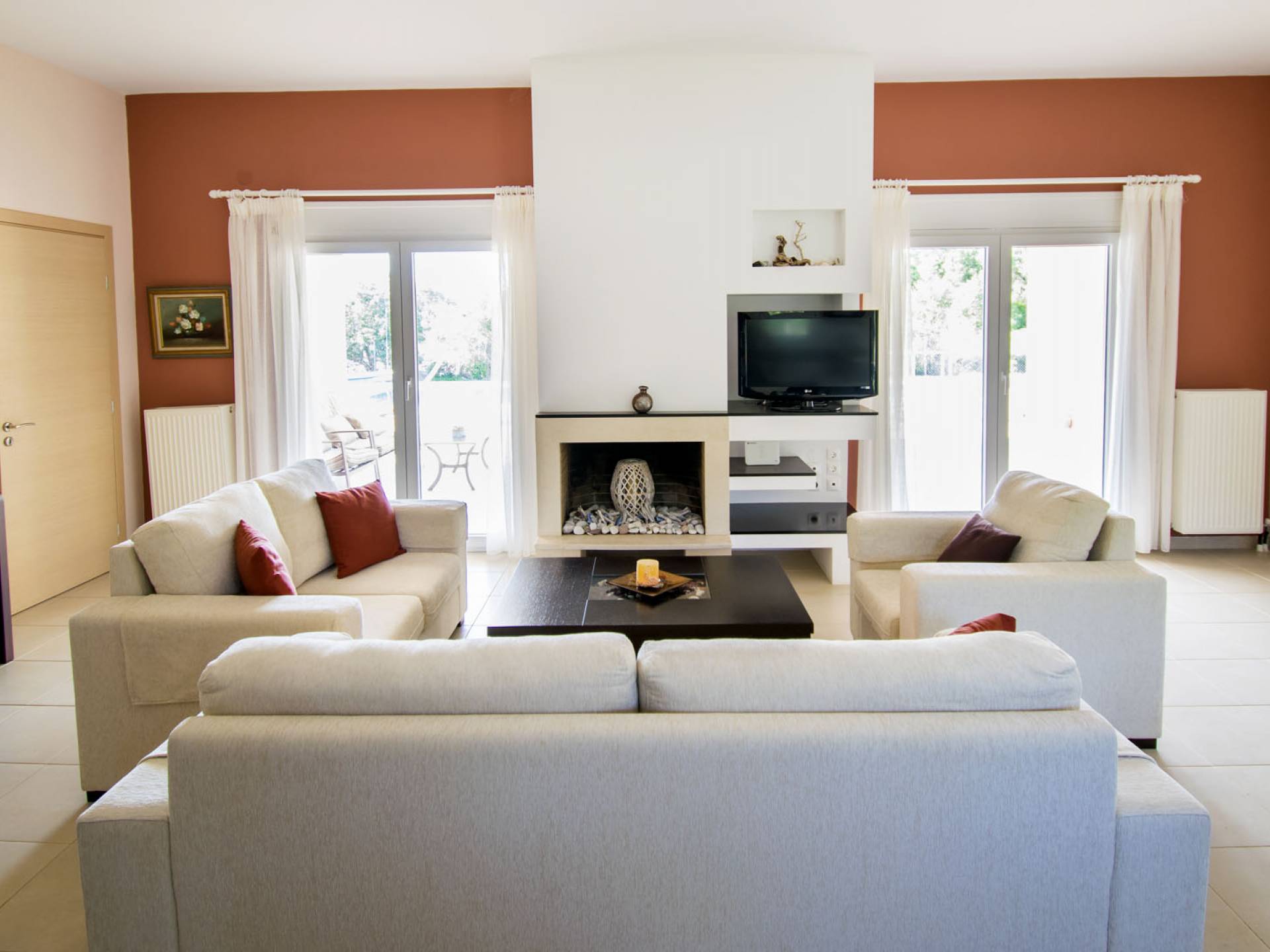 Corfu Erimitis Villa bietet Platz für bis zu 9 Gäste, in 2 Doppel-, 2 Zweibettzimmern und 1 Einzelzimmer und das Innere umfasst geräumige Bereiche, ein großes Wohnzimmer mit Kamin, Klimaanlage, 3 Badezimmer, eine voll ausgestattete Küche, Bügeleisen/-brett, Smart-TV mit DVD-Player und drahtloser Internetverbindung.