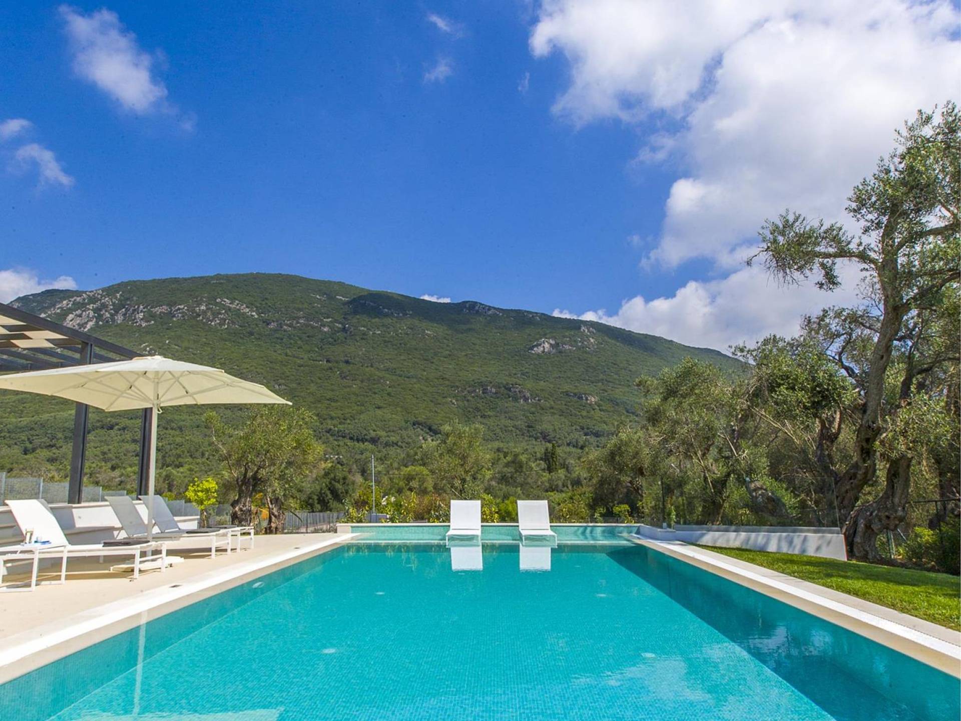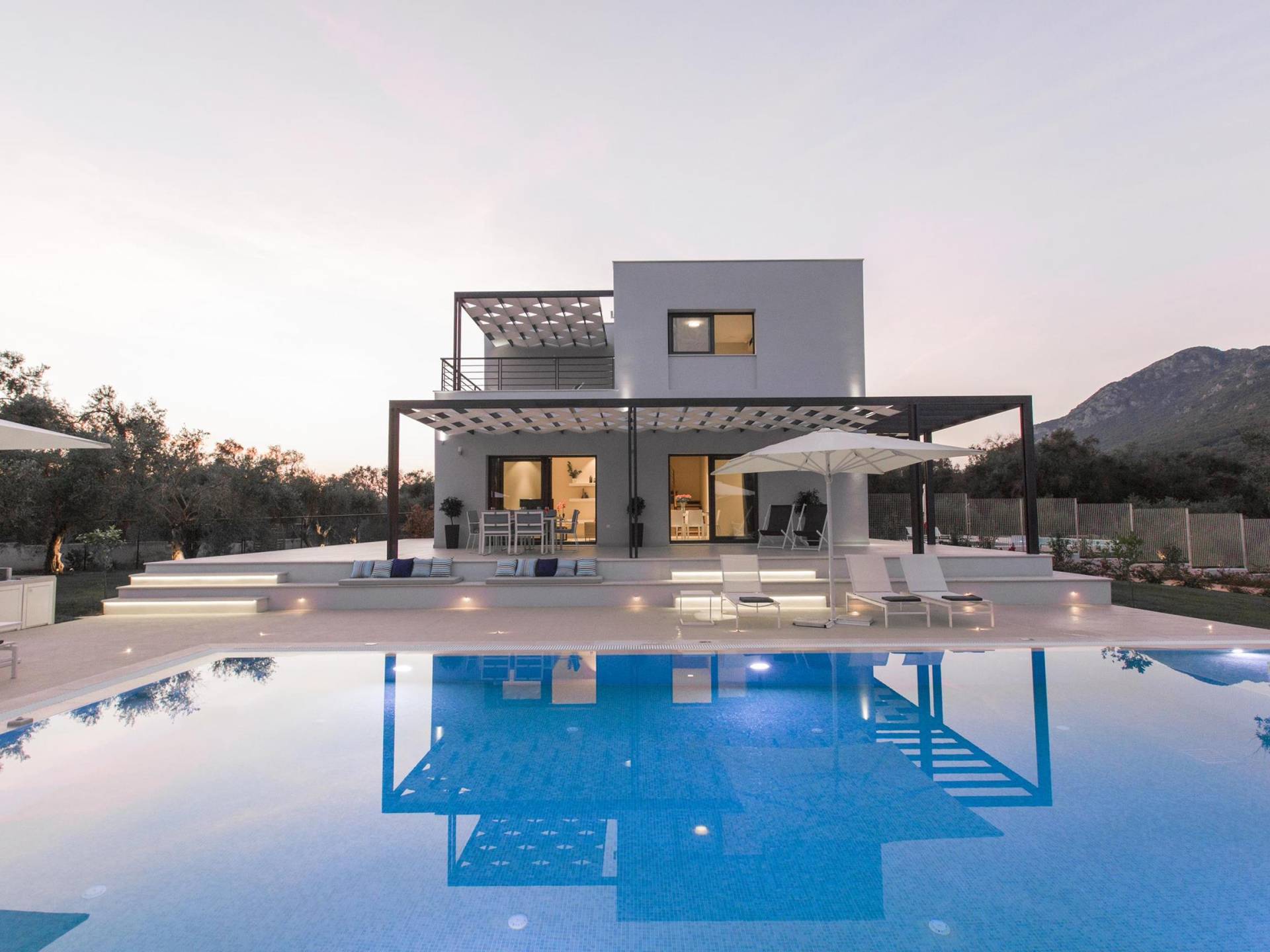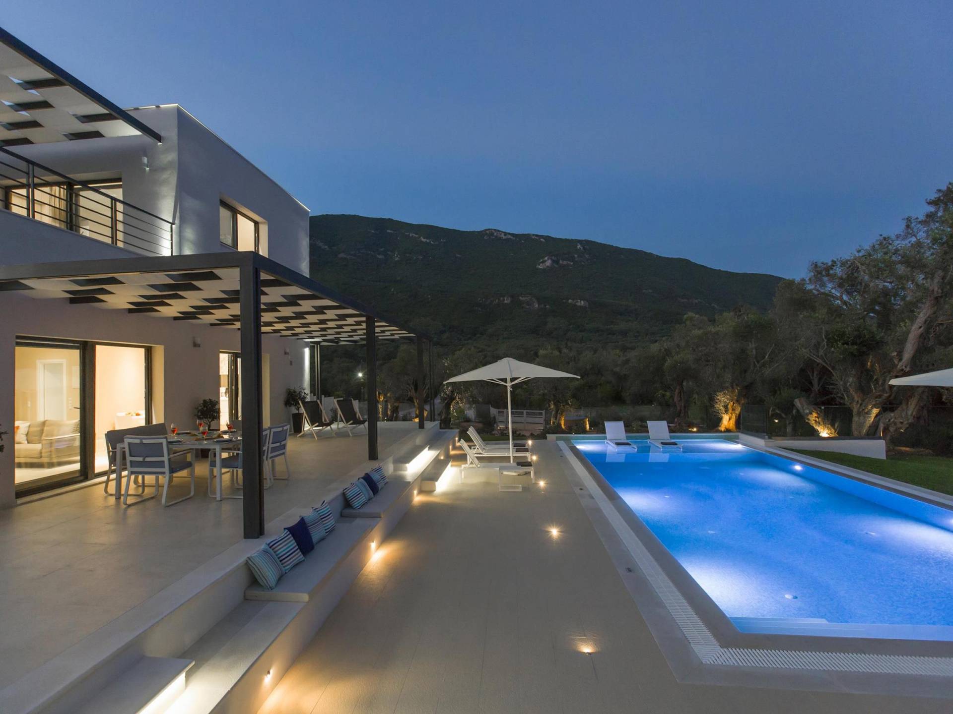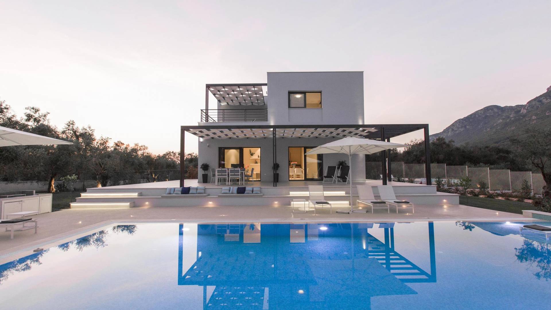 Dieses wunderschön eingerichtete Ferienhaus mit drei Schlafzimmern setzt mit klarer Architektur und moderner Einrichtung einen stilvollen Akzent. Der elegante Stil bietet ein ruhiges Ambiente für jeden Familienurlaub oder Gruppenurlaub. Das Wohnzimmer und die Küche öffnen sich zur geräumigen Veranda mit Zugang zu den Essbereichen im Freien. Von dort aus können Sie ganz einfach ein Bad in Ihrem privaten Swimmingpool nehmen, während Sie sich in einen Zen-Modus versetzen und das schöne korfiotische Klima in vollen Zügen genießen.