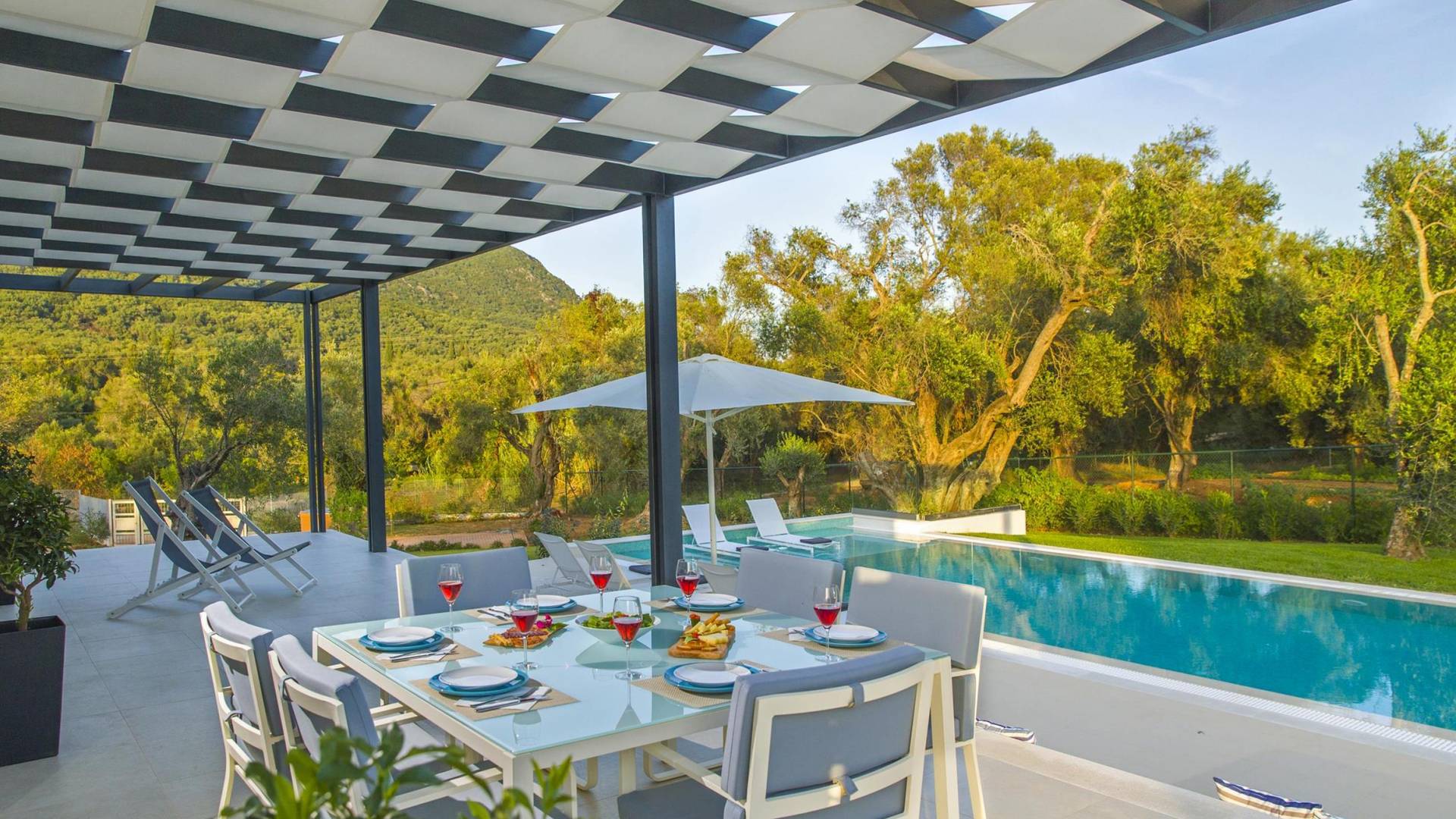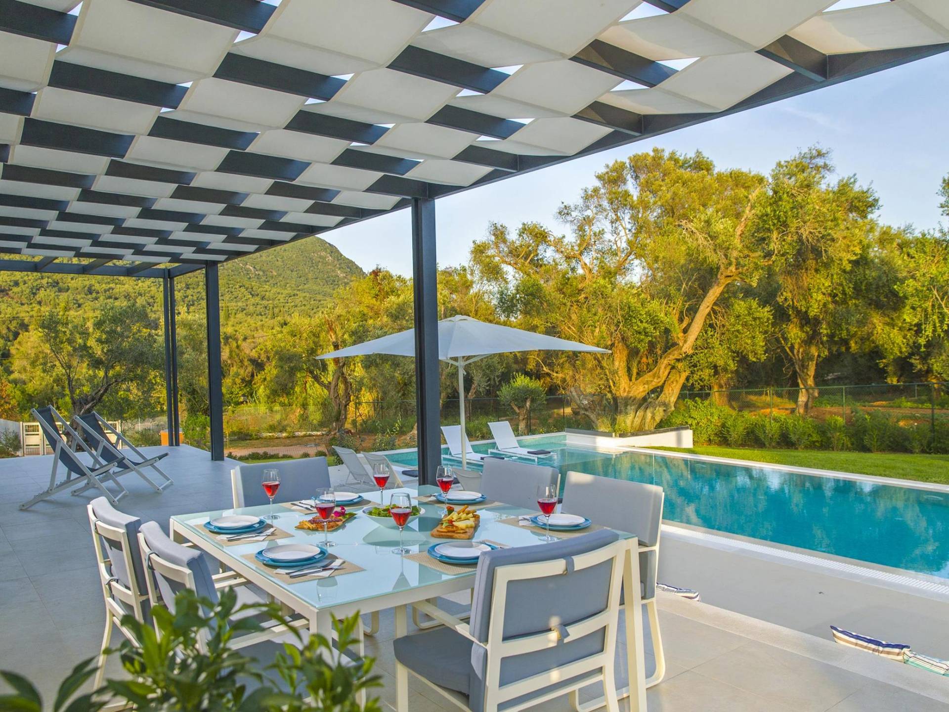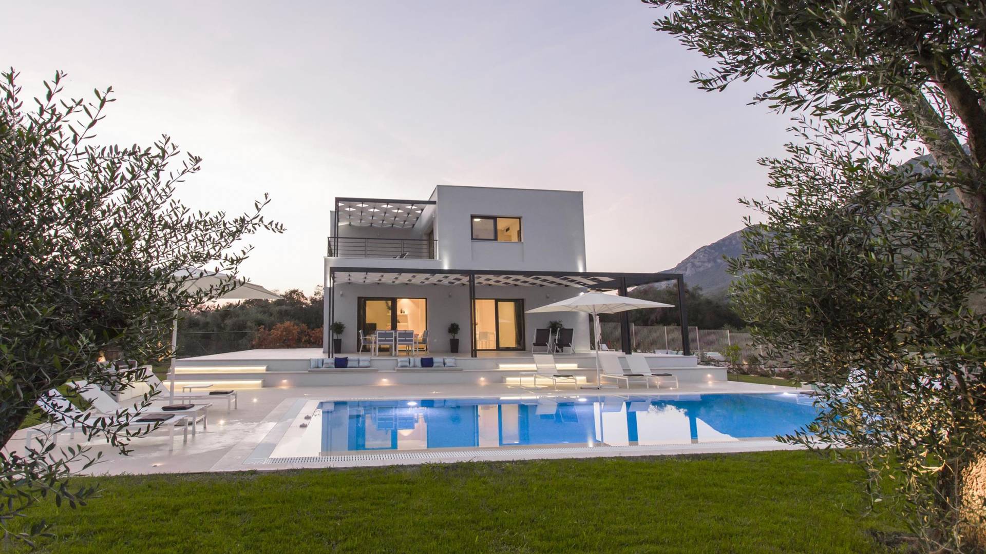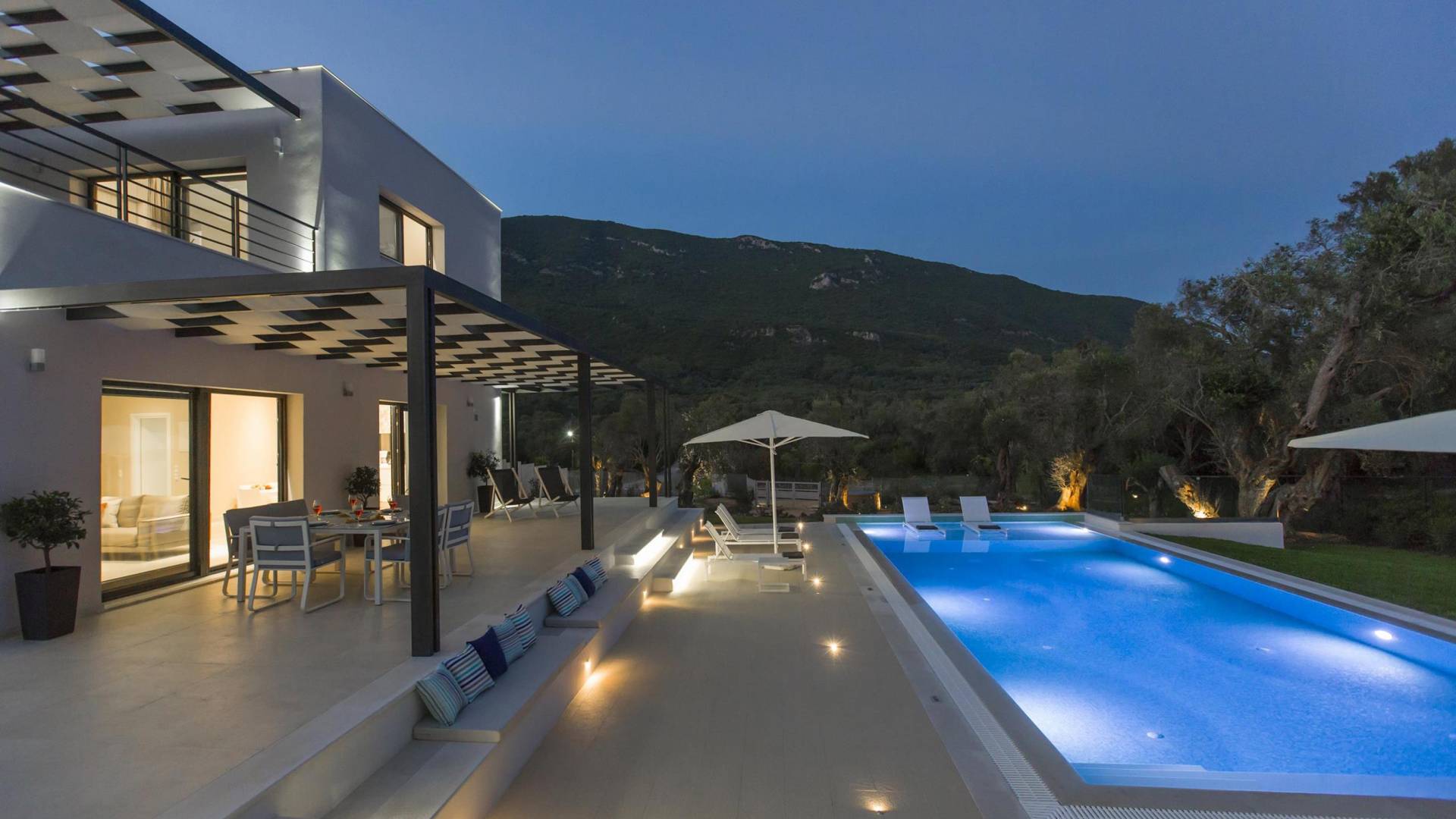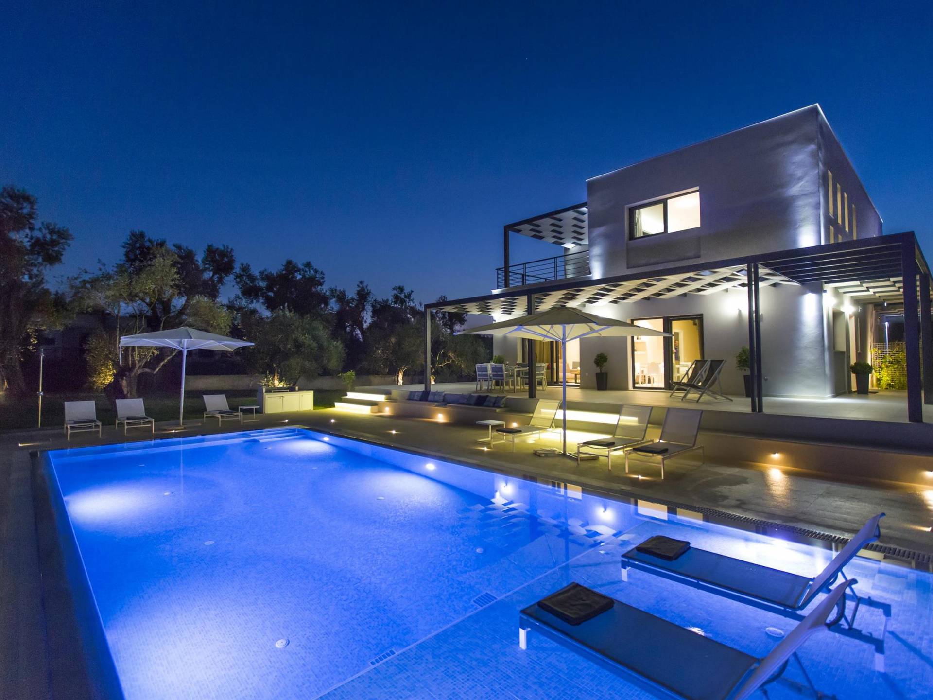 Dieses wunderschön eingerichtete Ferienhaus mit drei Schlafzimmern setzt mit klarer Architektur und moderner Einrichtung einen stilvollen Akzent. Der elegante Stil bietet ein ruhiges Ambiente für jeden Familienurlaub oder Gruppenurlaub. Das Wohnzimmer und die Küche öffnen sich zur geräumigen Veranda mit Zugang zu den Essbereichen im Freien. Von dort aus können Sie ganz einfach ein Bad in Ihrem privaten Swimmingpool nehmen, während Sie sich in einen Zen-Modus versetzen und das schöne korfiotische Klima in vollen Zügen genießen.