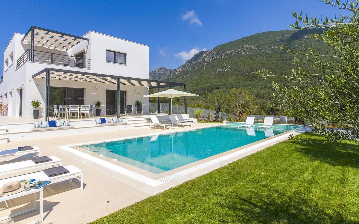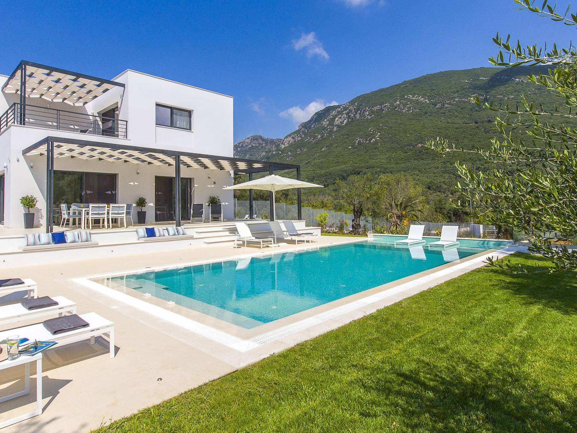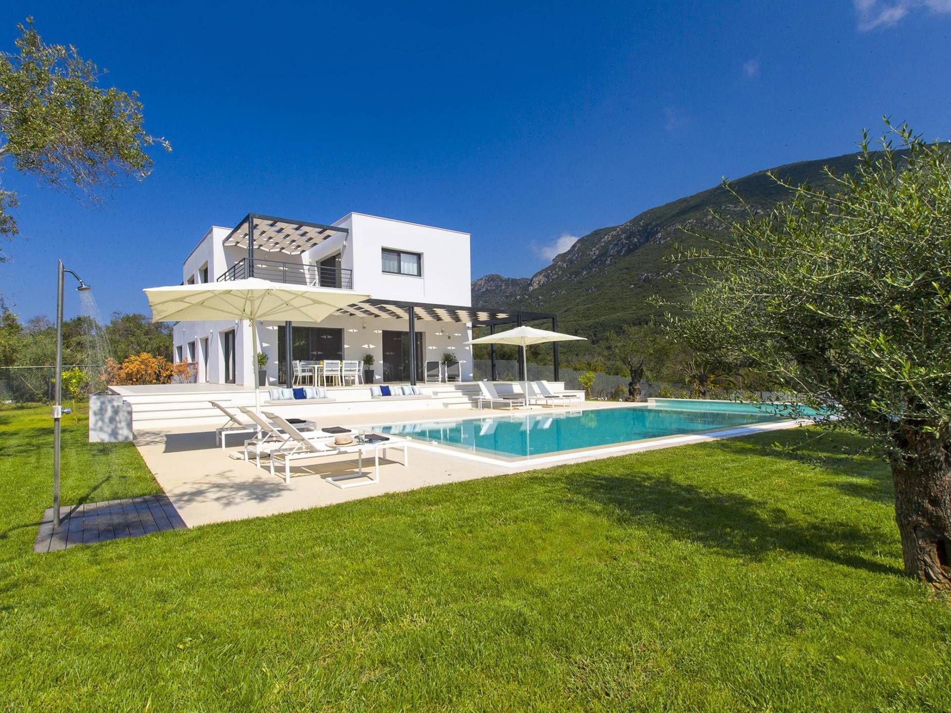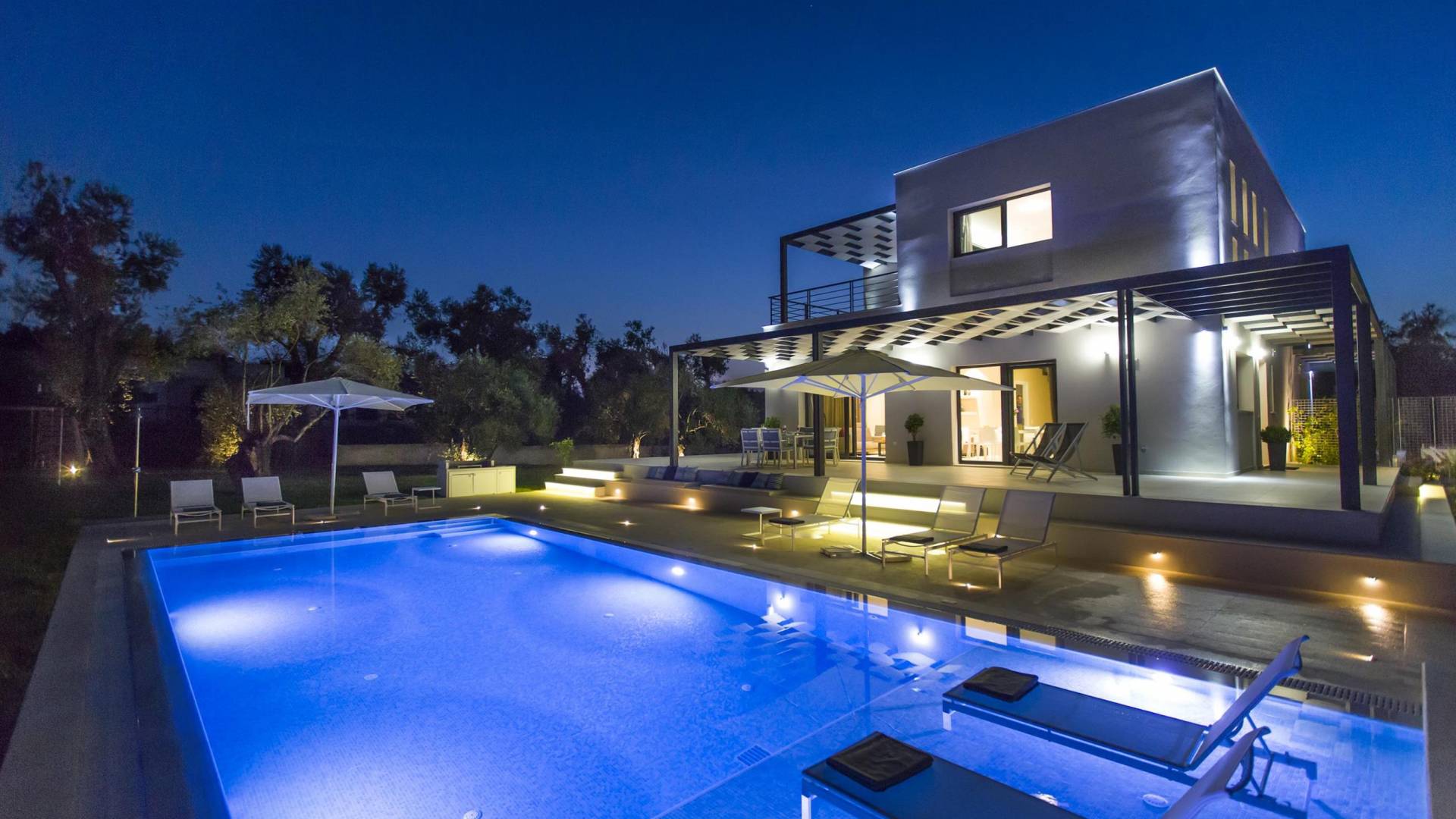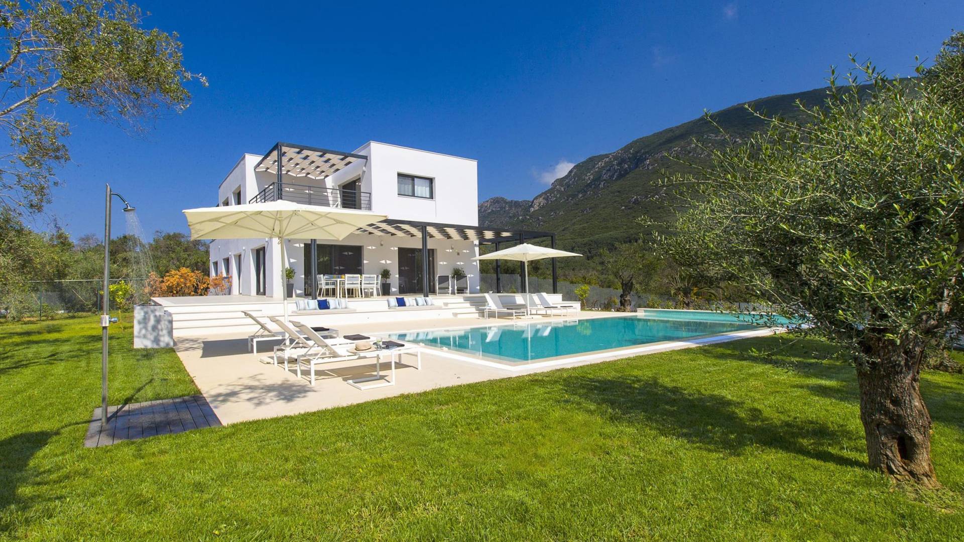 Dieses wunderschön eingerichtete Ferienhaus mit drei Schlafzimmern setzt mit klarer Architektur und moderner Einrichtung einen stilvollen Akzent. Der elegante Stil bietet ein ruhiges Ambiente für jeden Familienurlaub oder Gruppenurlaub. Das Wohnzimmer und die Küche öffnen sich zur geräumigen Veranda mit Zugang zu den Essbereichen im Freien. Von dort aus können Sie ganz einfach ein Bad in Ihrem privaten Swimmingpool nehmen, während Sie sich in einen Zen-Modus versetzen und das schöne korfiotische Klima in vollen Zügen genießen.