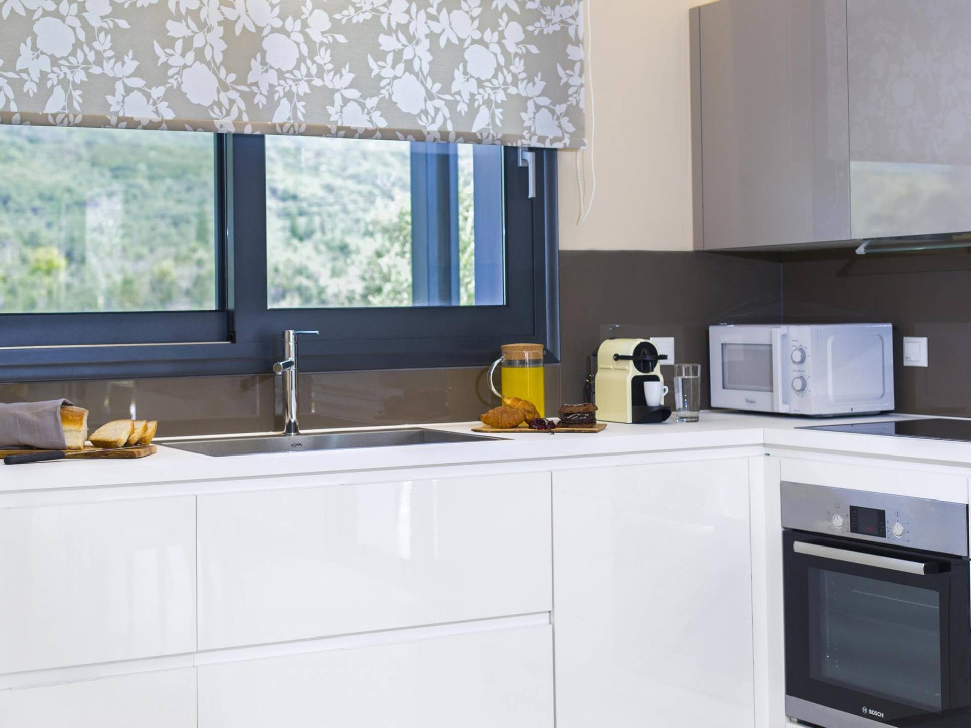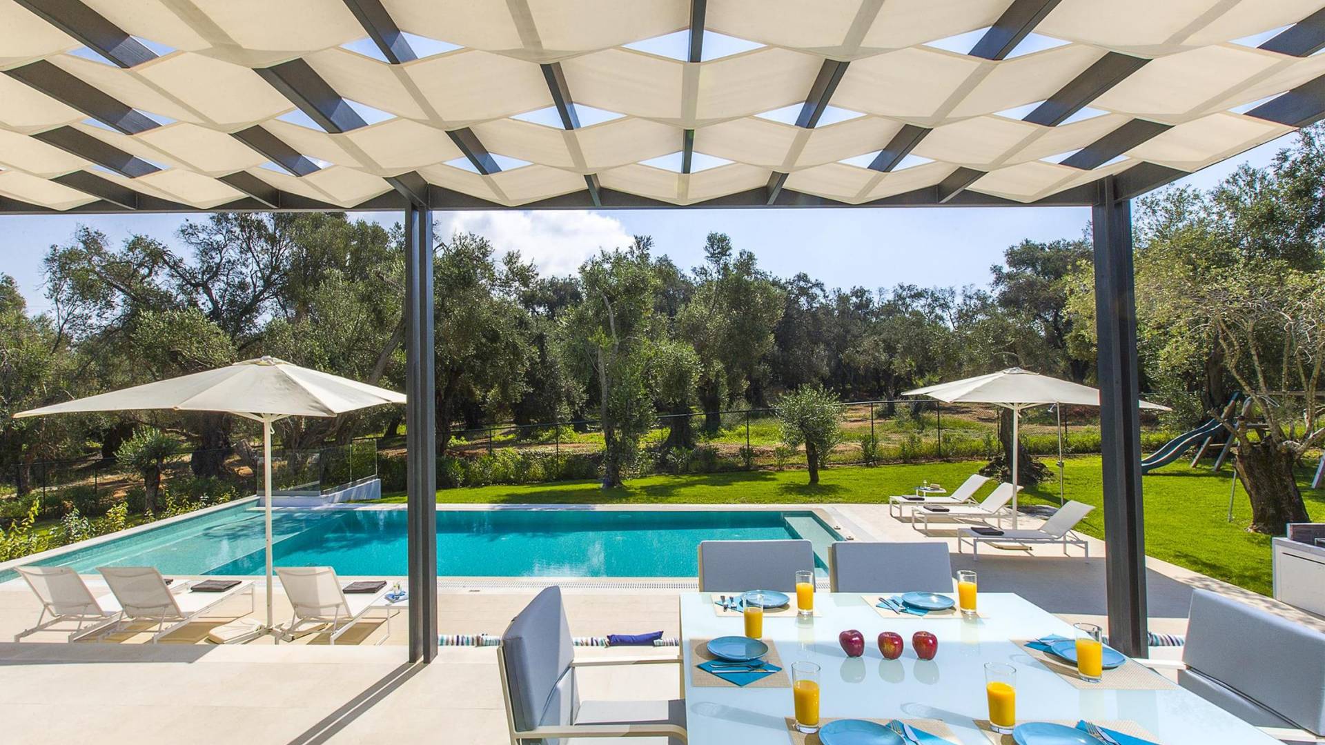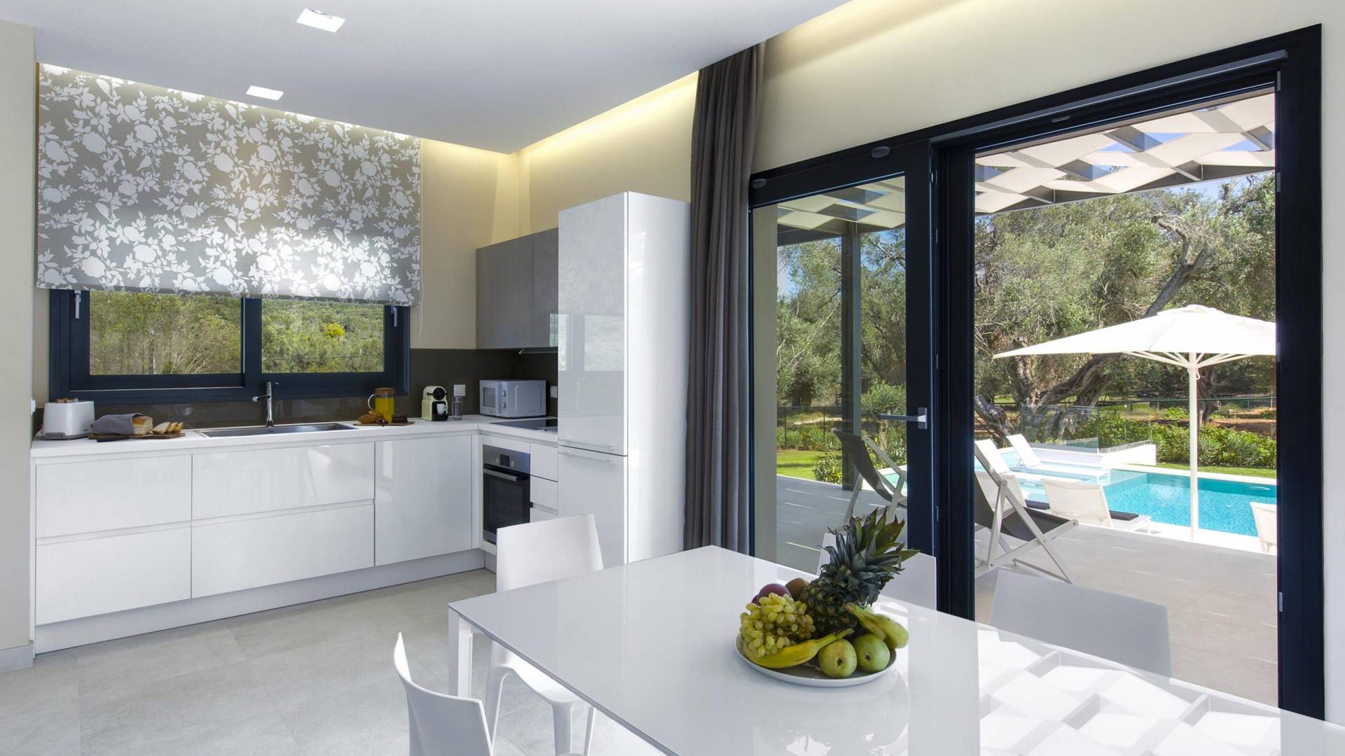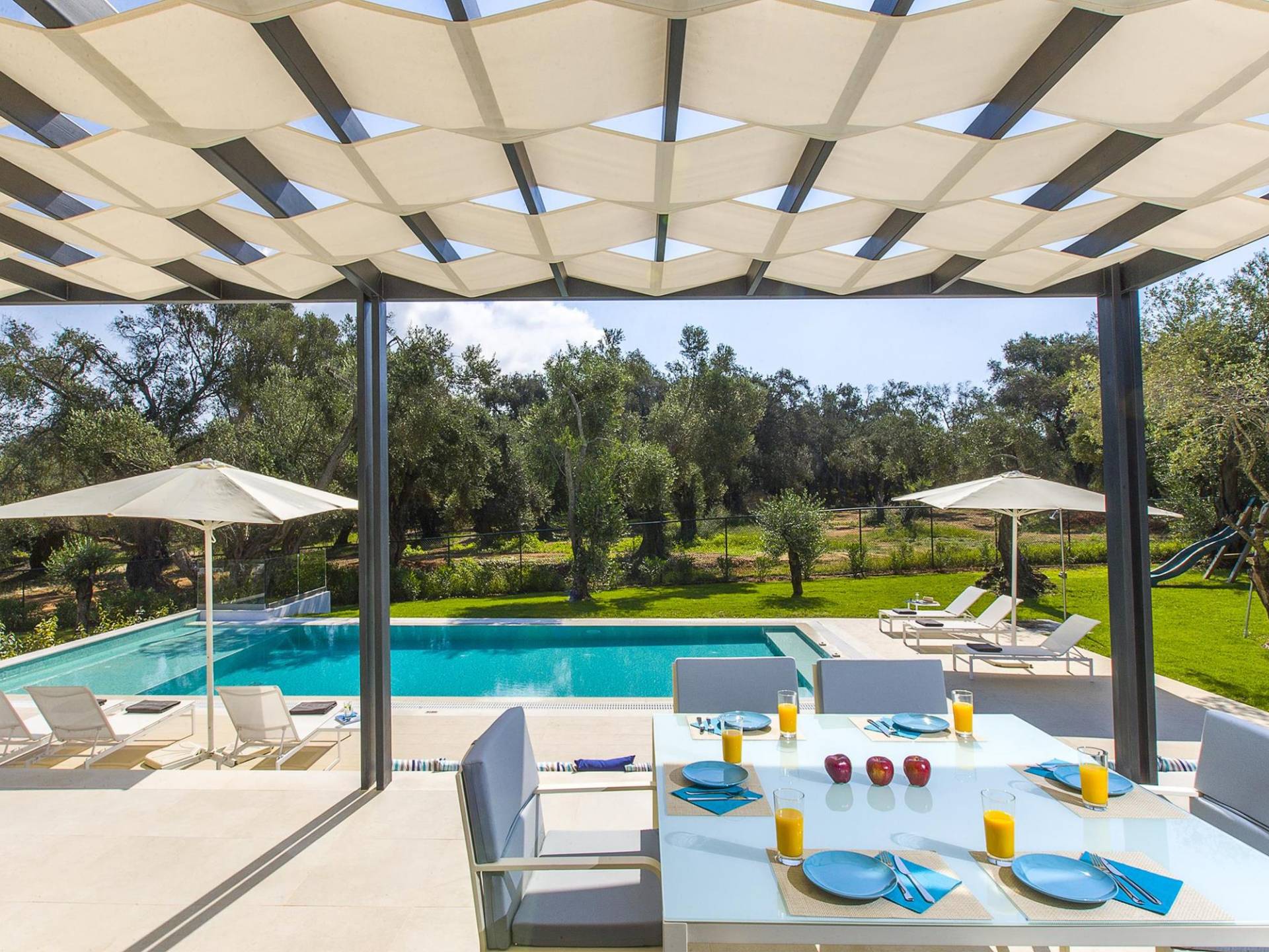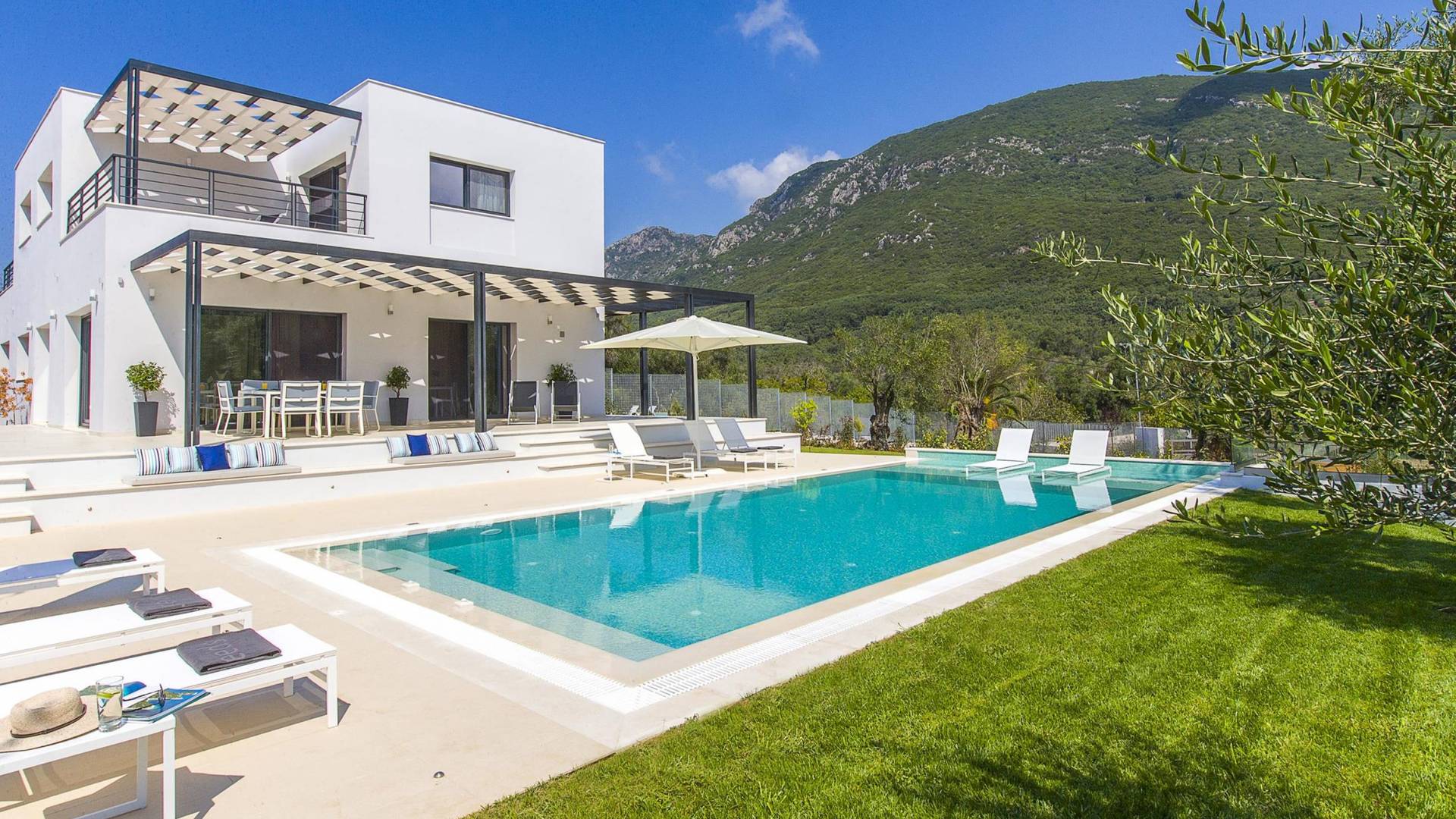 Dieses wunderschön eingerichtete Ferienhaus mit drei Schlafzimmern setzt mit klarer Architektur und moderner Einrichtung einen stilvollen Akzent. Der elegante Stil bietet ein ruhiges Ambiente für jeden Familienurlaub oder Gruppenurlaub. Das Wohnzimmer und die Küche öffnen sich zur geräumigen Veranda mit Zugang zu den Essbereichen im Freien. Von dort aus können Sie ganz einfach ein Bad in Ihrem privaten Swimmingpool nehmen, während Sie sich in einen Zen-Modus versetzen und das schöne korfiotische Klima in vollen Zügen genießen.