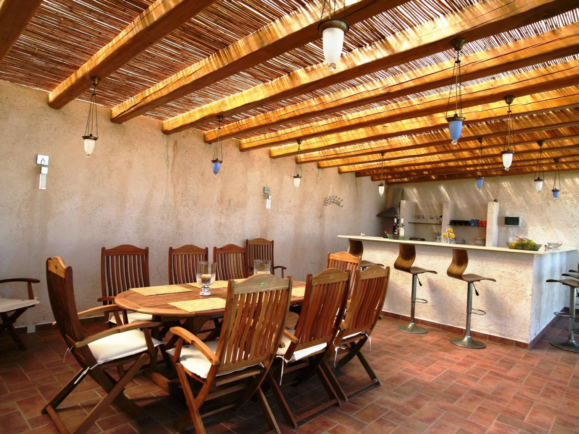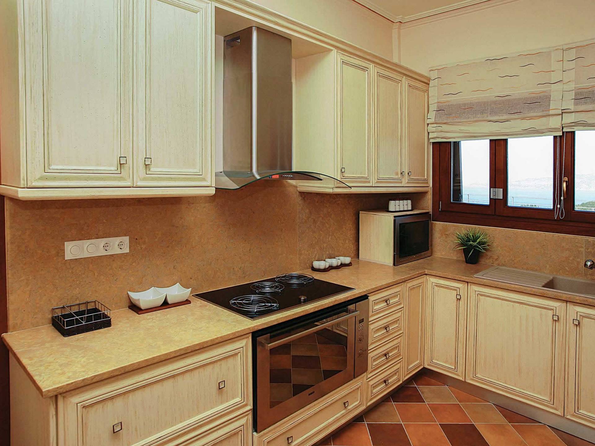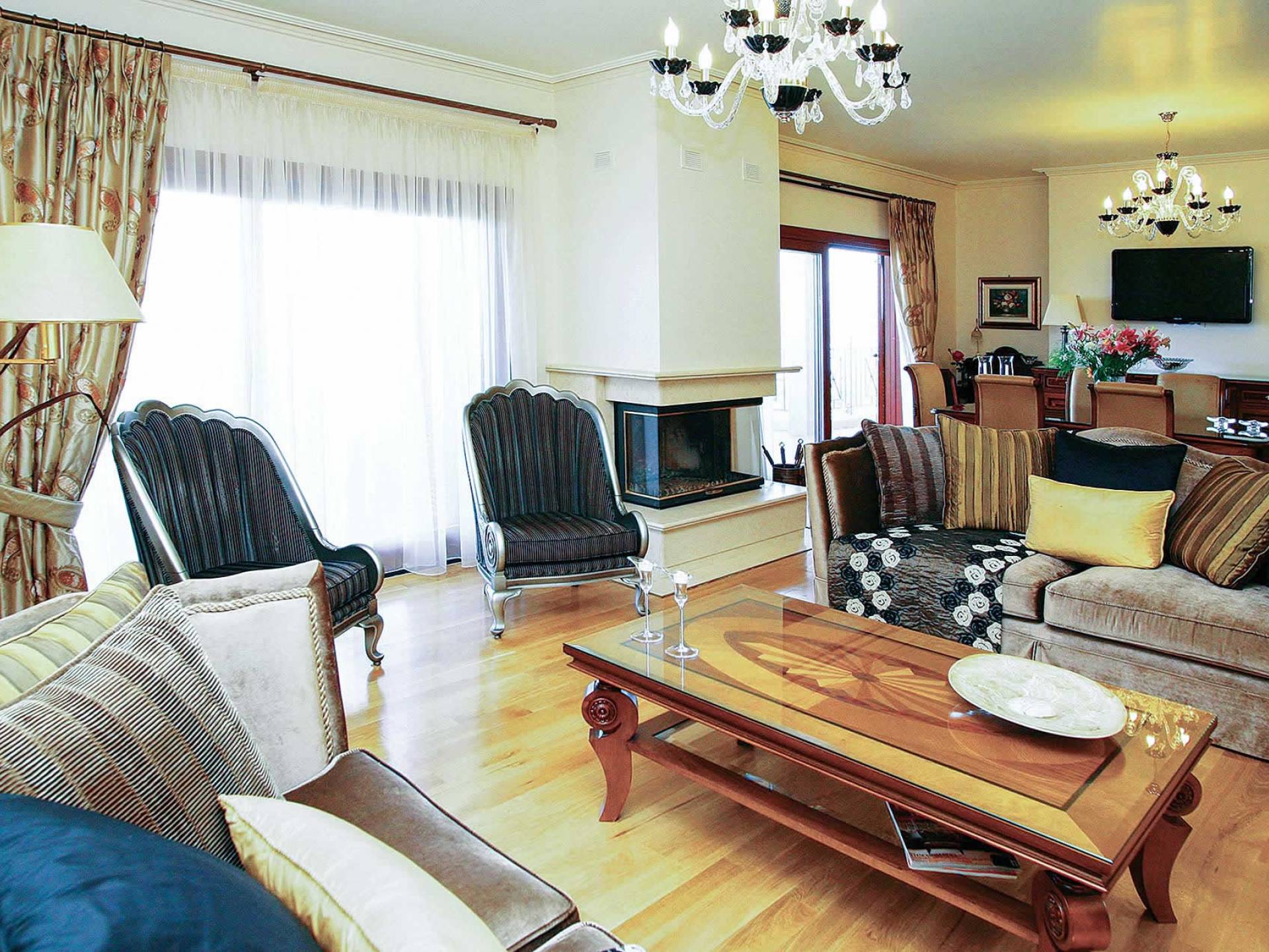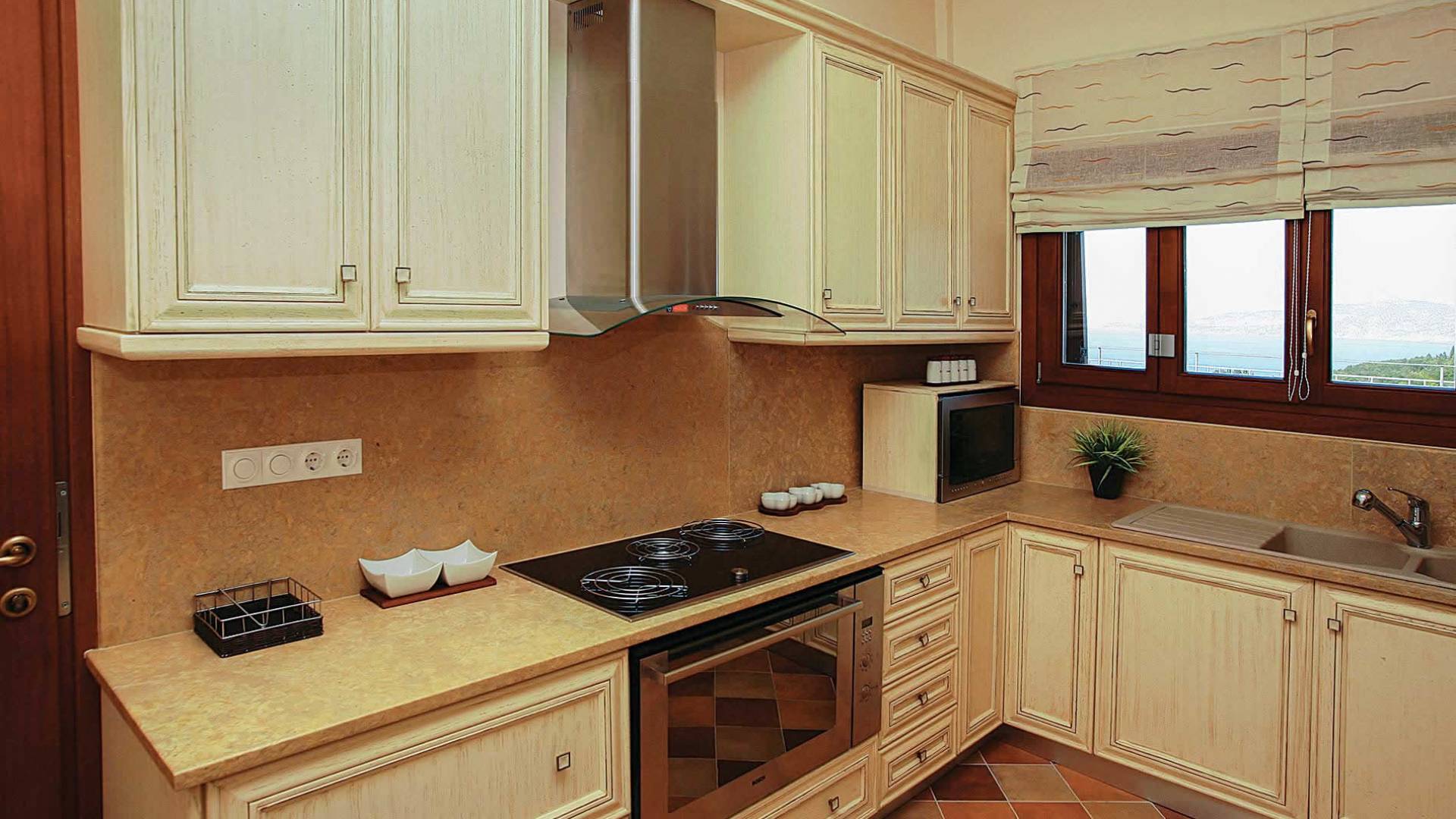 Im Erdgeschoss befindet sich ein geräumiges offenes Wohnzimmer mit Flachbild-Sat-TV, iPod-Dockingstation, Soundsystem und Kamin, eine Küche, ein Essbereich und Türen zur Terrasse mit Meerblick und über den Korfu-Kanal. Es gibt auch zwei Doppelschlafzimmer mit Terrassentüren zur Terrasse, jedes Schlafzimmer hat ein eigenes Badezimmer. Im ersten Stock gibt es einen offenen Studienbereich mit Zugang zum Aufzug, Sofa und Stühlen, Schreibtisch, Bibliothek und Kamin sowie Türen zur Terrasse. Zwei Kingsize-Doppelzimmer mit Jacuzzi und ein Zweibettzimmer.