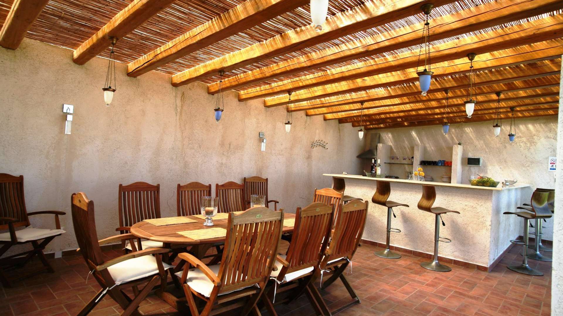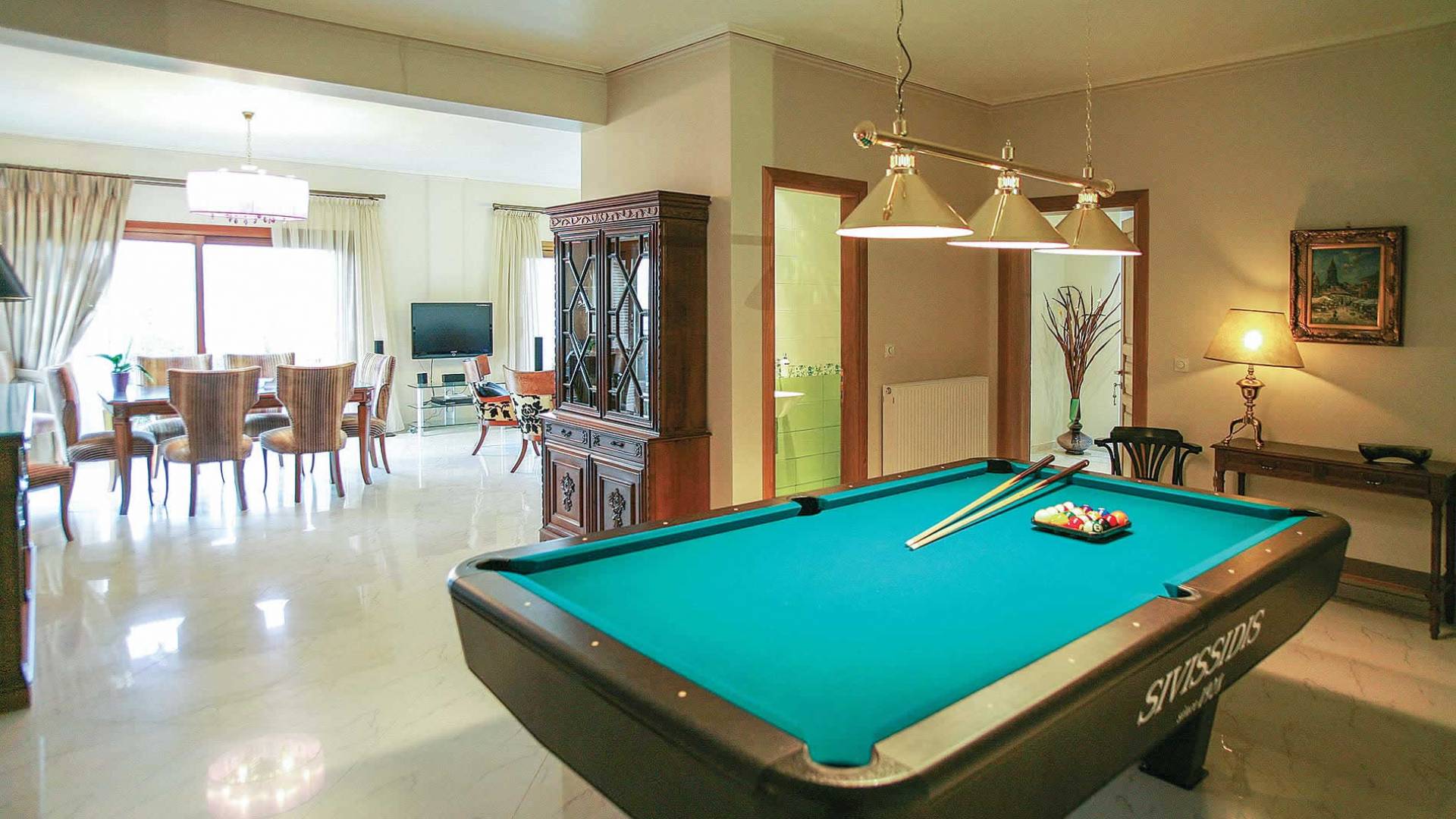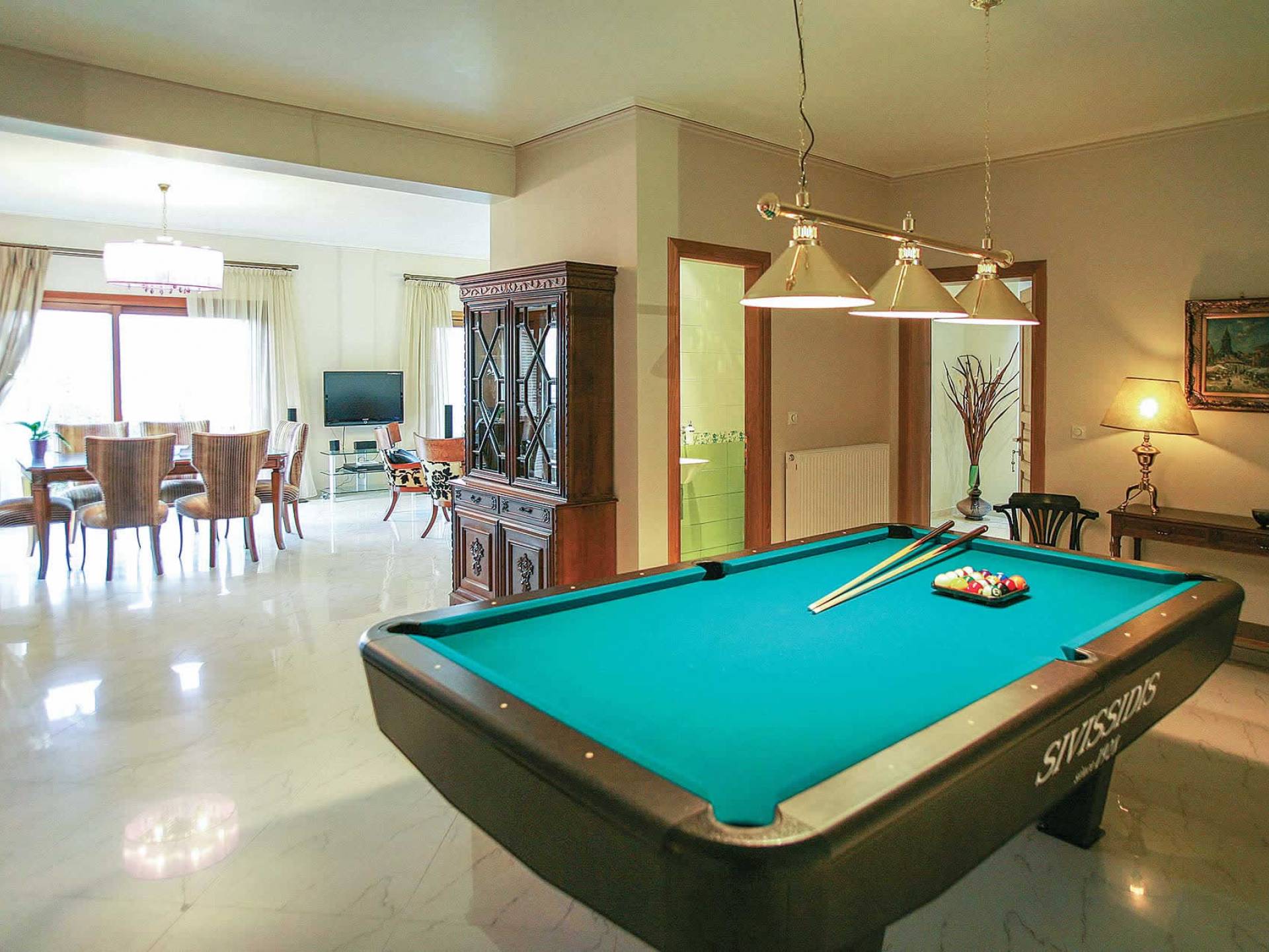 Das Erdgeschoss besteht aus einer zweiten Küche und einem Schlafzimmer mit Doppelbett. Es gibt einen großzügigen offenen Bereich mit Flachbild-Sat-TV, Heimkino, Soundsystem, Playstation, Blue Ray, Sofas, Essbereich, Sauna und Massagedusche. Die Gäste können im voll ausgestatteten Fitnessstudio trainieren, sie können auch den Billardtisch, die Tischtennisplatte und den privaten Tennisplatz nutzen.