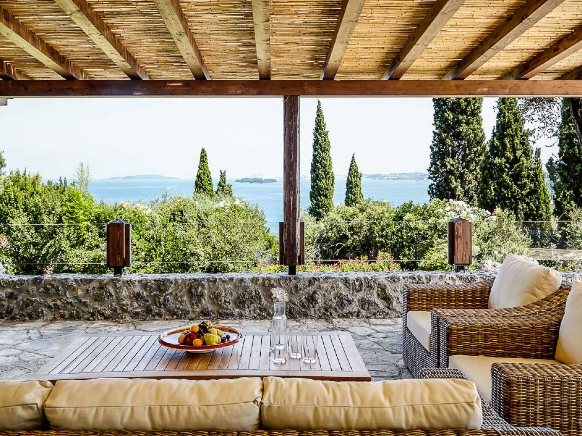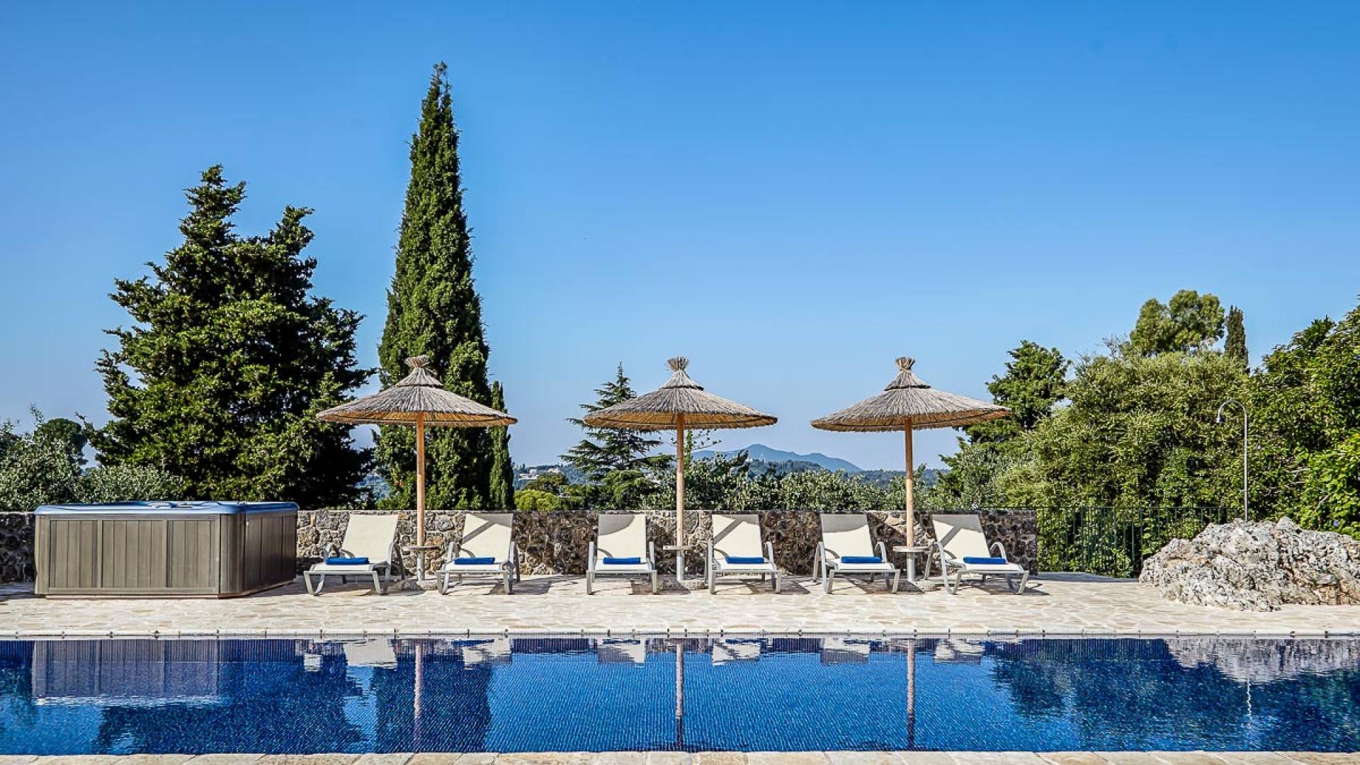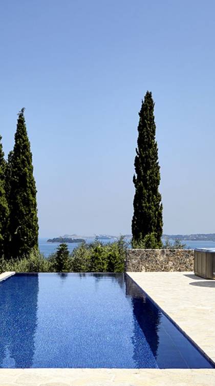 Villa Naldera Corfu ist eine Luxusvilla mit 6 Schlafzimmern und einem privaten Pool. Villa Naldera ist eine luxuriöse 440 m² große Villa mit 6 Schlafzimmern und 9 Bädern. Das Hotel liegt auf einem kleinen Hügel in Kommeno, nur 12 Kilometer nördlich von Korfu-Stadt und dem Flughafen. Die Villa ist eingebettet in eine geschlossene, 3700 m² große grüne Oase und schafft eine einzigartige und ruhige Umgebung mit herrlichem Meerblick, während sie nur fünf Gehminuten vom Strand entfernt ist.