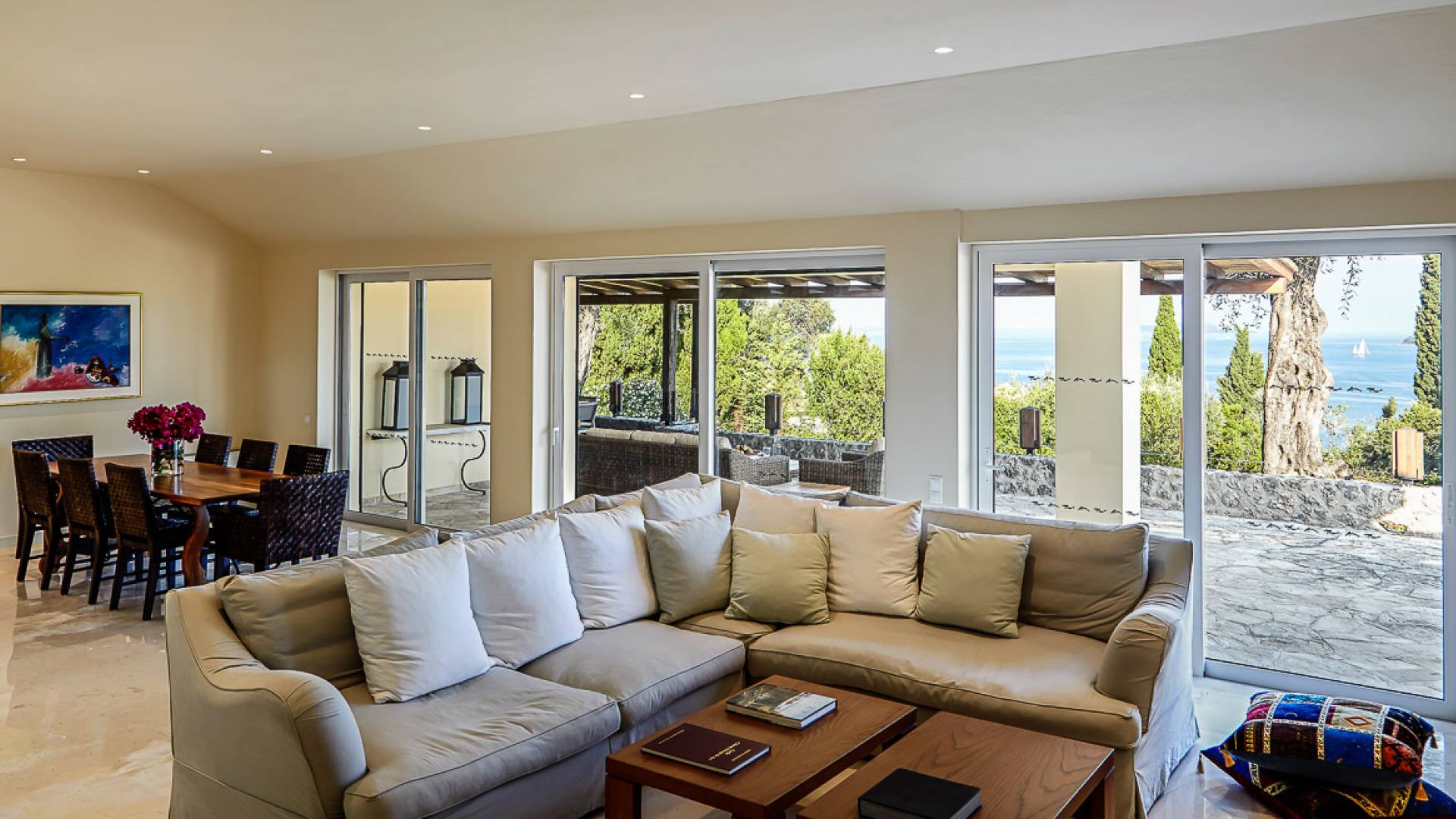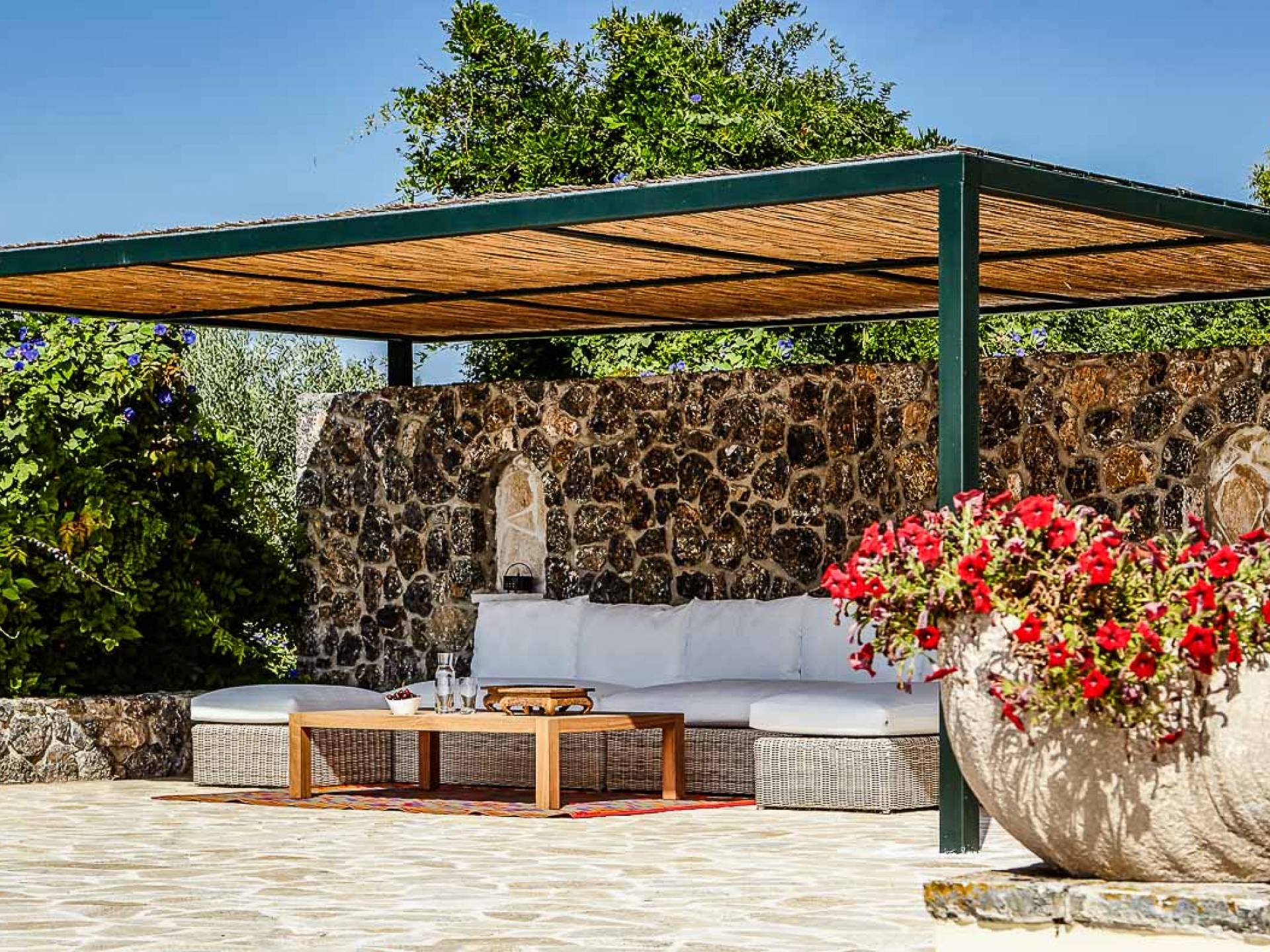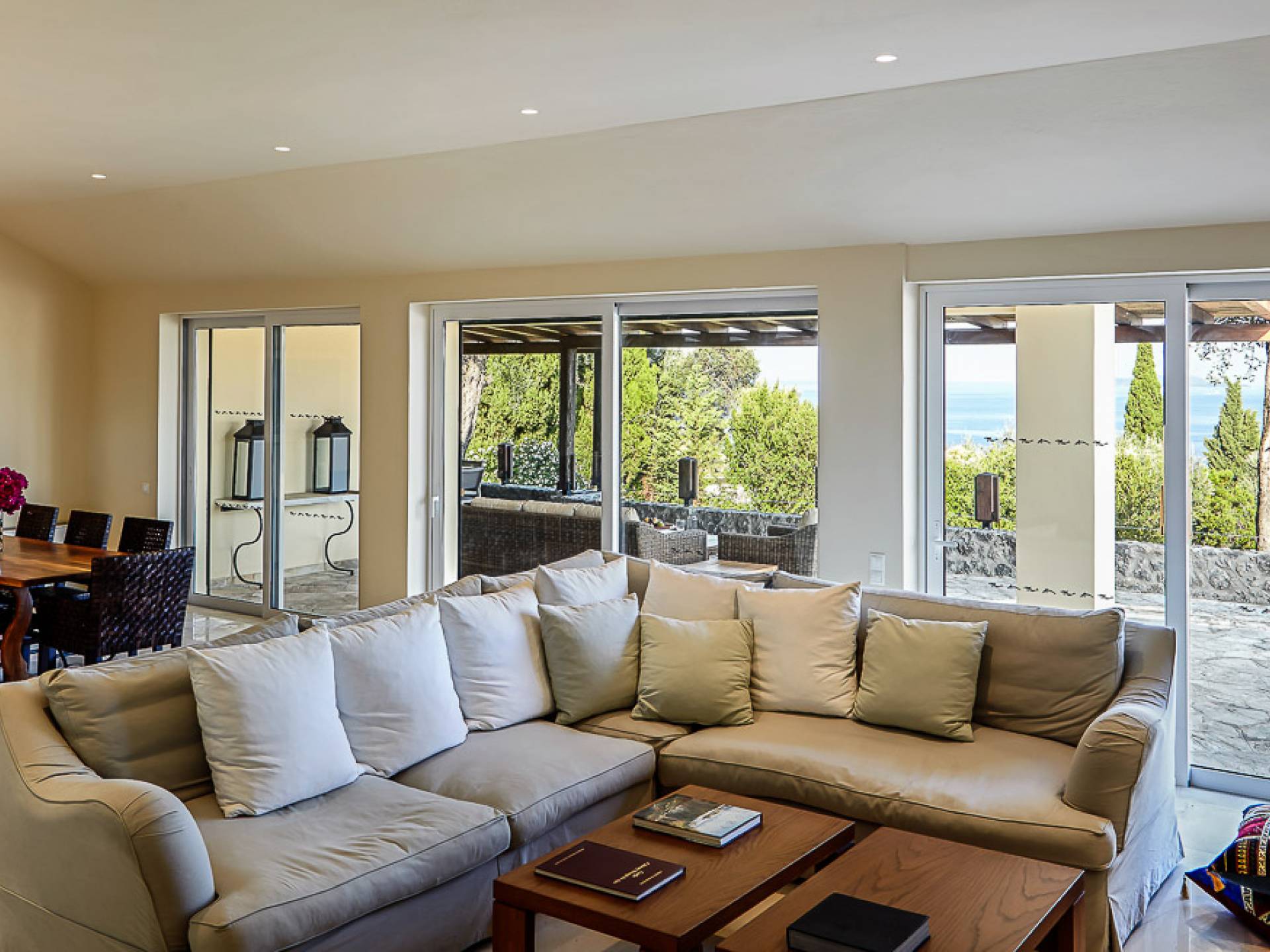 Villa Naldera Corfu ist eine Luxusvilla mit 6 Schlafzimmern und einem privaten Pool. Villa Naldera ist eine luxuriöse 440 m² große Villa mit 6 Schlafzimmern und 9 Bädern. Das Hotel liegt auf einem kleinen Hügel in Kommeno, nur 12 Kilometer nördlich von Korfu-Stadt und dem Flughafen. Die Villa ist eingebettet in eine geschlossene, 3700 m² große grüne Oase und schafft eine einzigartige und ruhige Umgebung mit herrlichem Meerblick, während sie nur fünf Gehminuten vom Strand entfernt ist.