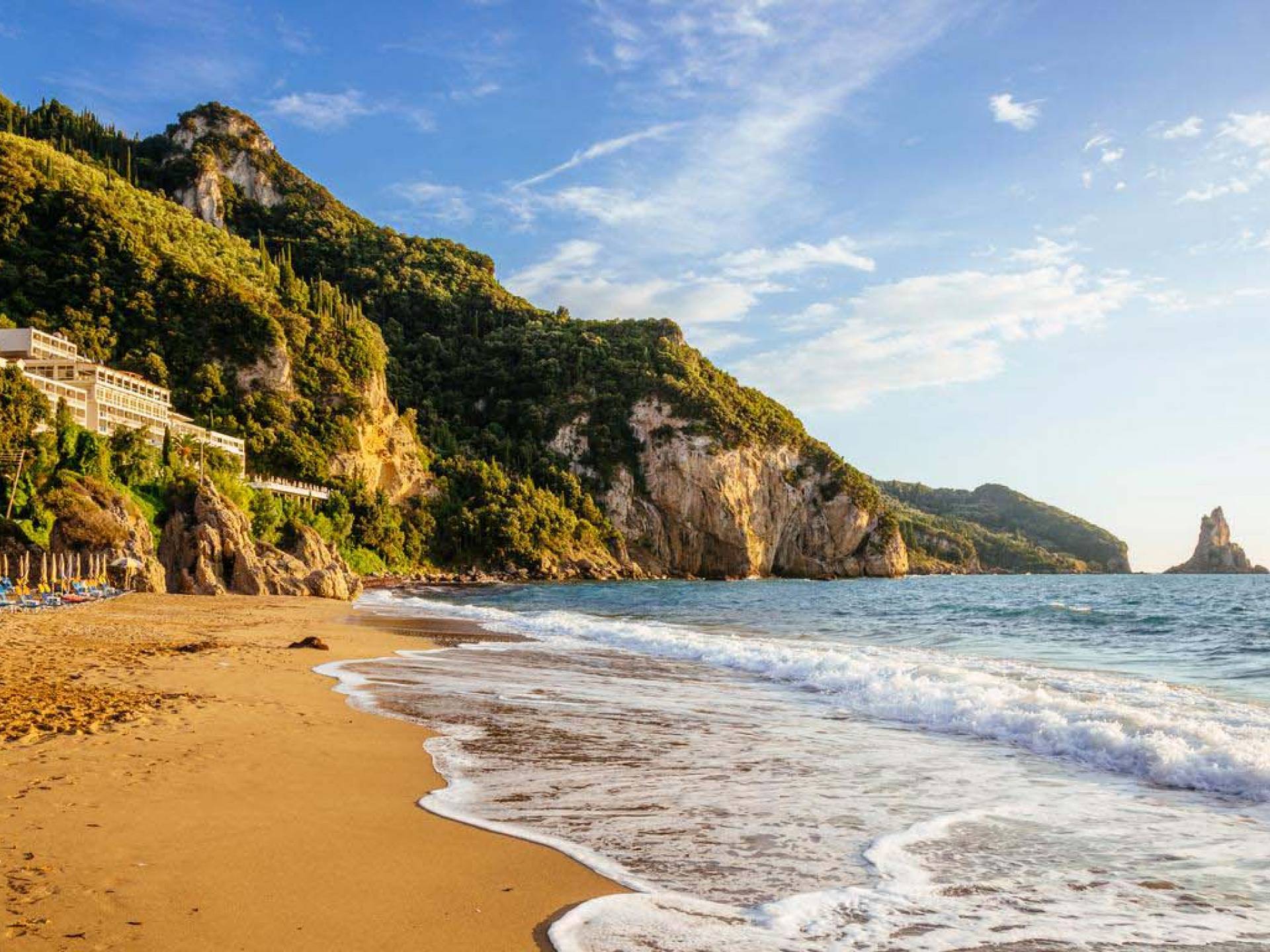 - Ermones Beach (8 km): Pebbled cove nestled between cliffs – peaceful & dramatic
