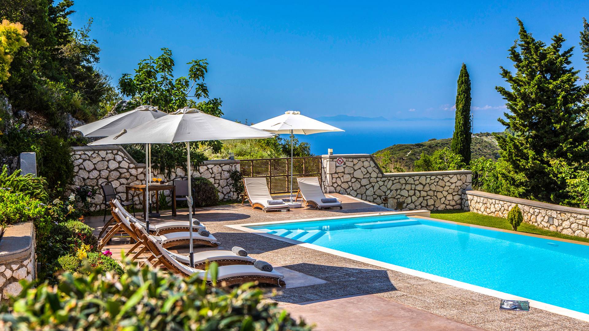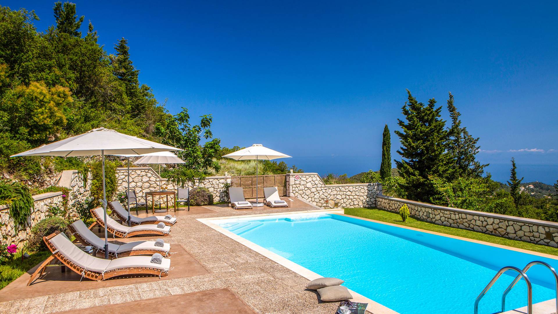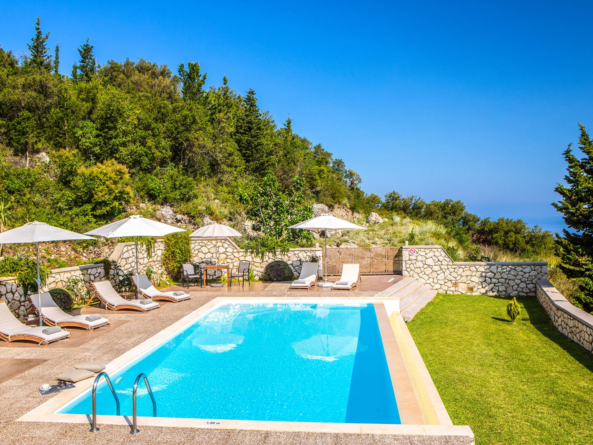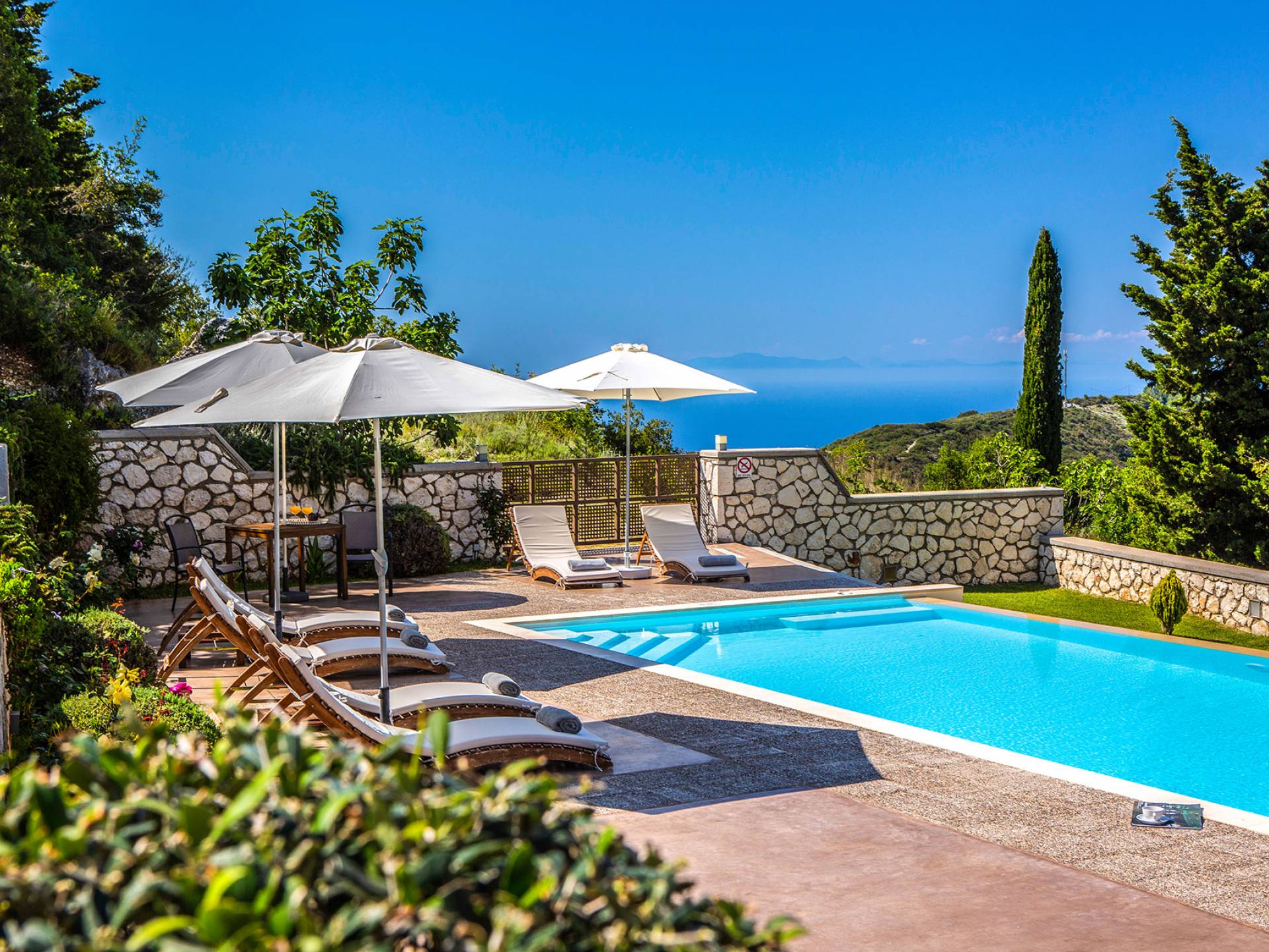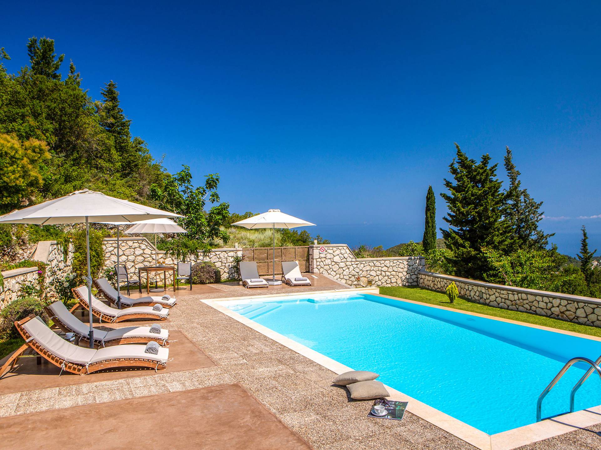 Villa Liria bei Drimonari Villas Lefkada ist eine Luxusvilla mit 3 Schlafzimmern und einem privaten Pool. Villa Liria hat eine Fläche von 120 Quadratmetern und bietet Platz für bis zu 6+2 Personen. Es ist ideal für große Familien oder für 2 befreundete Familien.