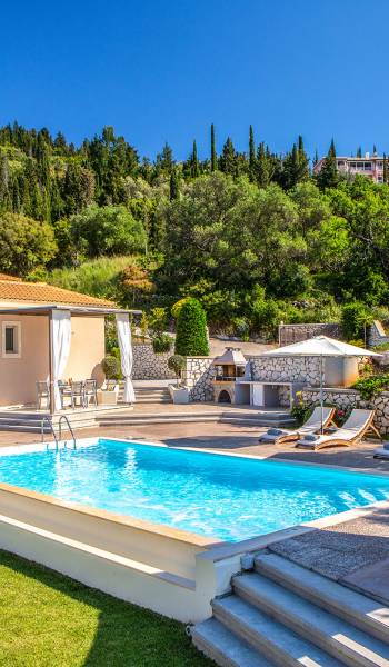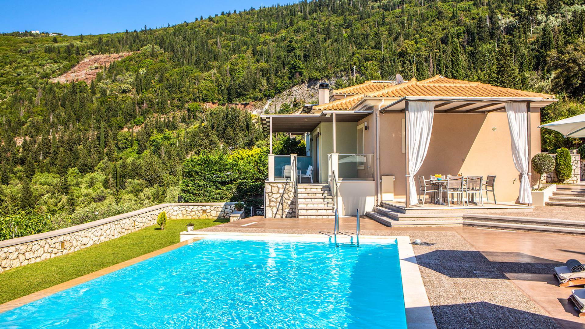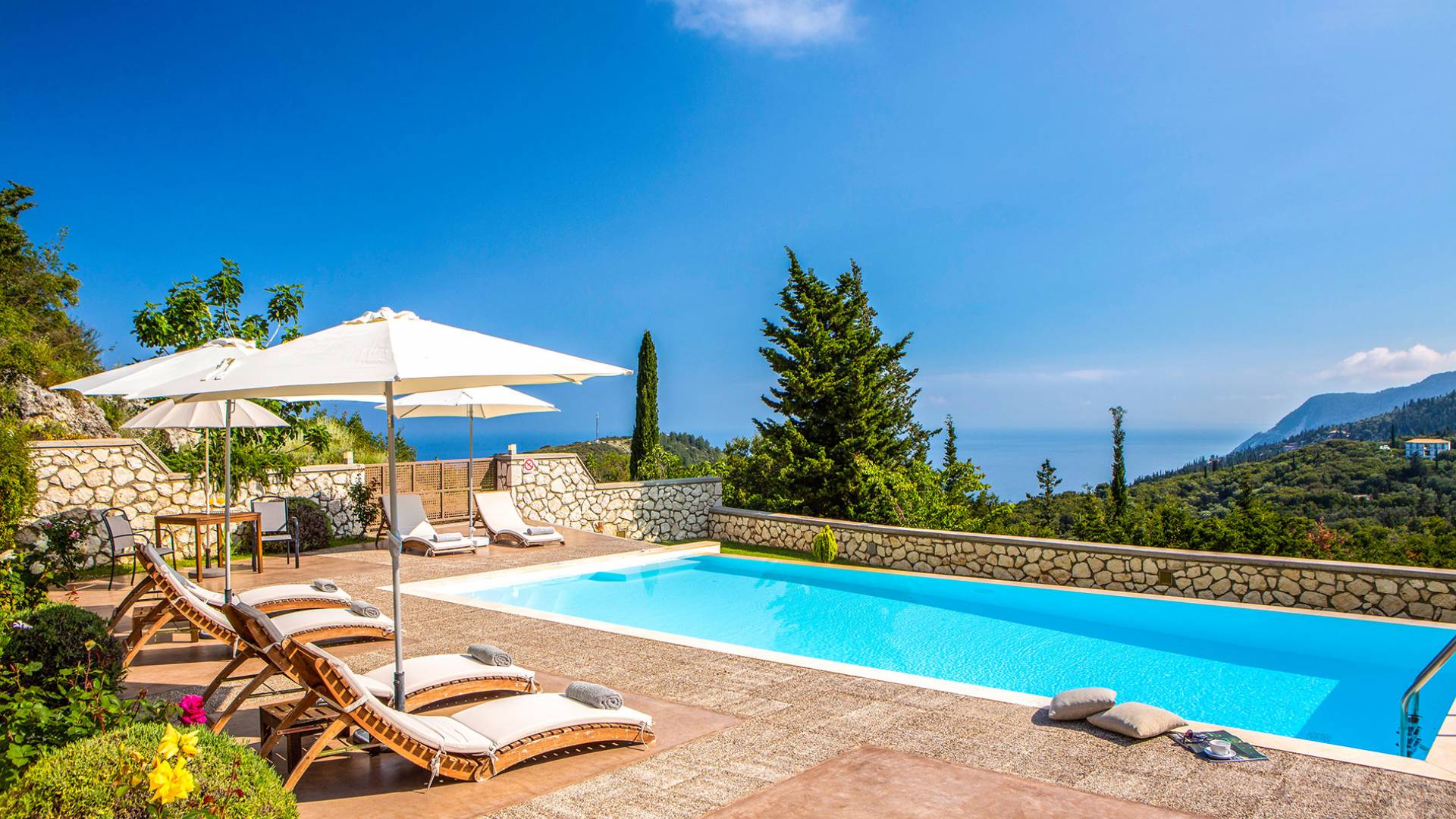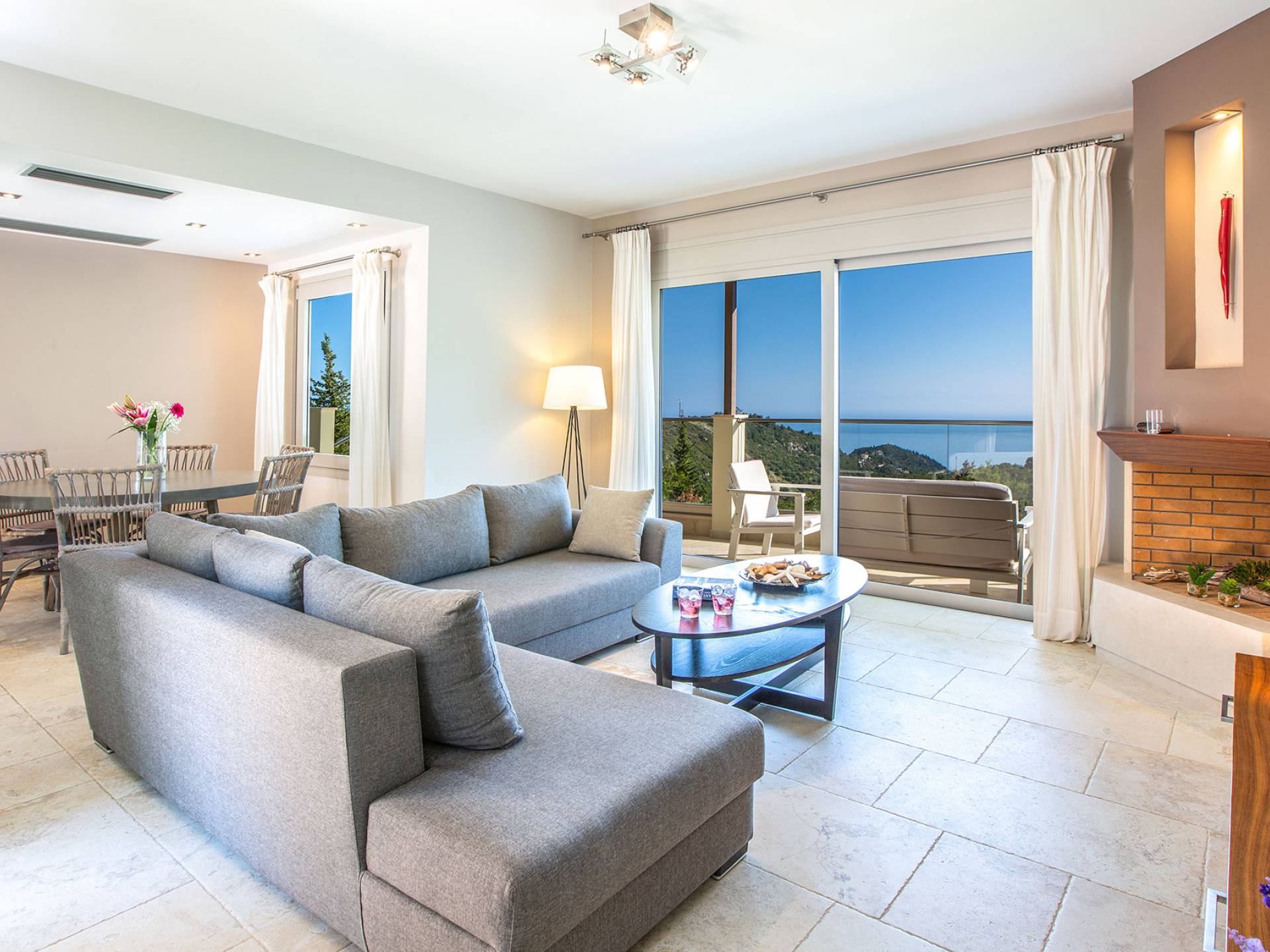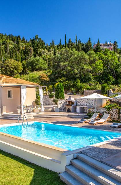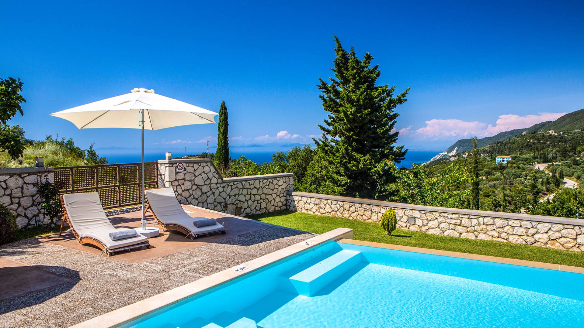 Villa Liria bei Drimonari Villas Lefkada ist eine Luxusvilla mit 3 Schlafzimmern und einem privaten Pool. Villa Liria hat eine Fläche von 120 Quadratmetern und bietet Platz für bis zu 6+2 Personen. Es ist ideal für große Familien oder für 2 befreundete Familien.