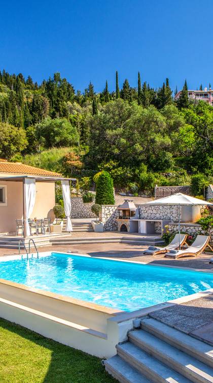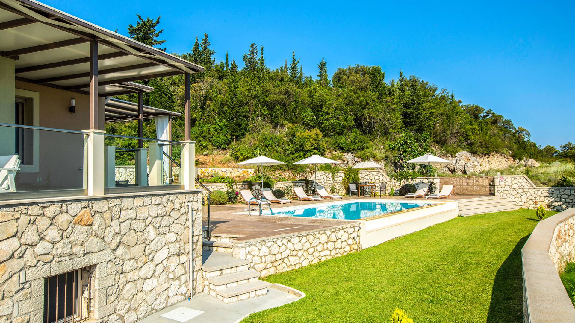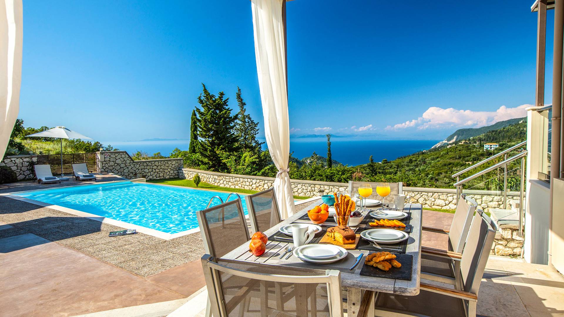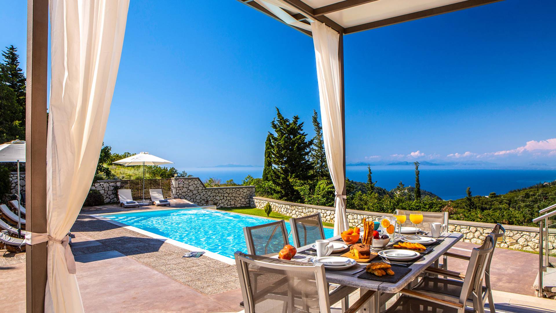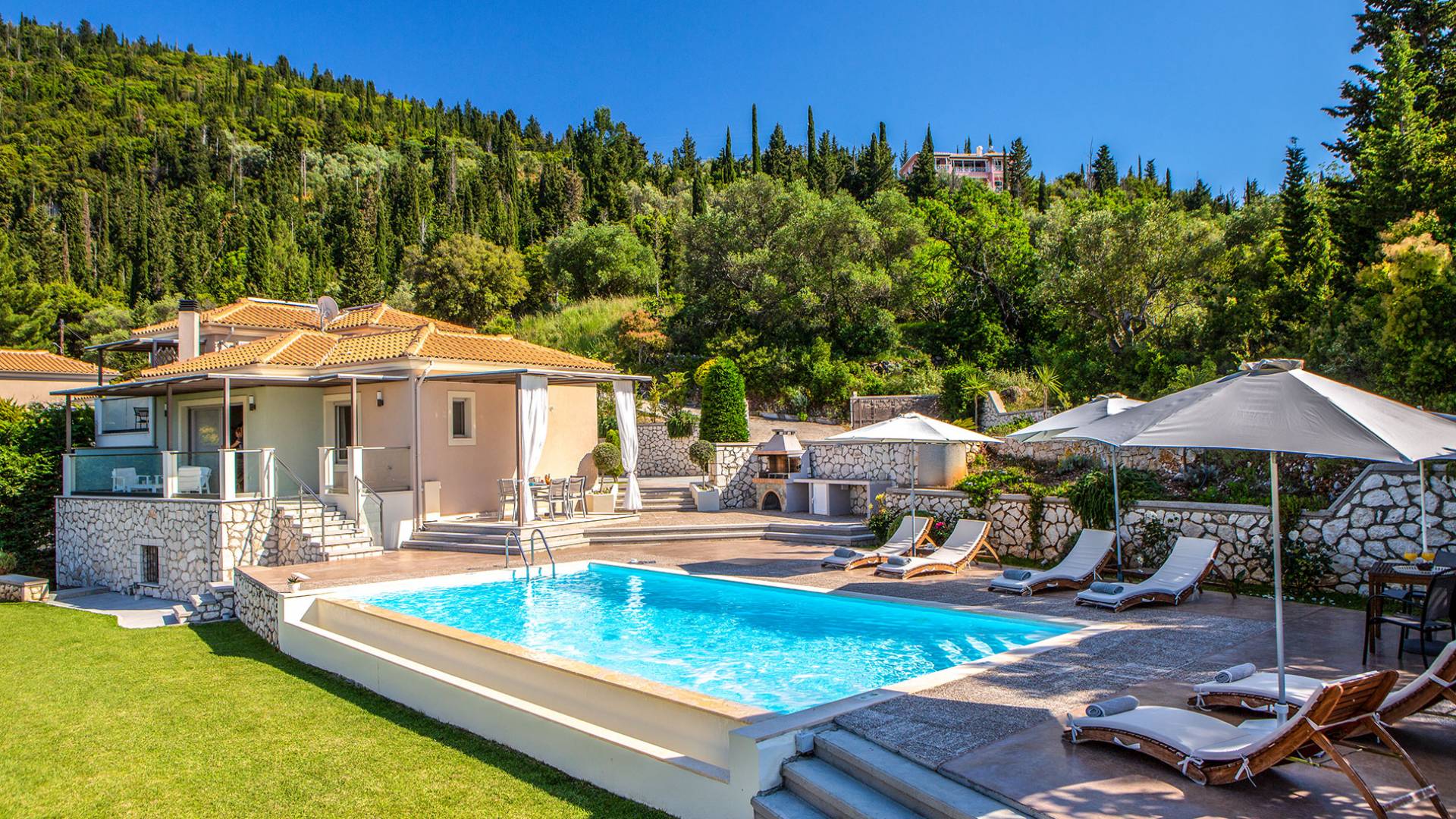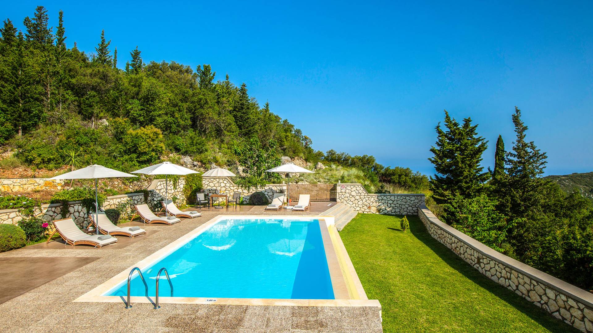 Villa Liria bei Drimonari Villas Lefkada ist eine Luxusvilla mit 3 Schlafzimmern und einem privaten Pool. Villa Liria hat eine Fläche von 120 Quadratmetern und bietet Platz für bis zu 6+2 Personen. Es ist ideal für große Familien oder für 2 befreundete Familien.