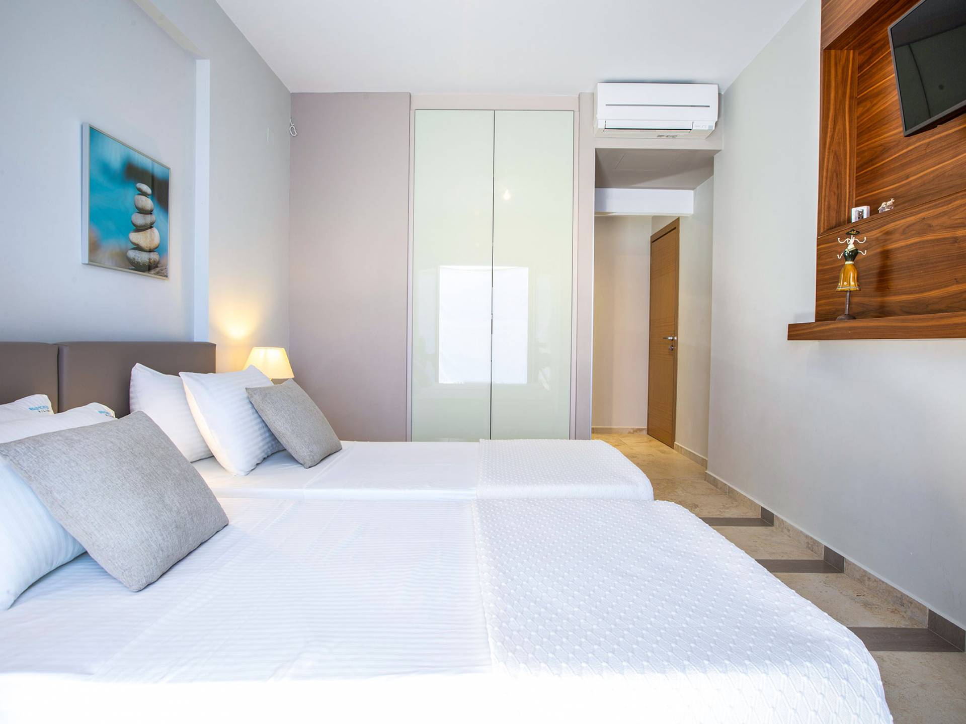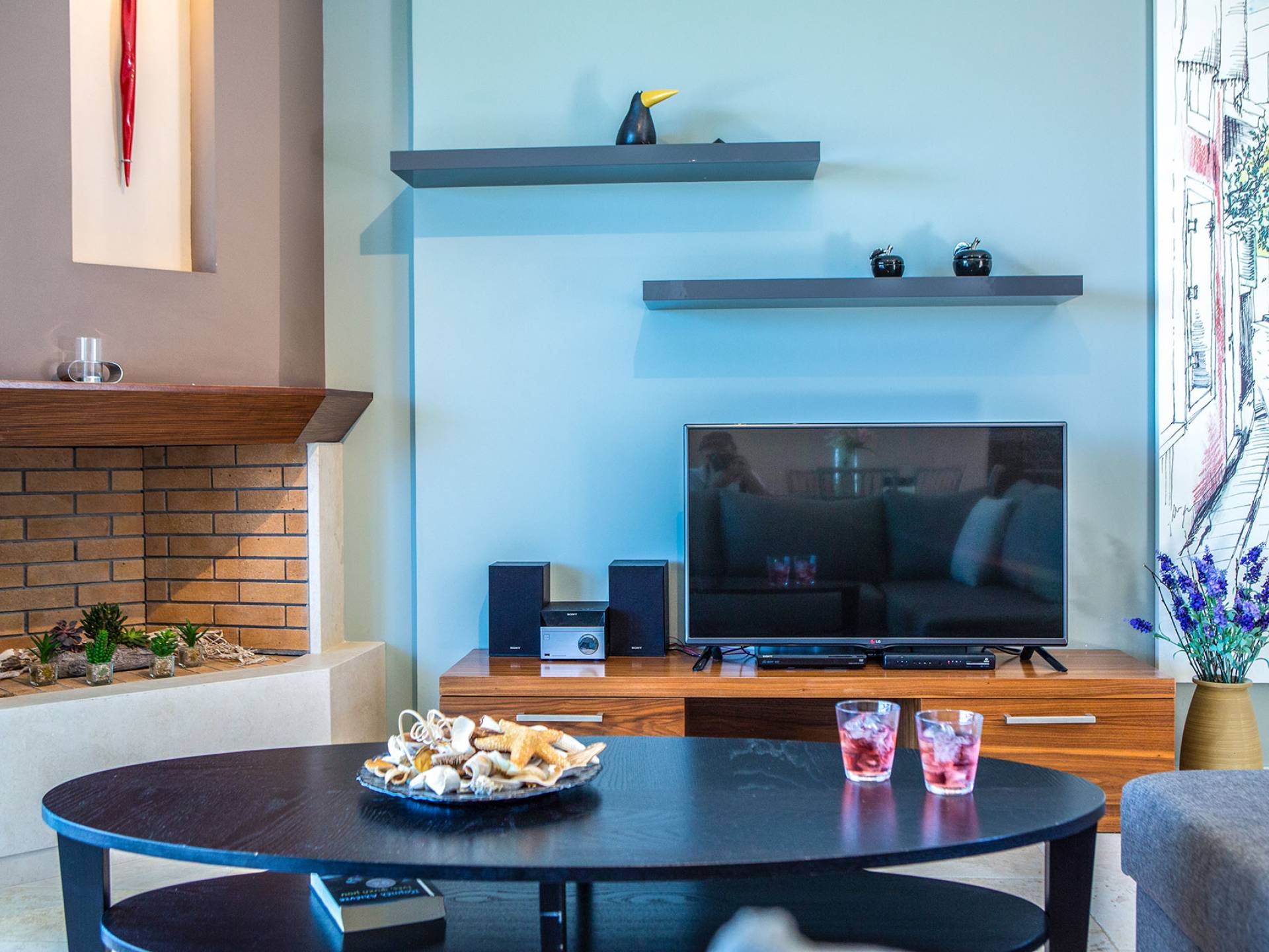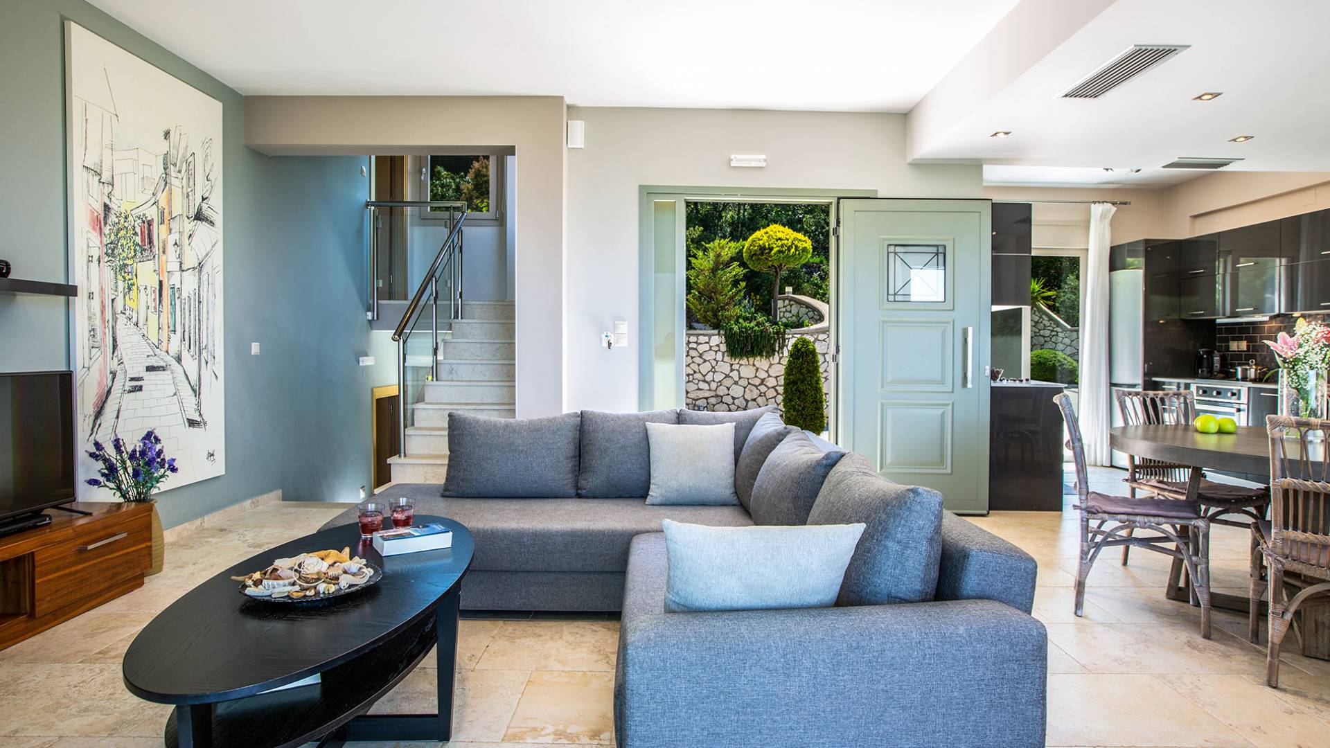 Zur Zimmerausstattung gehören individuell klimatisierte Einheiten, Fernseher, Kaffeemaschine, Kühlschrank, Herd, Geschirrspüler, Waschmaschine, Bügeleisen und Bügelbrett, Wi-Fi Internetanschluss, Haartrockner, Kochutensilien, ein 42΄΄ Flachbildfernseher im Wohnzimmer, Stereoanlage, Mikrowelle, Toaster, Saftpresse.