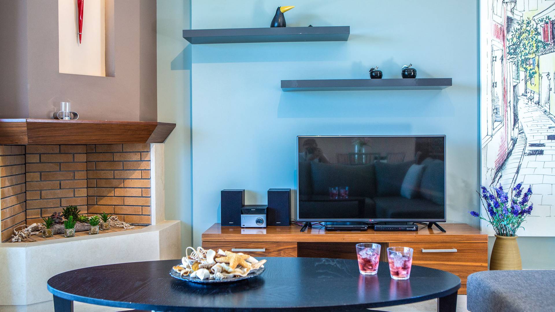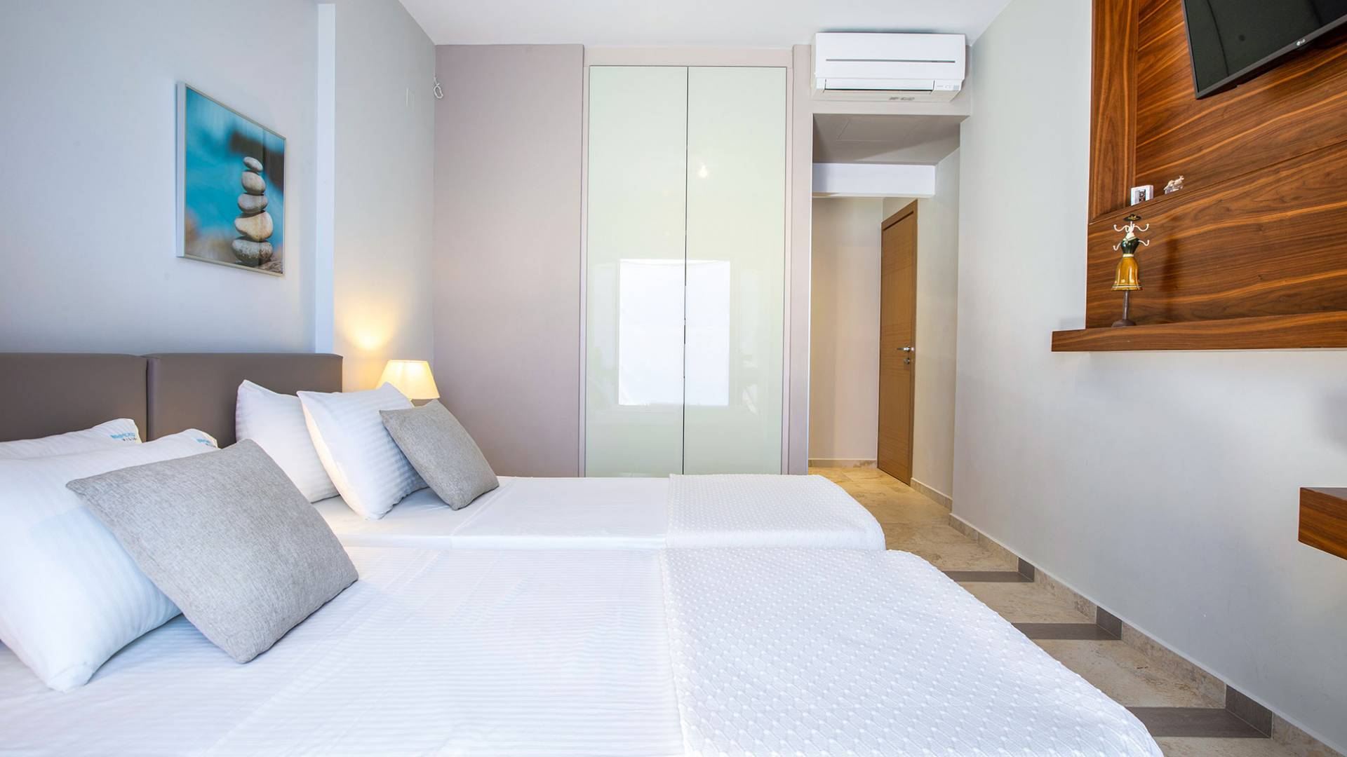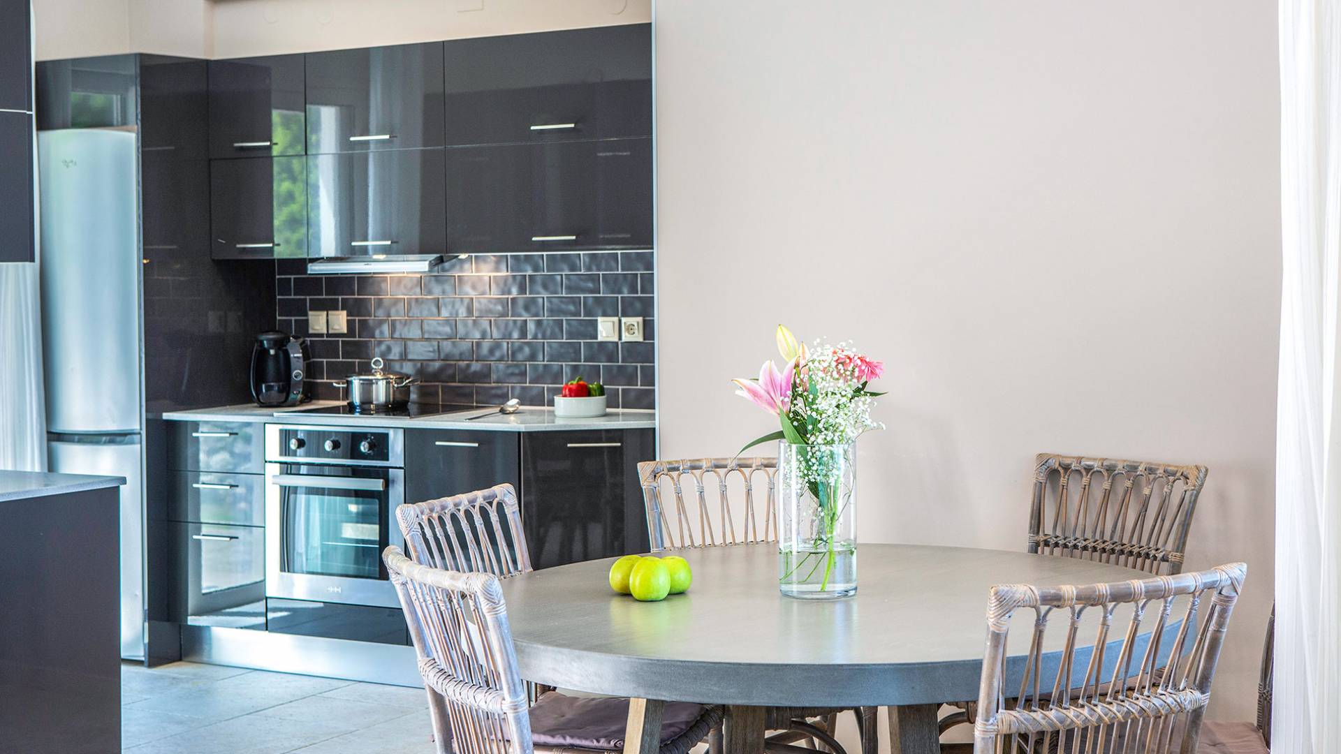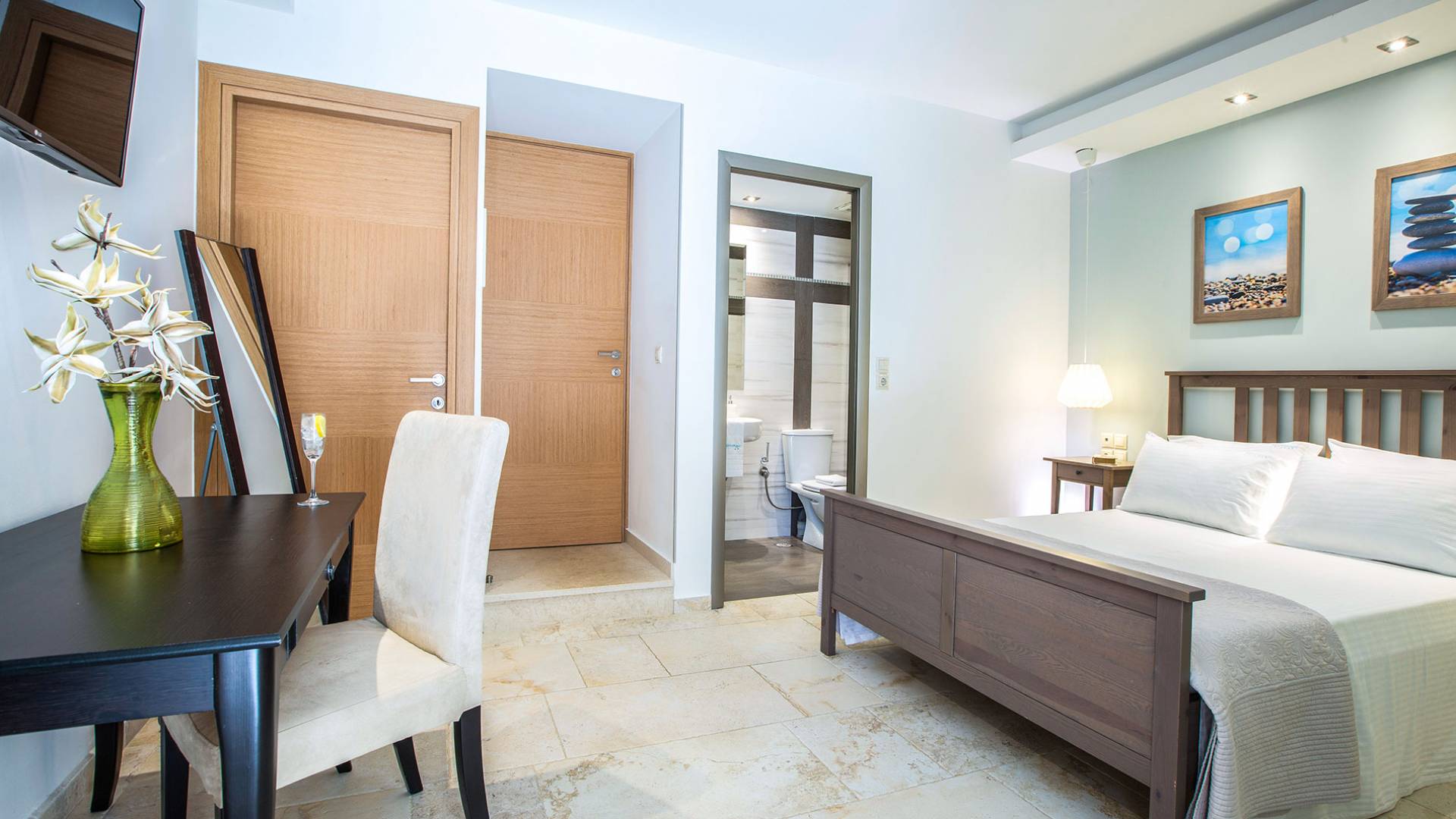 Zur Zimmerausstattung gehören individuell klimatisierte Einheiten, Fernseher, Kaffeemaschine, Kühlschrank, Herd, Geschirrspüler, Waschmaschine, Bügeleisen und Bügelbrett, Wi-Fi Internetanschluss, Haartrockner, Kochutensilien, ein 42΄΄ Flachbildfernseher im Wohnzimmer, Stereoanlage, Mikrowelle, Toaster, Saftpresse.
