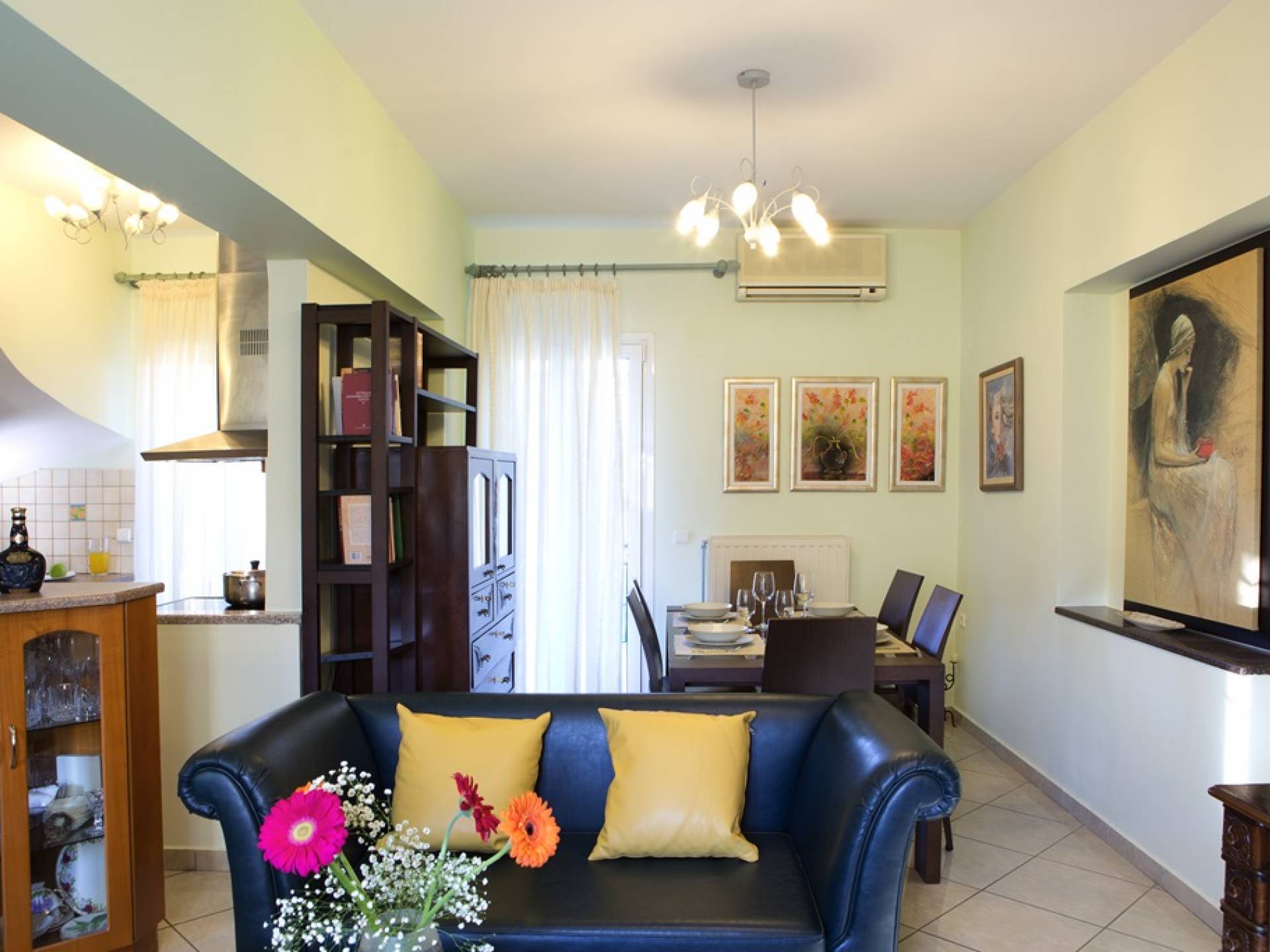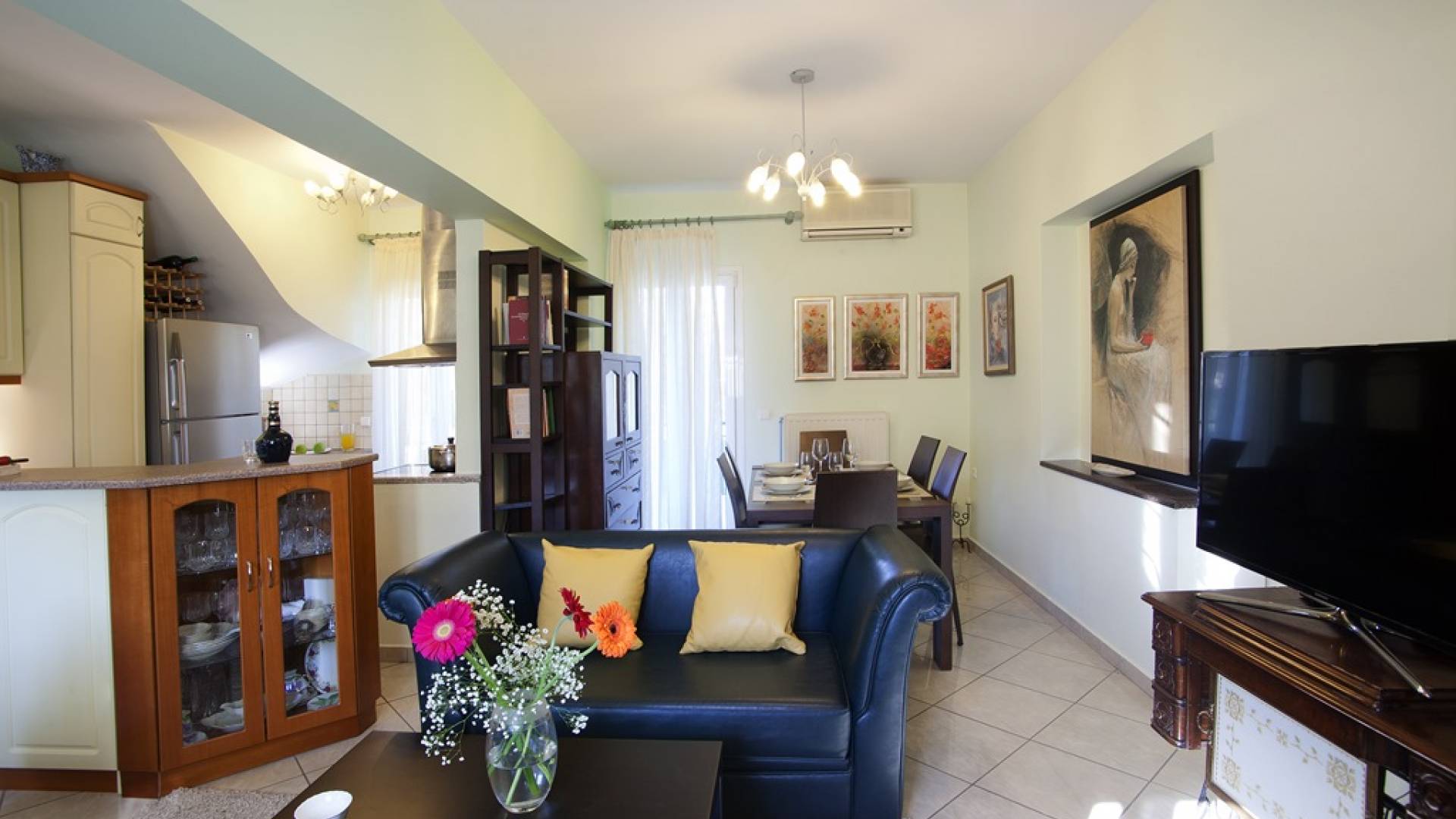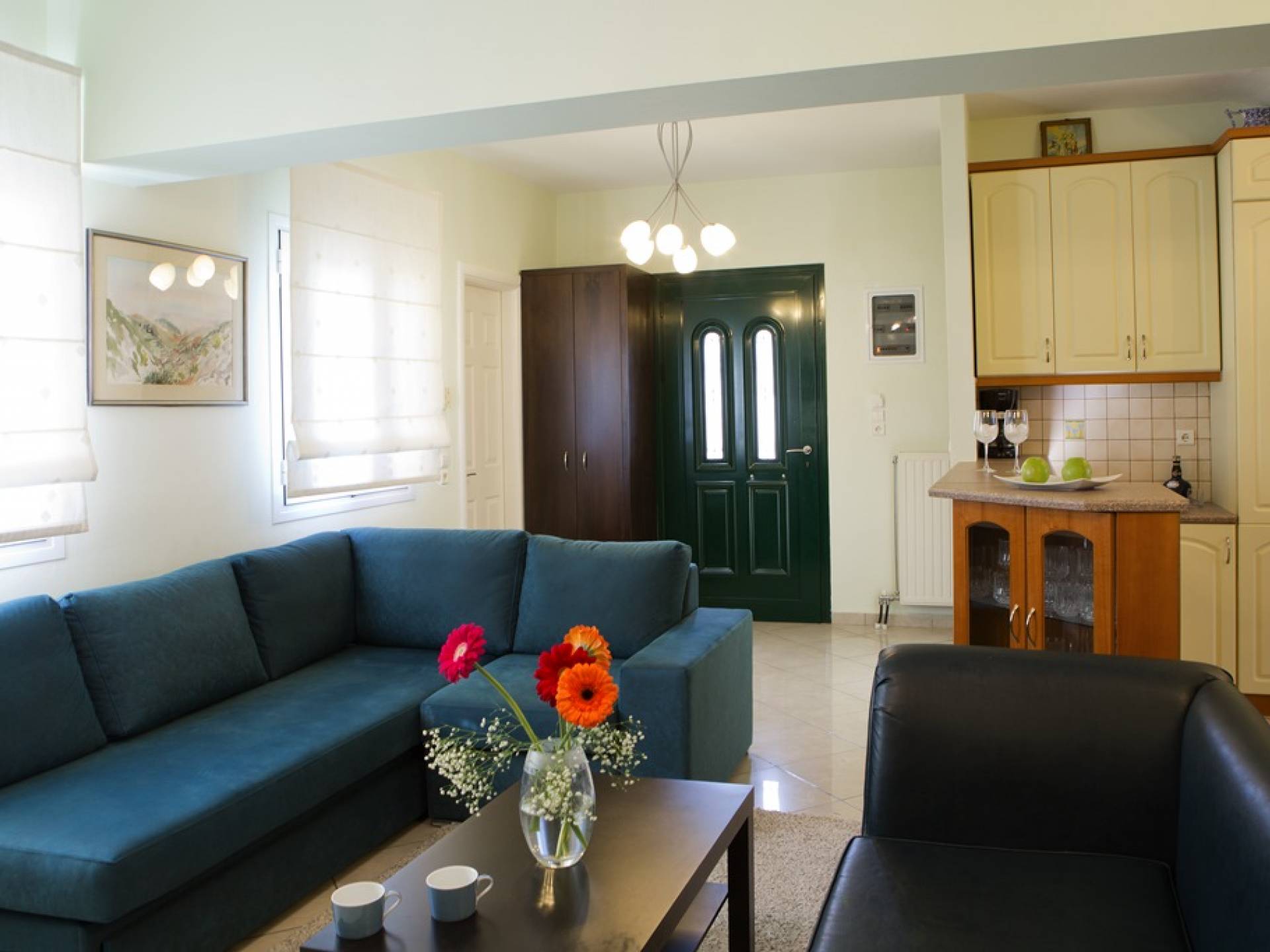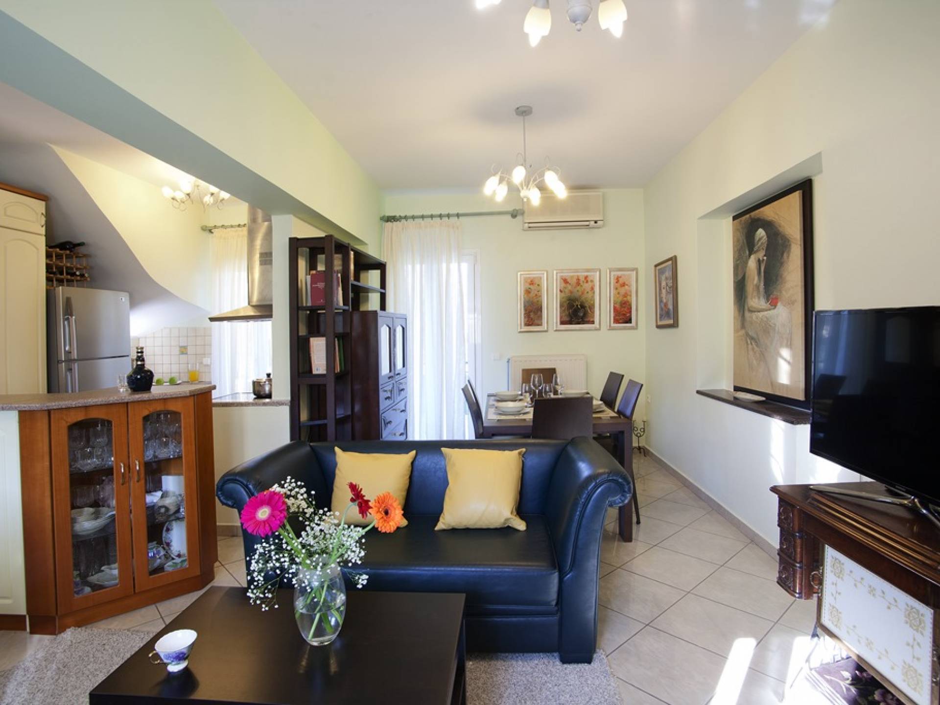 Villa Vasiliki Lefkada liegt in der Küstensiedlung Kariotes auf der bei Besuchern beliebten Insel Lefkada und bietet erstklassige Unterkünfte in üppigem Grün, ruhiger und besonders gastfreundlicher Lage, nur wenige Minuten von der Stadt Lefkada und dem kosmopolitischen Nidri . entfernt . Villa Vasiliki Lefkada ist auf zwei Etagen gebaut. Im Erdgeschoss befinden sich eine Küche, ein Wohnzimmer und ein Esszimmer sowie ein Badezimmer. Die Küche ist komplett mit allen notwendigen Elektrogeräten ausgestattet, um alle Bedürfnisse zu erfüllen. Im Wohnzimmer gibt es ein modernes Sofa, das auch als bequemes Bett für zwei Personen genutzt werden kann, und einen Esstisch für 6 Personen.