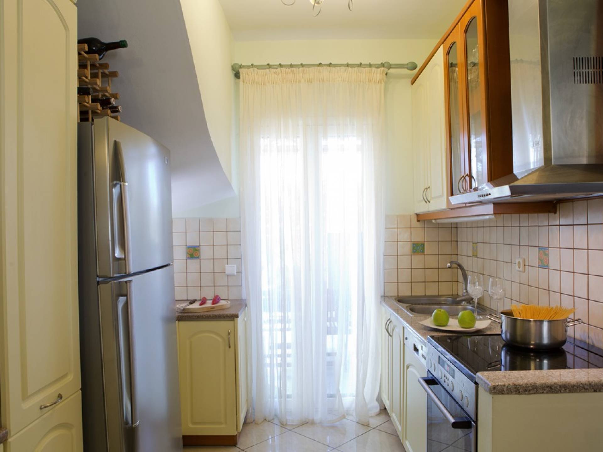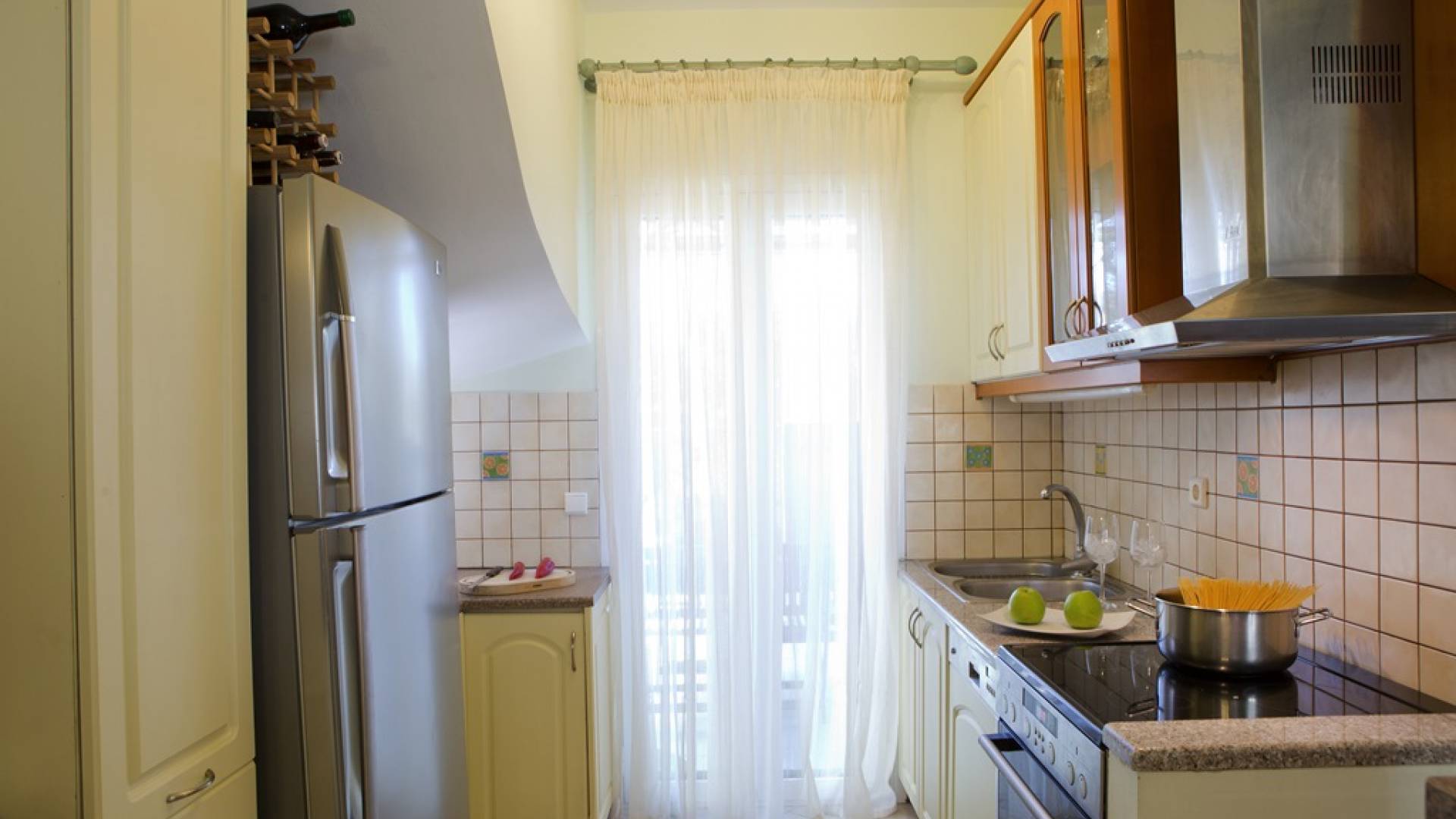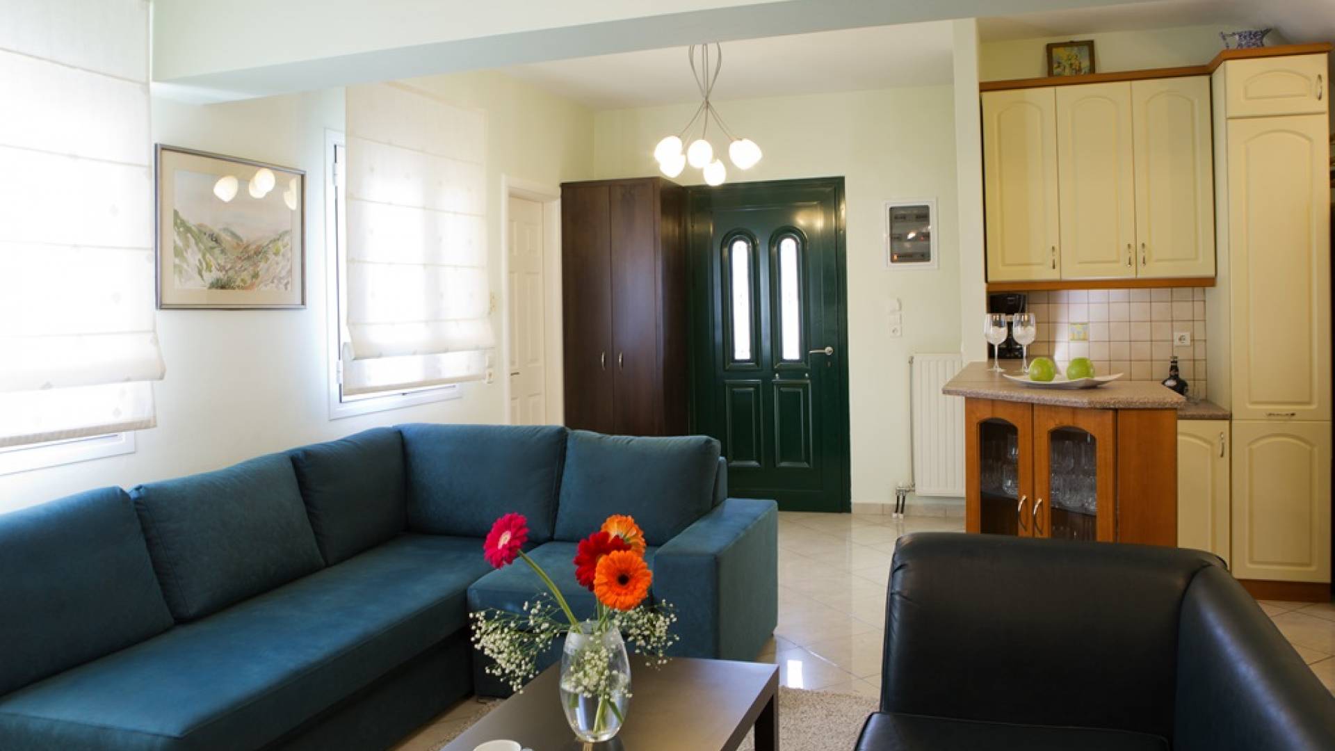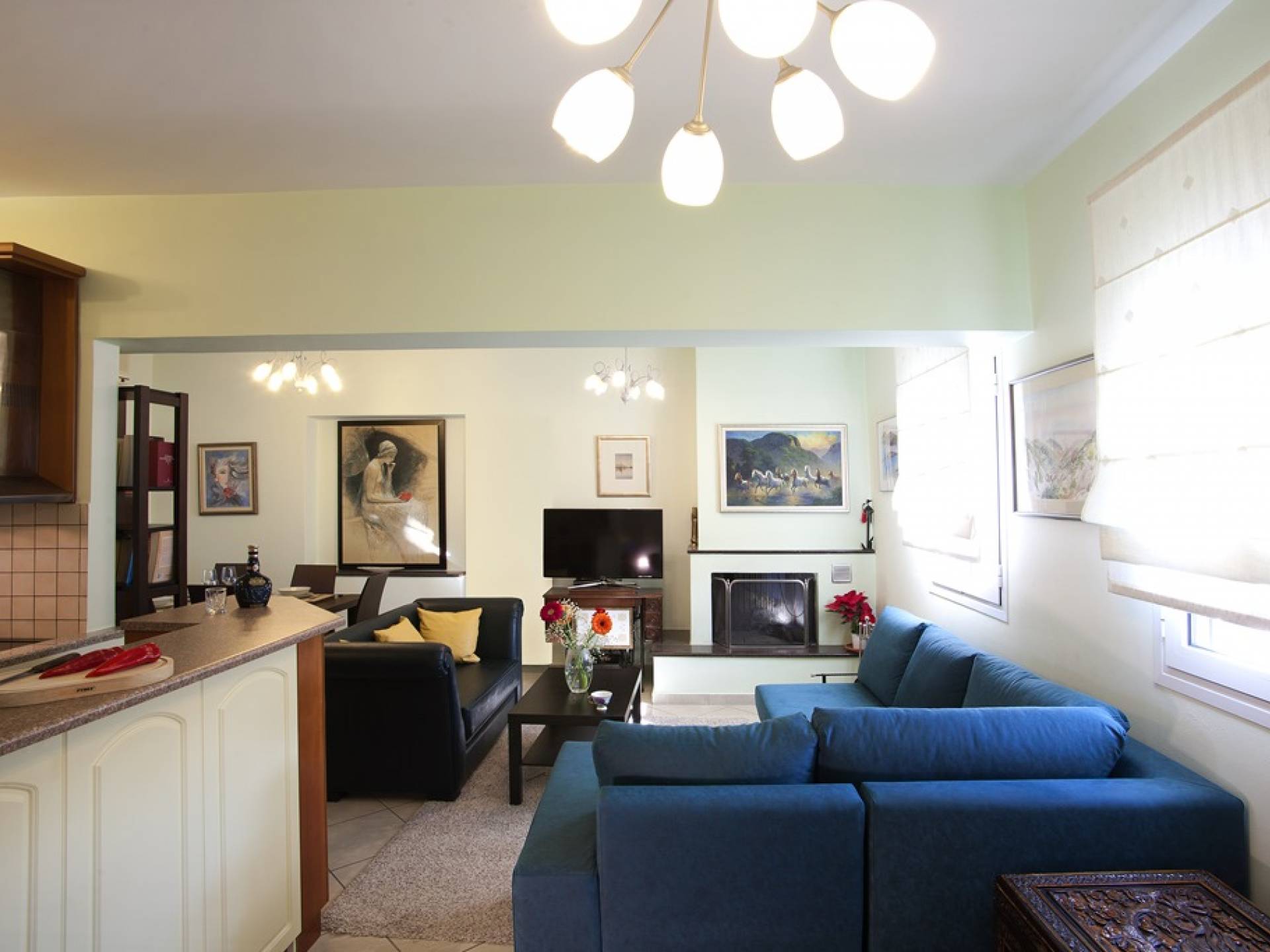 Villa Vasiliki Lefkada liegt in der Küstensiedlung Kariotes auf der bei Besuchern beliebten Insel Lefkada und bietet erstklassige Unterkünfte in üppigem Grün, ruhiger und besonders gastfreundlicher Lage, nur wenige Minuten von der Stadt Lefkada und dem kosmopolitischen Nidri . entfernt . Villa Vasiliki Lefkada ist auf zwei Etagen gebaut. Im Erdgeschoss befinden sich eine Küche, ein Wohnzimmer und ein Esszimmer sowie ein Badezimmer. Die Küche ist komplett mit allen notwendigen Elektrogeräten ausgestattet, um alle Bedürfnisse zu erfüllen. Im Wohnzimmer gibt es ein modernes Sofa, das auch als bequemes Bett für zwei Personen genutzt werden kann, und einen Esstisch für 6 Personen.