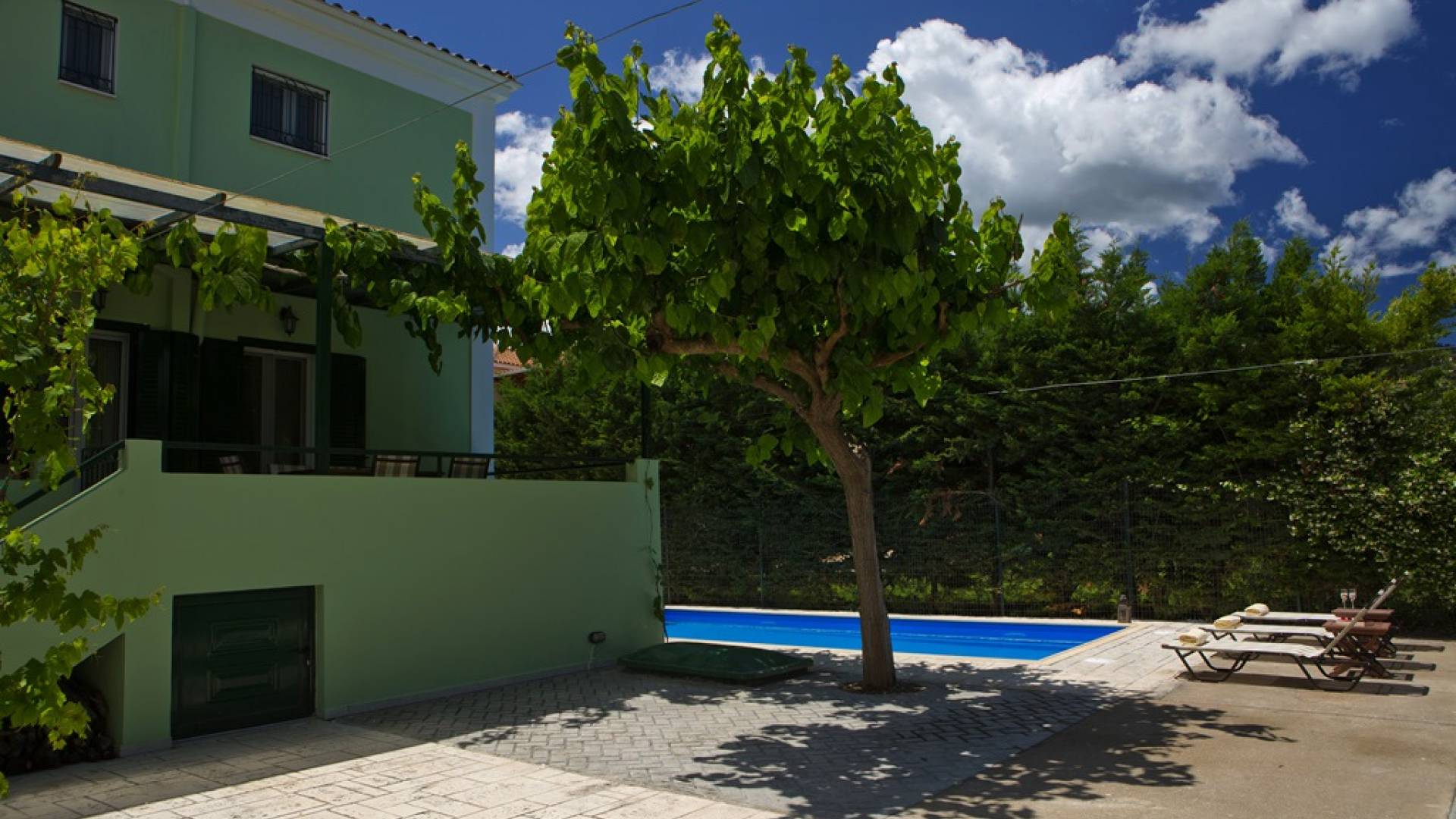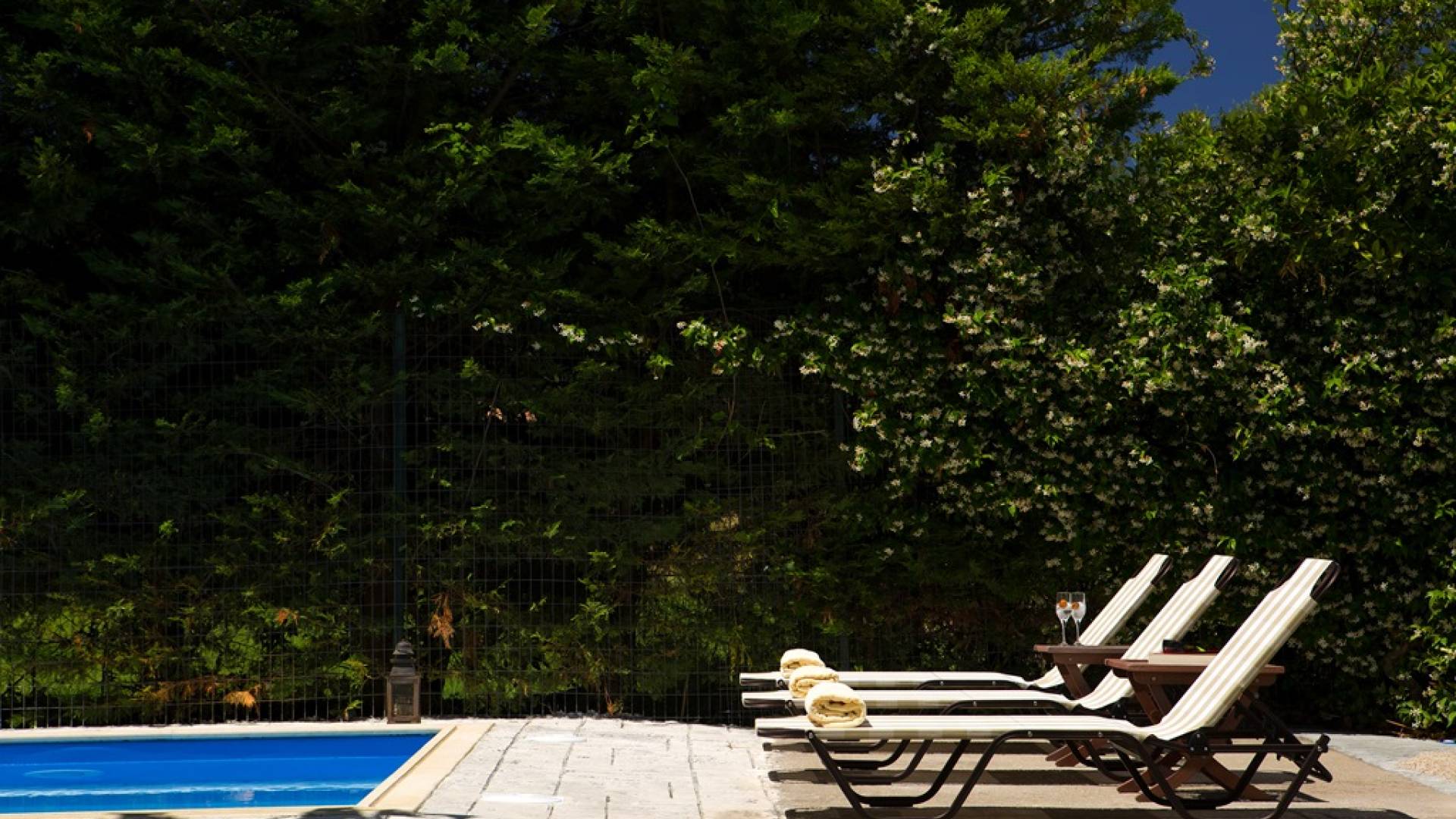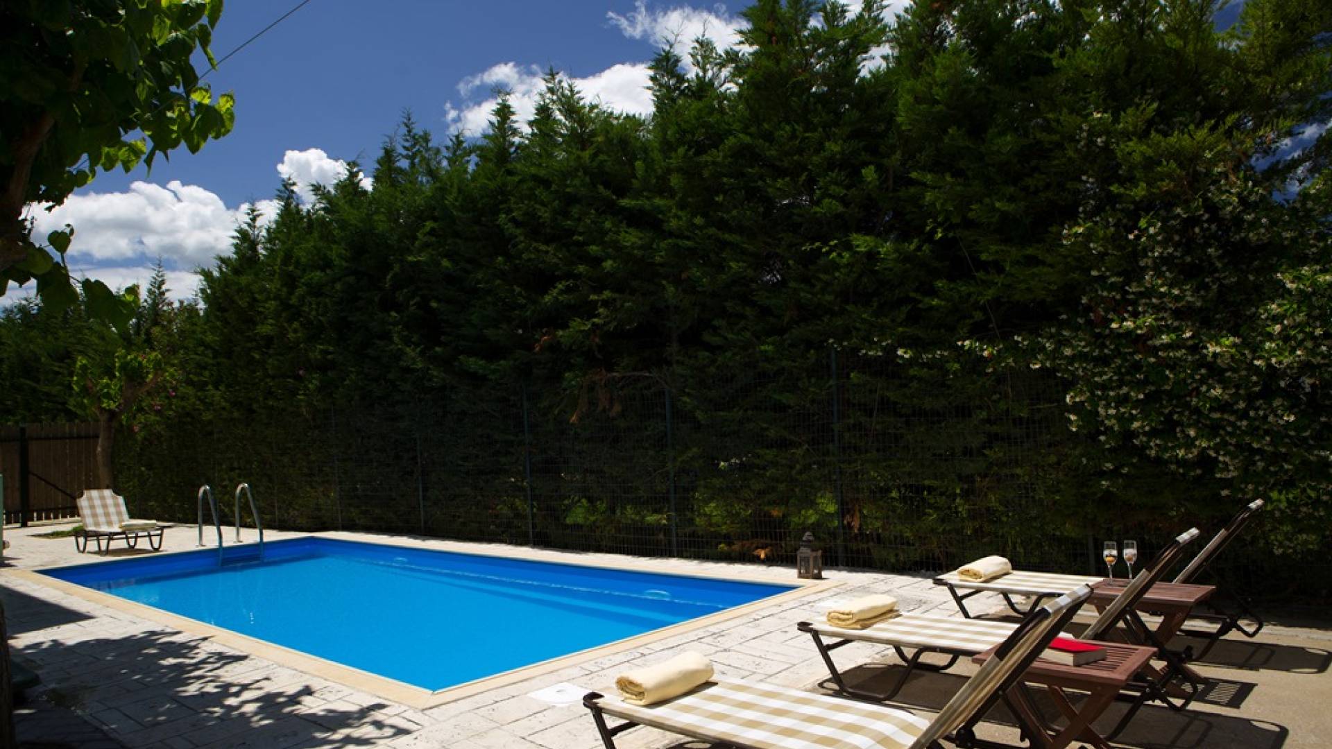 Jedes Schlafzimmer verfügt über einen großen Kleiderschrank, einen LED-Fernseher und eine Klimaanlage. Wie jedes Zimmer in der Villa wurde es neu eingerichtet, um Komfort und Stil zu bieten. Im Freien können die Gäste entspannende Momente auf der großen Veranda des Erdgeschosses an ihrem privaten Swimmingpool genießen, der mit bequemen Möbeln und entspannenden Liegestühlen ausgestattet ist. Oder sie können alleine oder mit Gästen Spaß haben und auf ihrem privaten Grill kochen, alles in einer ruhigen und besonders gastfreundlichen Umgebung.