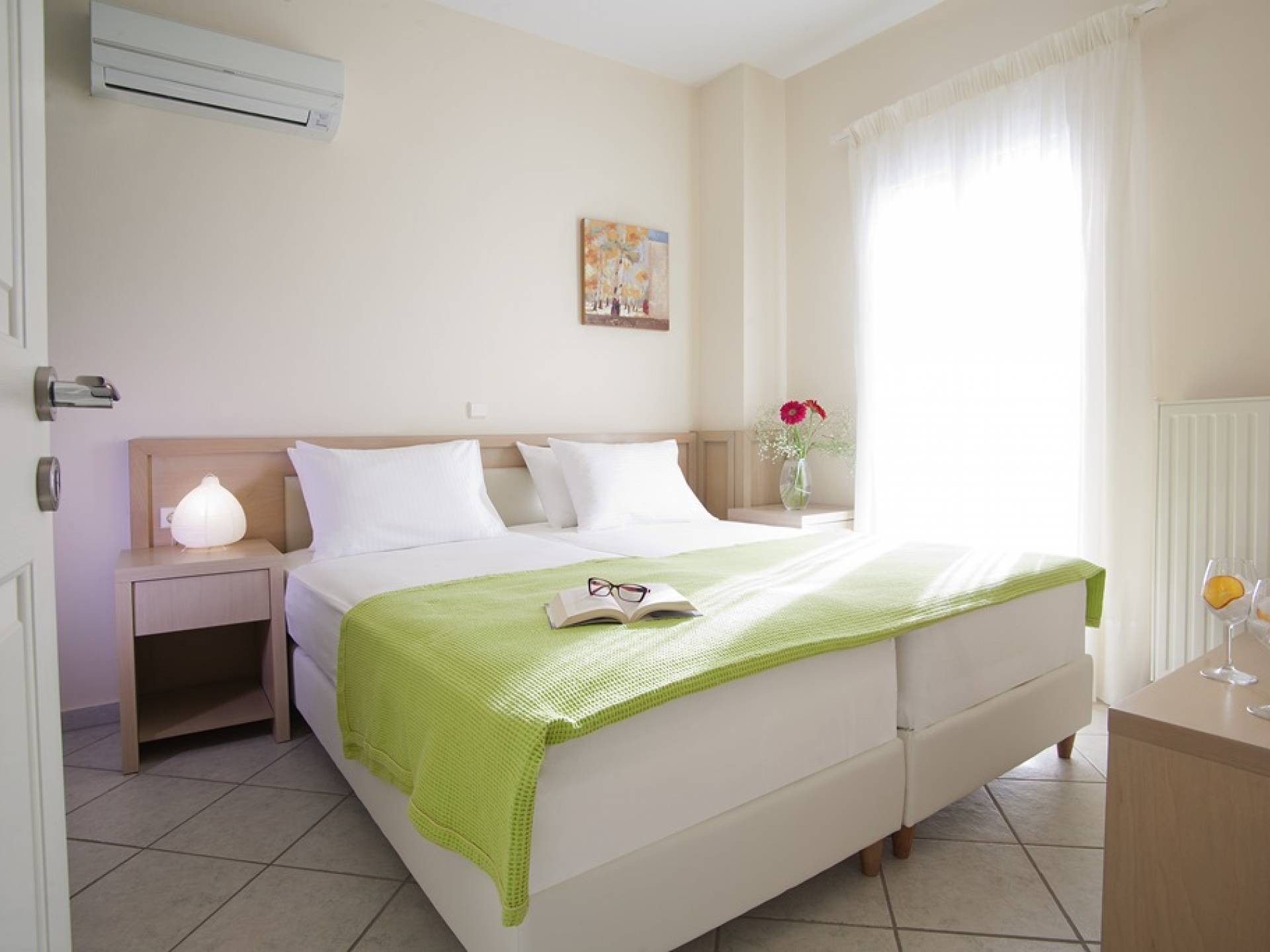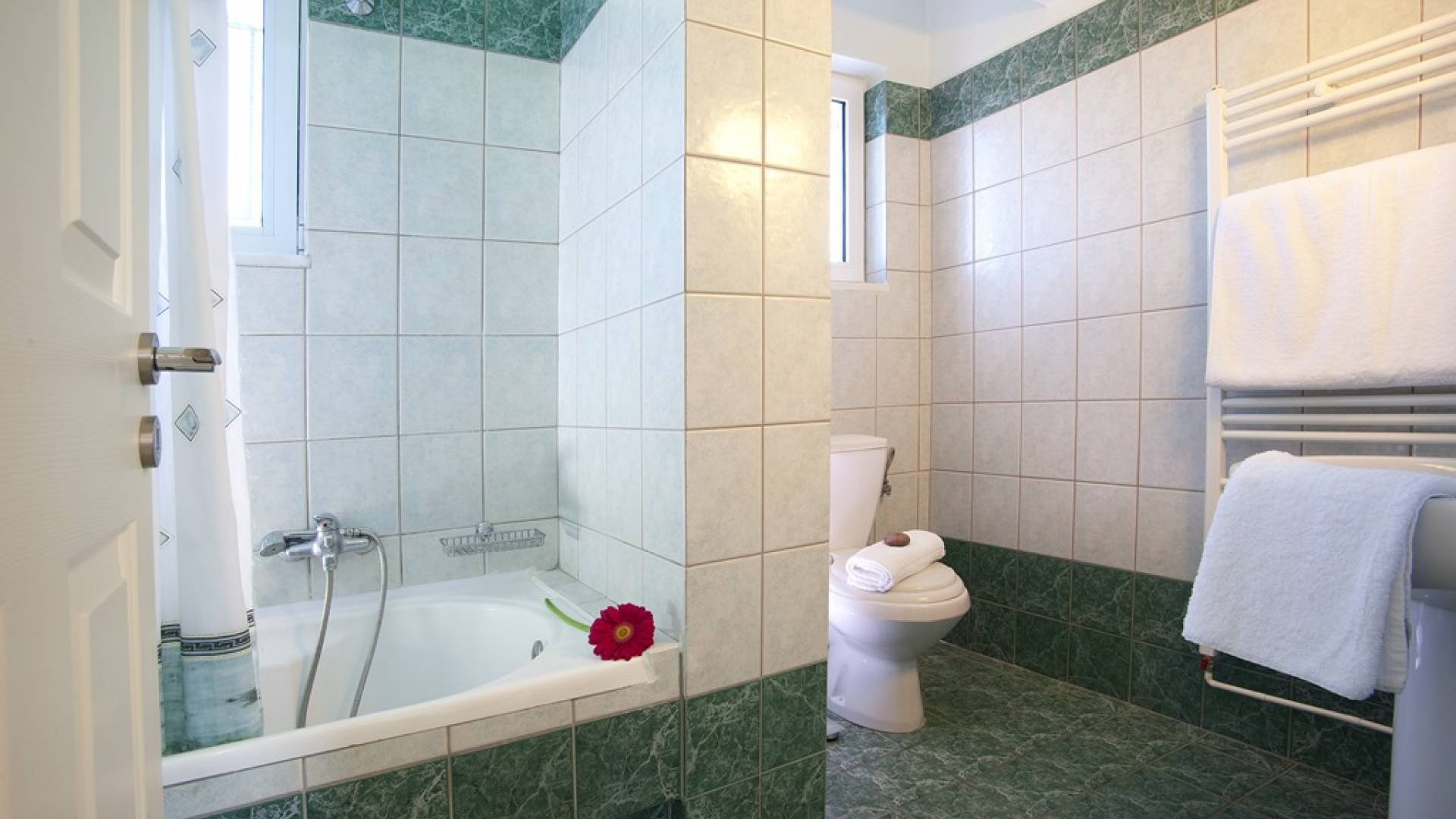 Auf der zweiten Etage befinden sich zwei Schlafzimmer, eines mit Doppelbett und das andere mit zwei Einzelbetten. Alle Schlafzimmer sind mit äußerst bequemen und anatomischen Matratzen für einen erholsamen und erholsamen Schlaf ausgestattet. Im zweiten Stock gibt es auch ein zweites Badezimmer und einen Balkon.