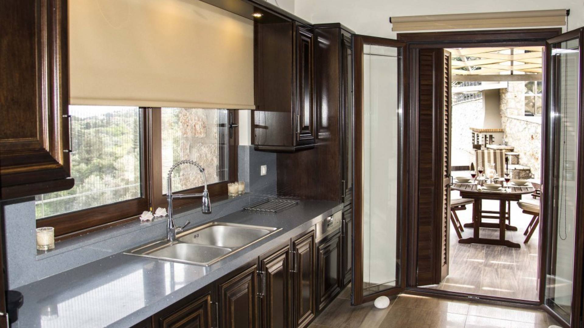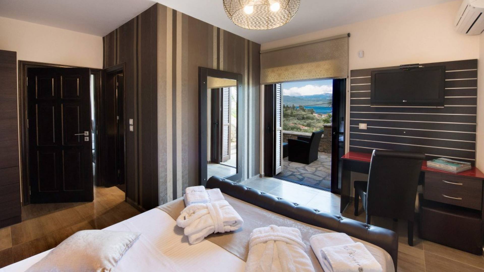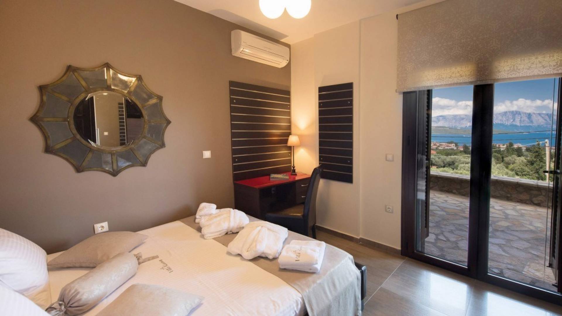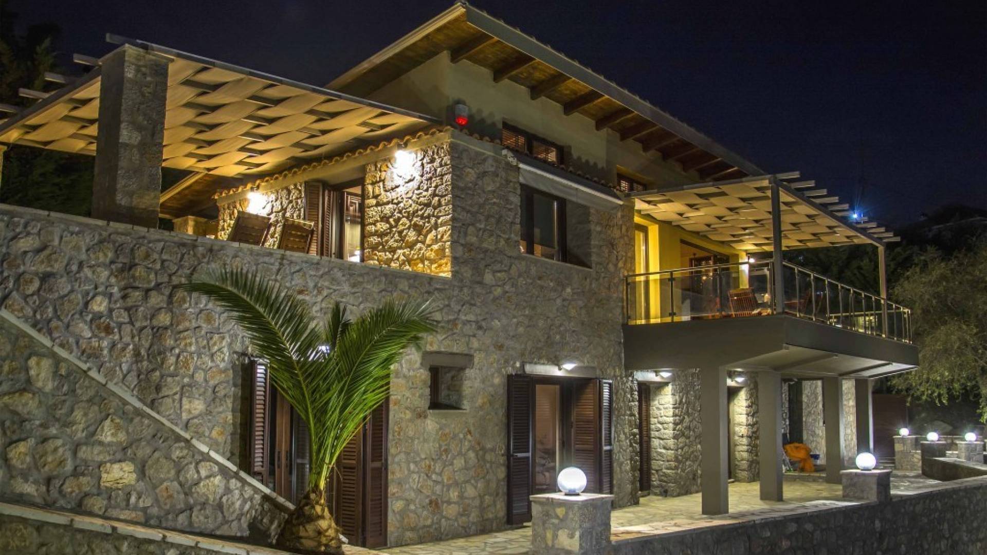 Villa Kastro ist ein zweistöckiges Steinhaus mit Eingangshalle, Wohnzimmer, Küche und Balkon mit freiem Blick auf das Meer von der oberen Ebene. Die drei Schlafzimmer auf der unteren Ebene sind ausgestattet mit Flatscreen-TV, Klimaanlage, großzügigen Kleiderschränken und einer Veranda, die auch vom Bett aus den Blick auf das tiefblaue Meer freigibt. Sie bieten Platz für bis zu 8 Personen.