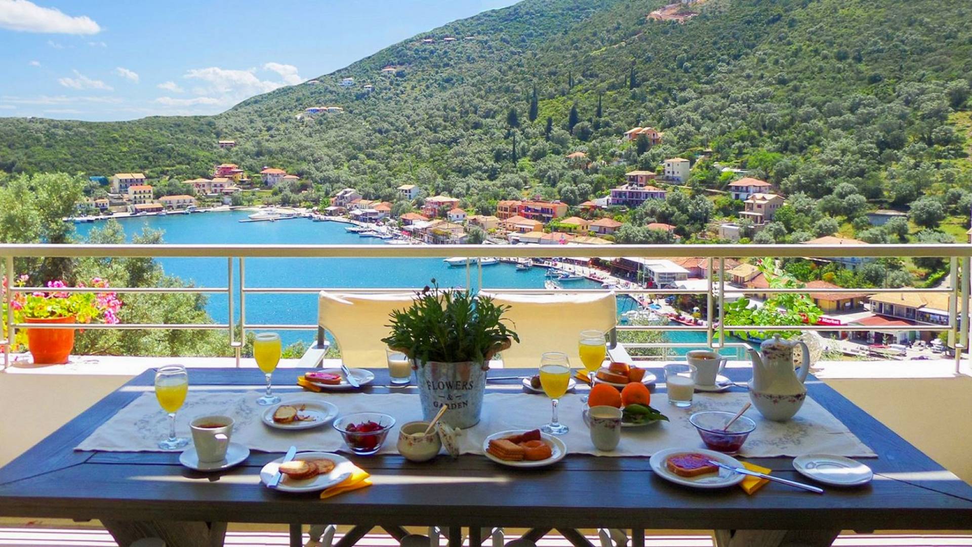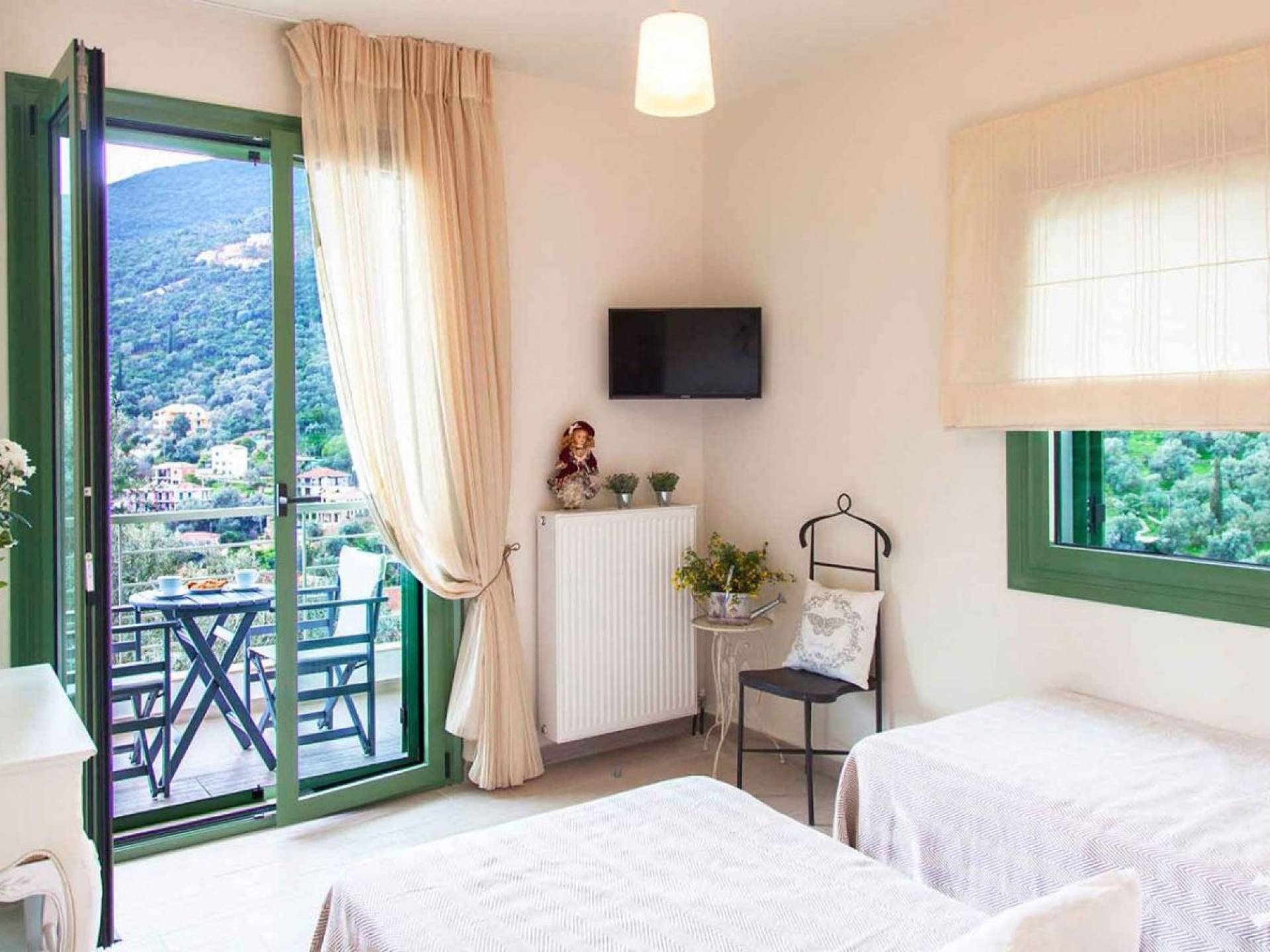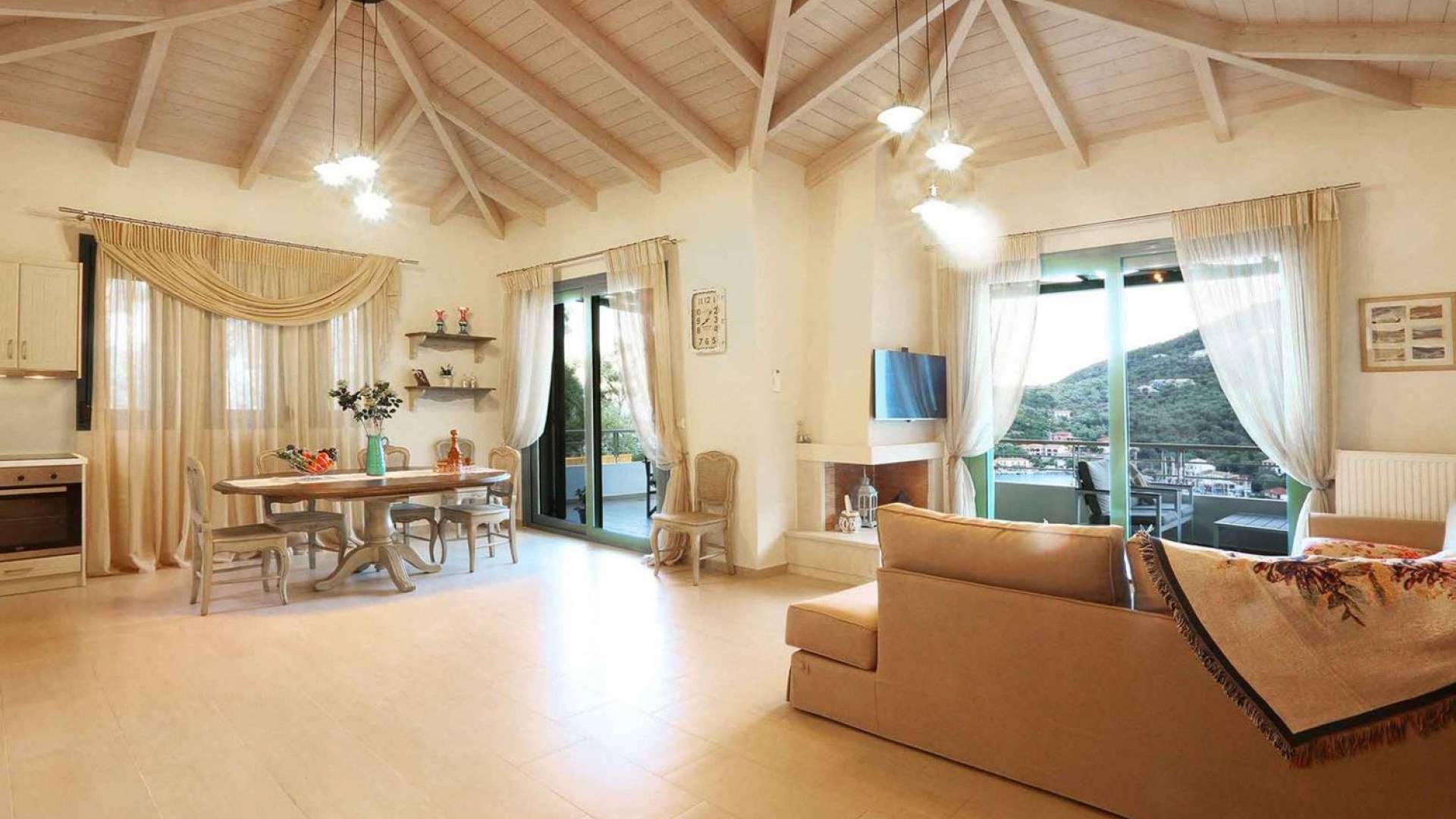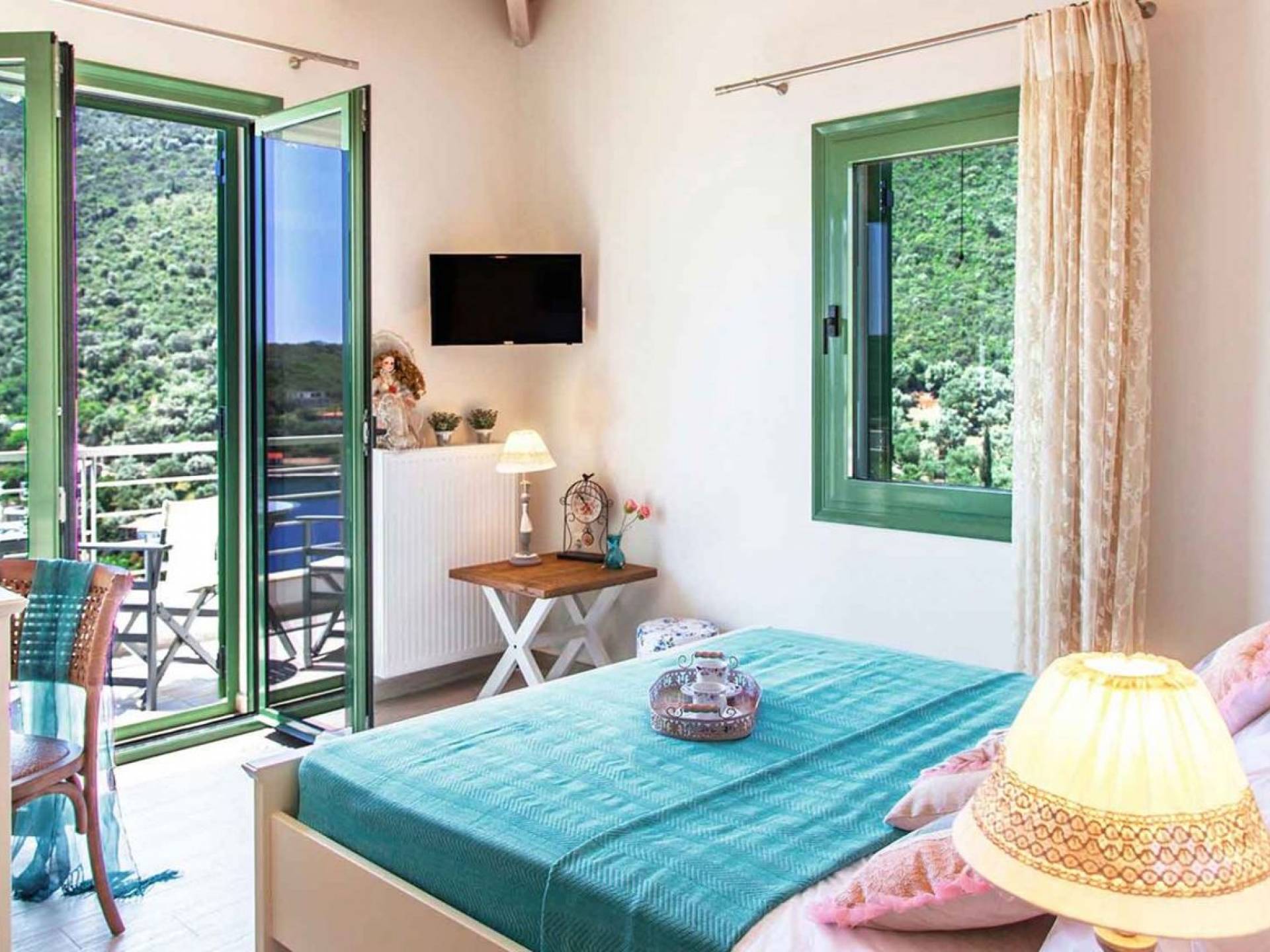 Im dritten Stock finden wir ein Schlafzimmer mit einem Kingsize-Bett und anatomischer Matratze, Klimaanlage, einem 28-Zoll-LED-Fernseher und einem eigenen Badezimmer. Beide Schlafzimmer haben eine französische Tür und ein Fenster, das einen zauberhaften Blick auf die Berge und das Meer bietet. Die Schlafzimmerbalkone beider Häuser bieten einen ungehinderten Panoramablick sowohl auf das Dorf als auch auf das weite Blau des Ionischen Meeres, von wo aus der Blick auf die umliegenden Inseln bis nach Ithaka und Kefalonia schweifen kann.