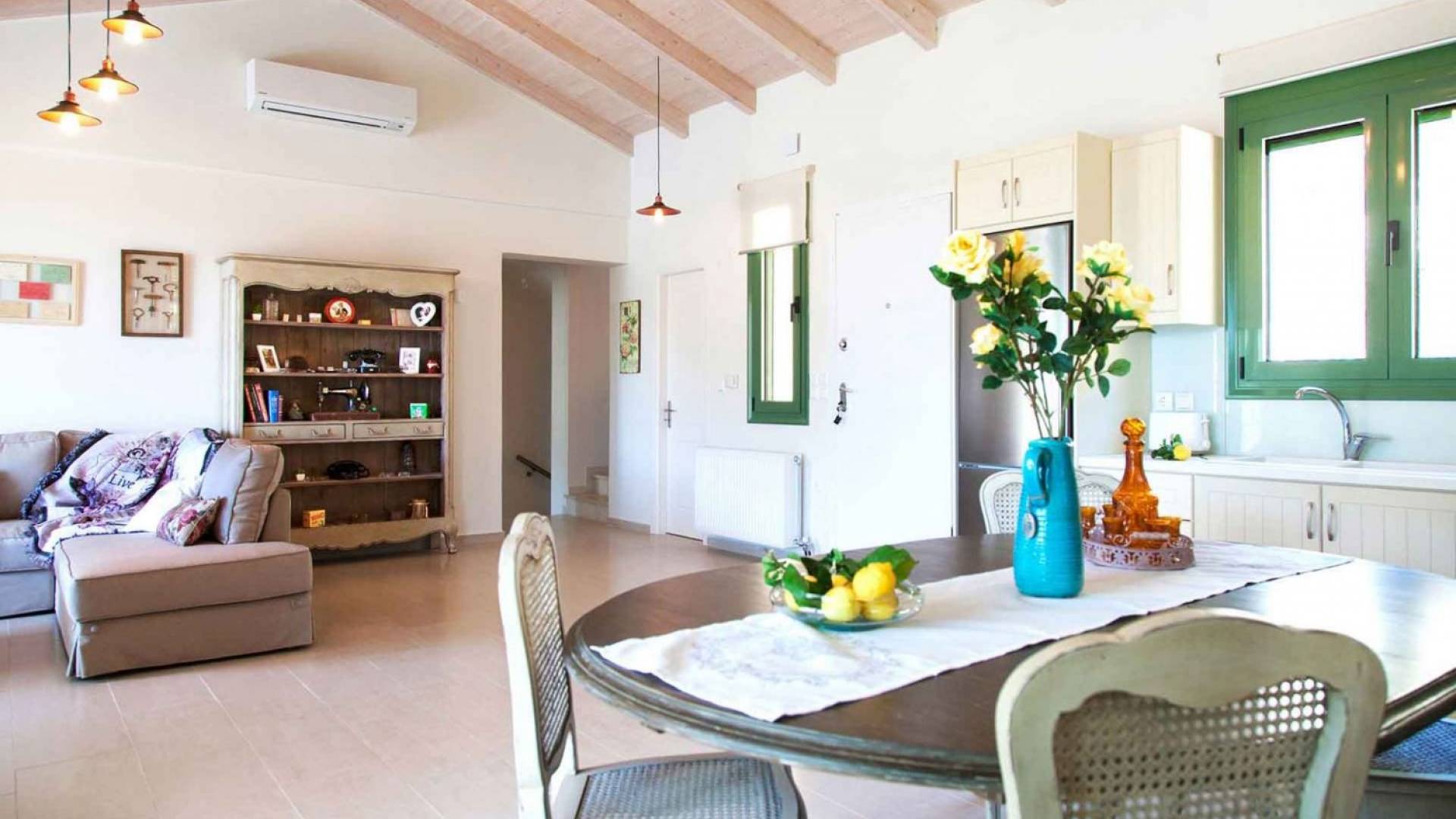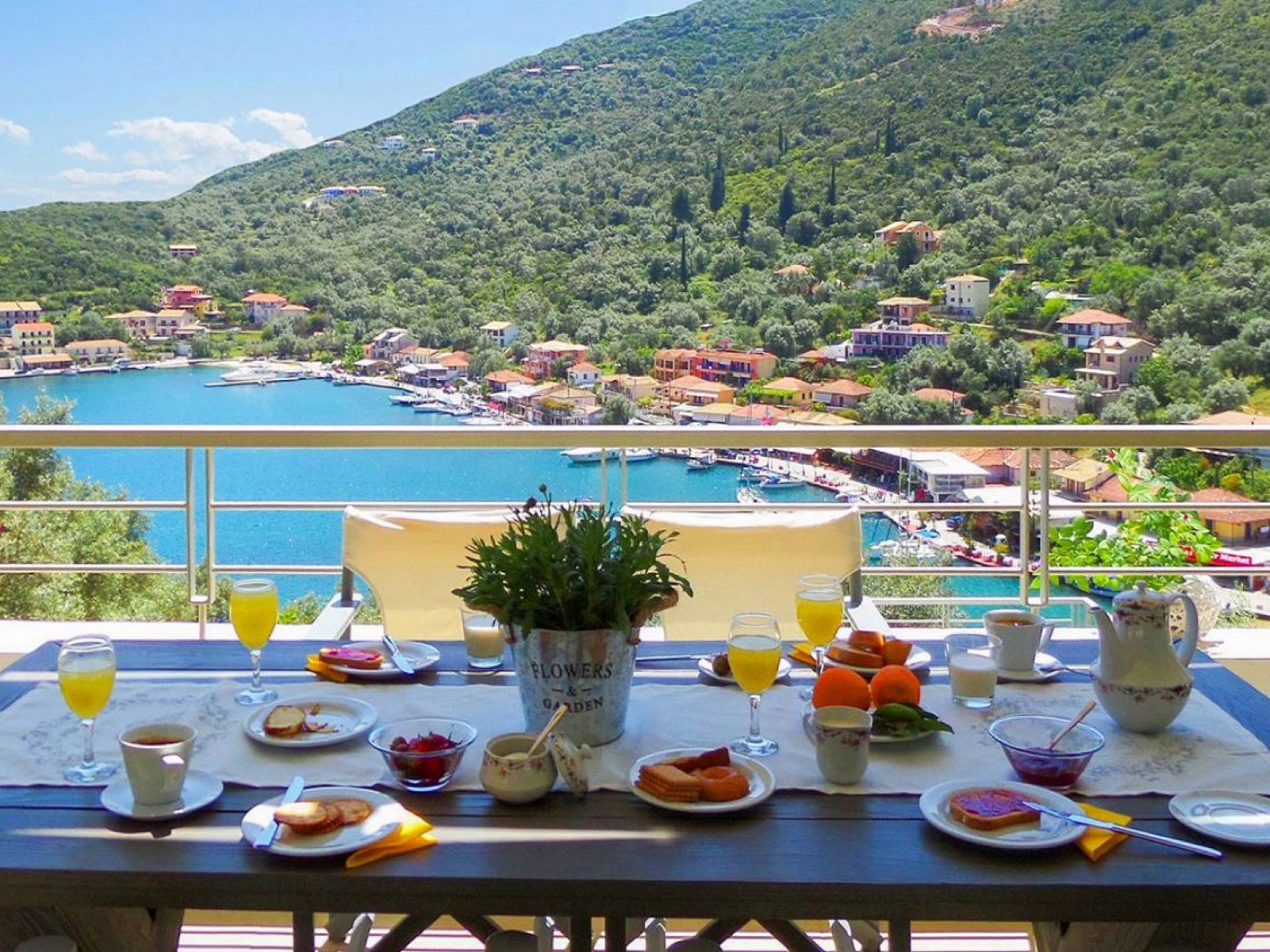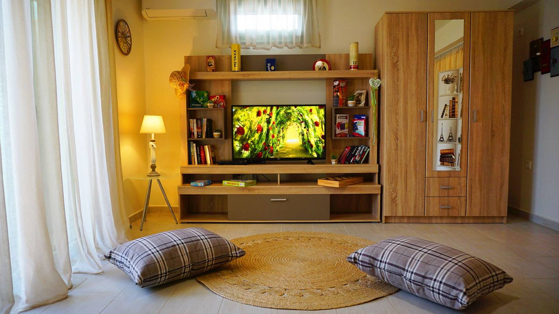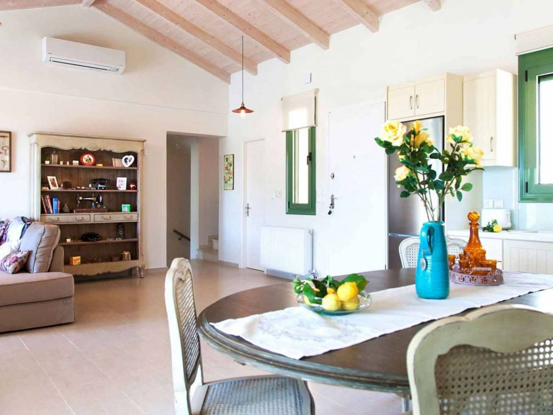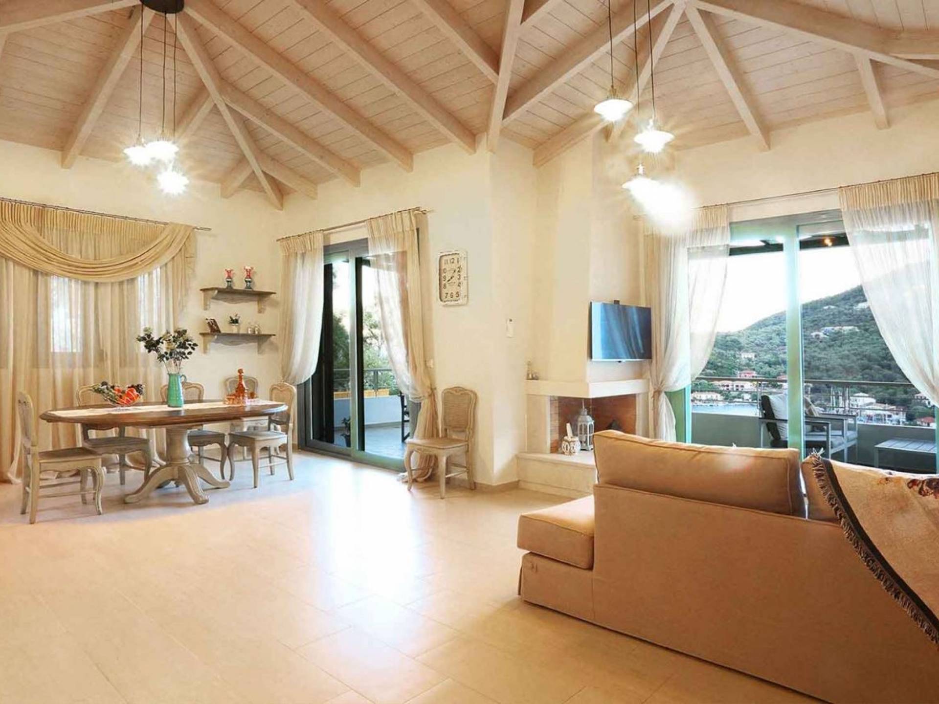 Im dritten Stock finden wir ein Schlafzimmer mit einem Kingsize-Bett und anatomischer Matratze, Klimaanlage, einem 28-Zoll-LED-Fernseher und einem eigenen Badezimmer. Beide Schlafzimmer haben eine französische Tür und ein Fenster, das einen zauberhaften Blick auf die Berge und das Meer bietet. Die Schlafzimmerbalkone beider Häuser bieten einen ungehinderten Panoramablick sowohl auf das Dorf als auch auf das weite Blau des Ionischen Meeres, von wo aus der Blick auf die umliegenden Inseln bis nach Ithaka und Kefalonia schweifen kann.