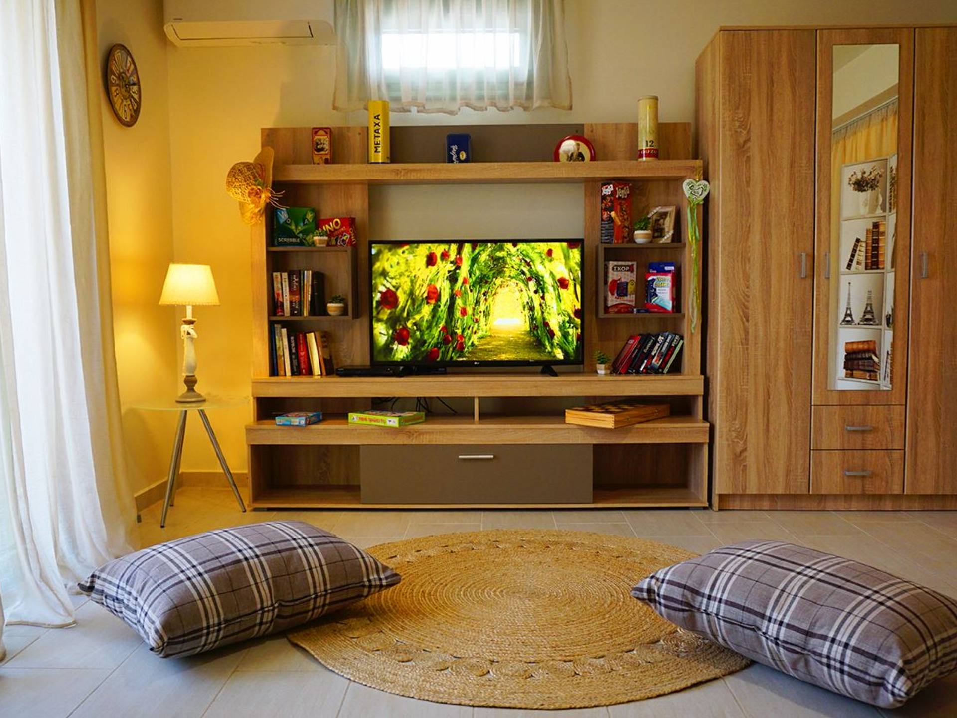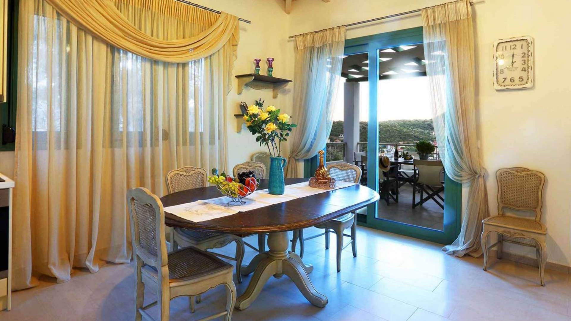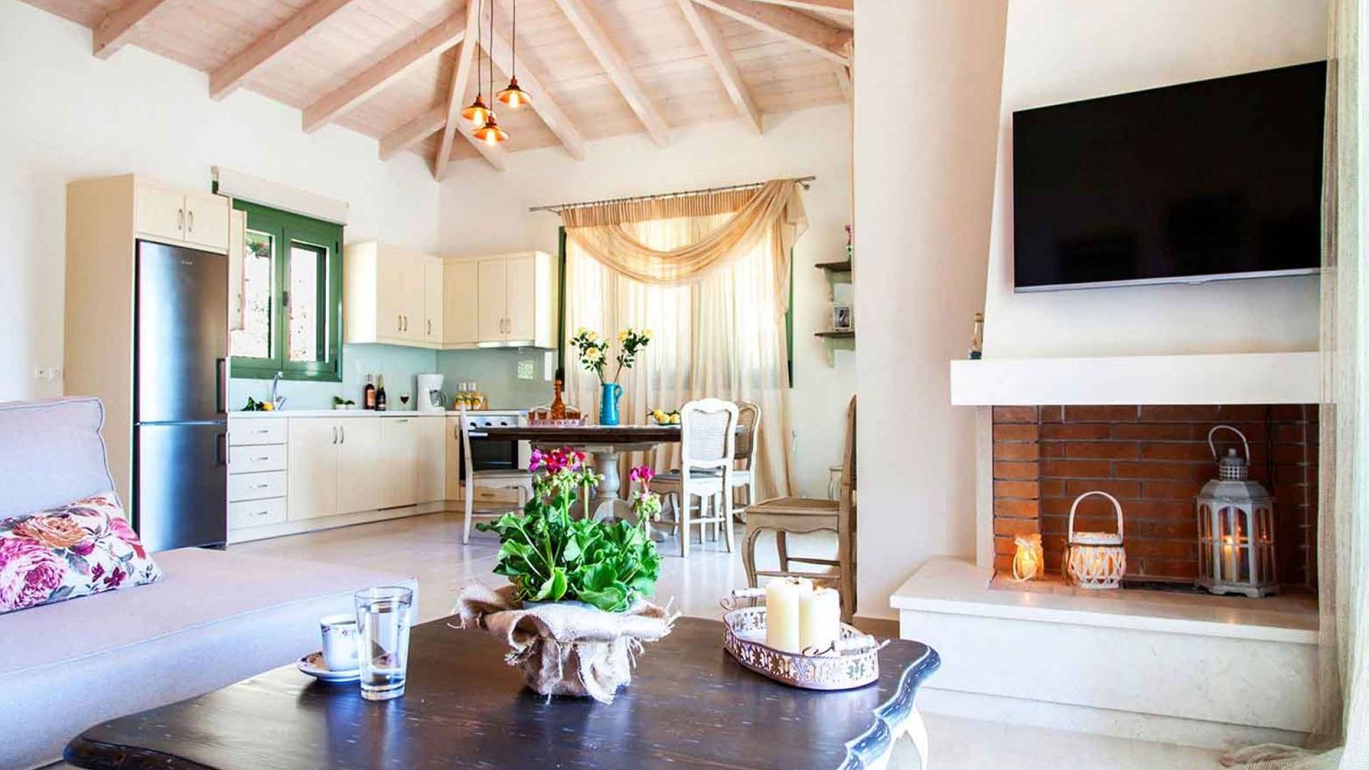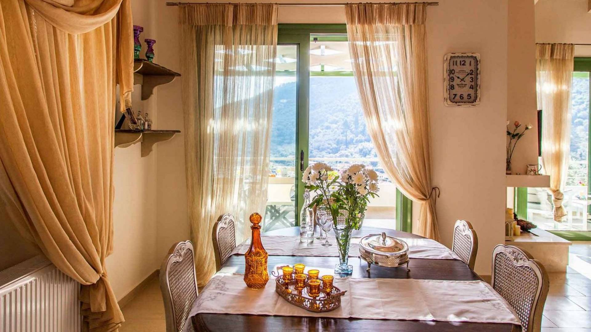 Im dritten Stock finden wir ein Schlafzimmer mit einem Kingsize-Bett und anatomischer Matratze, Klimaanlage, einem 28-Zoll-LED-Fernseher und einem eigenen Badezimmer. Beide Schlafzimmer haben eine französische Tür und ein Fenster, das einen zauberhaften Blick auf die Berge und das Meer bietet. Die Schlafzimmerbalkone beider Häuser bieten einen ungehinderten Panoramablick sowohl auf das Dorf als auch auf das weite Blau des Ionischen Meeres, von wo aus der Blick auf die umliegenden Inseln bis nach Ithaka und Kefalonia schweifen kann.
